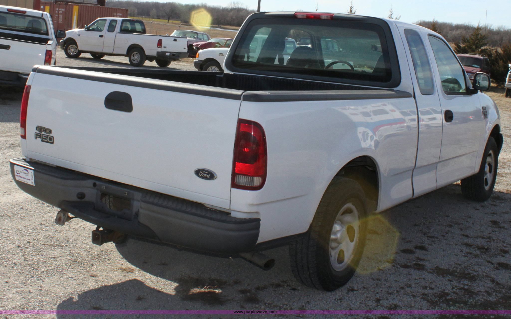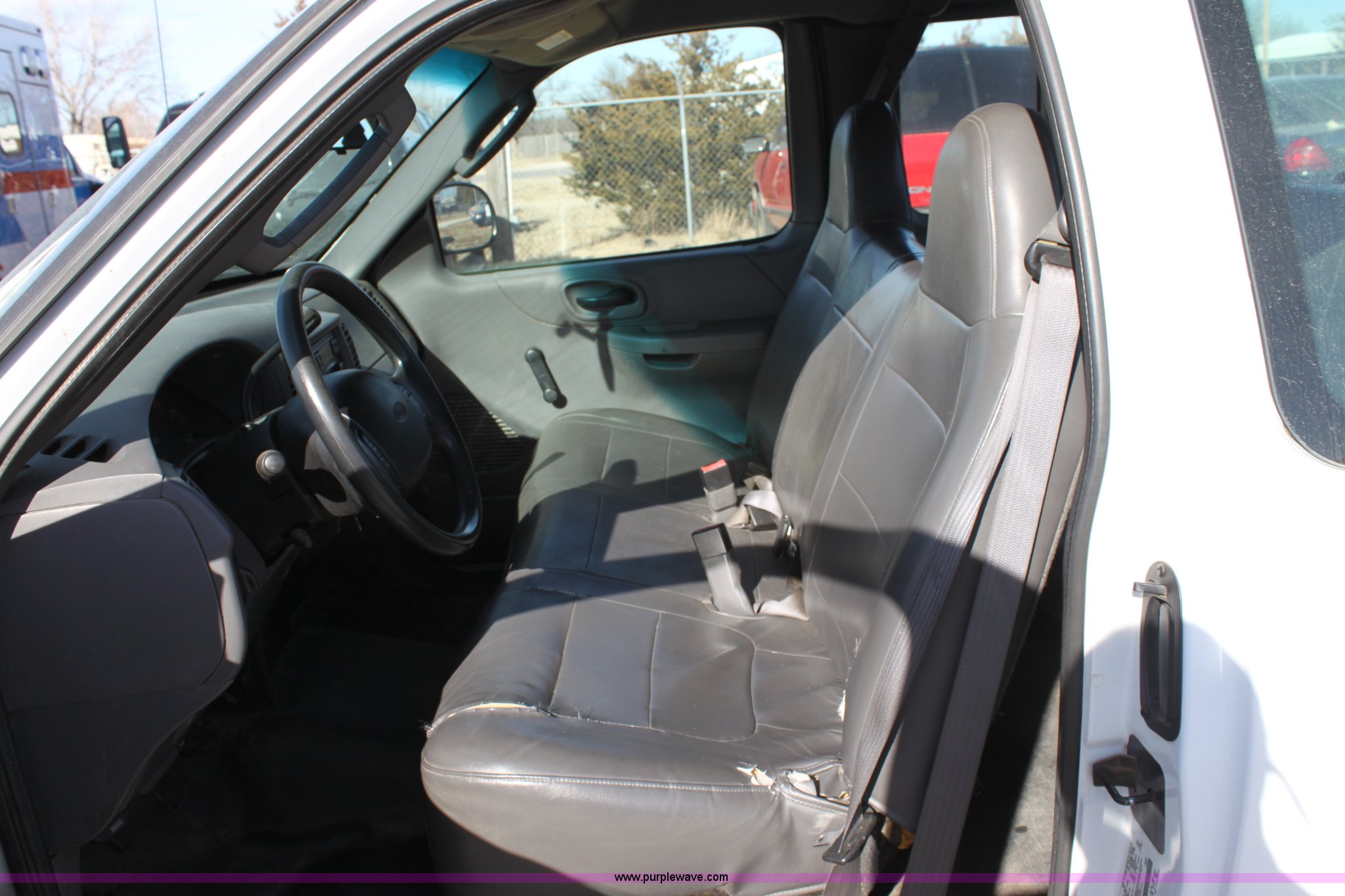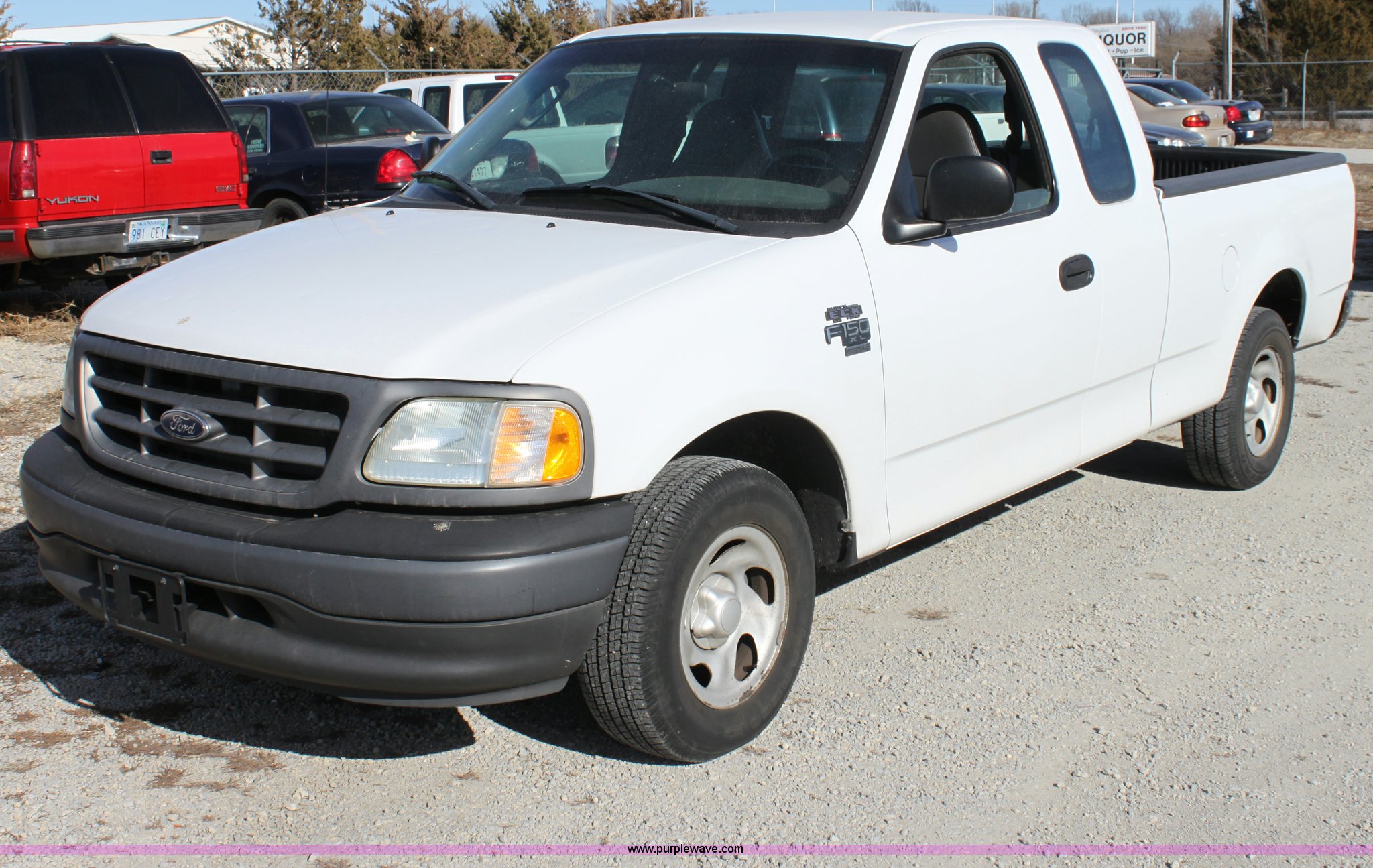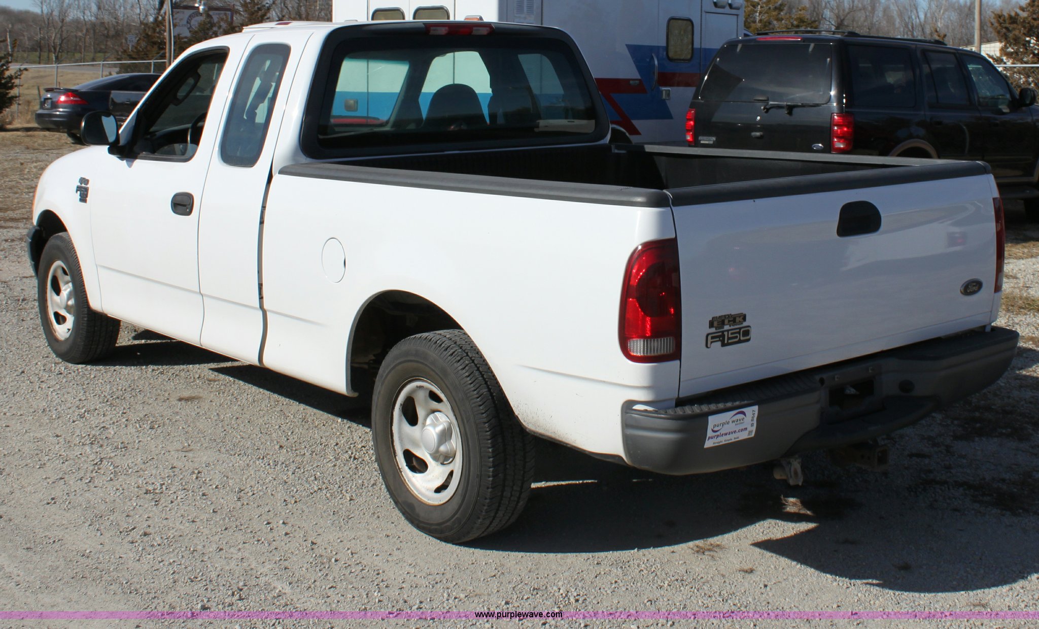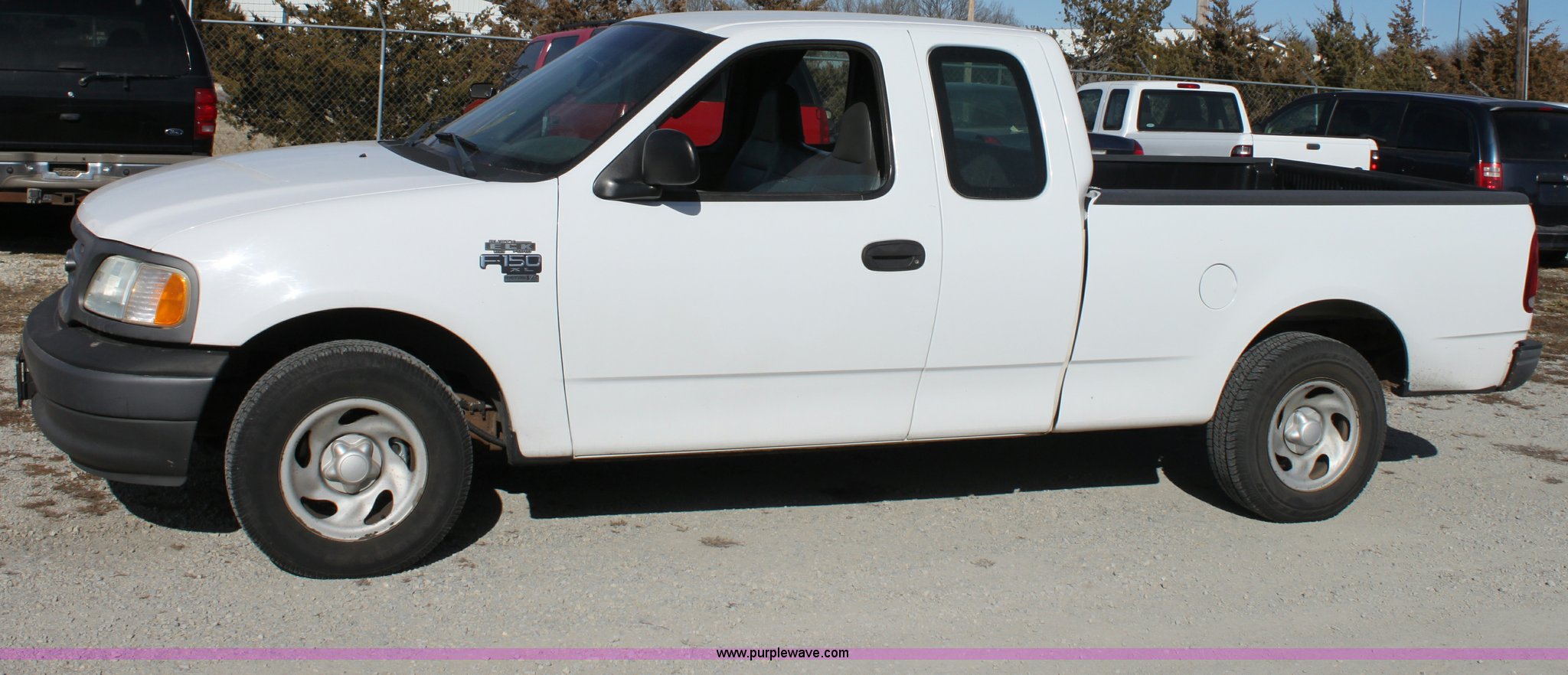 Purple Wave is selling a used Passenger Vehicle in Kansas. This item is a 2002 Ford F150 XL Supercab pickup truck with the following: 87,448 miles on odometer, 4.6L V8 EFI engine, Automatic transmission, AC and heat, Tilt, Cruise, AM/FM/Cassette, Manual windows and locks, Vinyl interior, Bed liner, Receiver hitch, Trailer wiring, 235/70R16 tires, Damage to seat, Cracked windshield, Hail damage, Equip# 6501