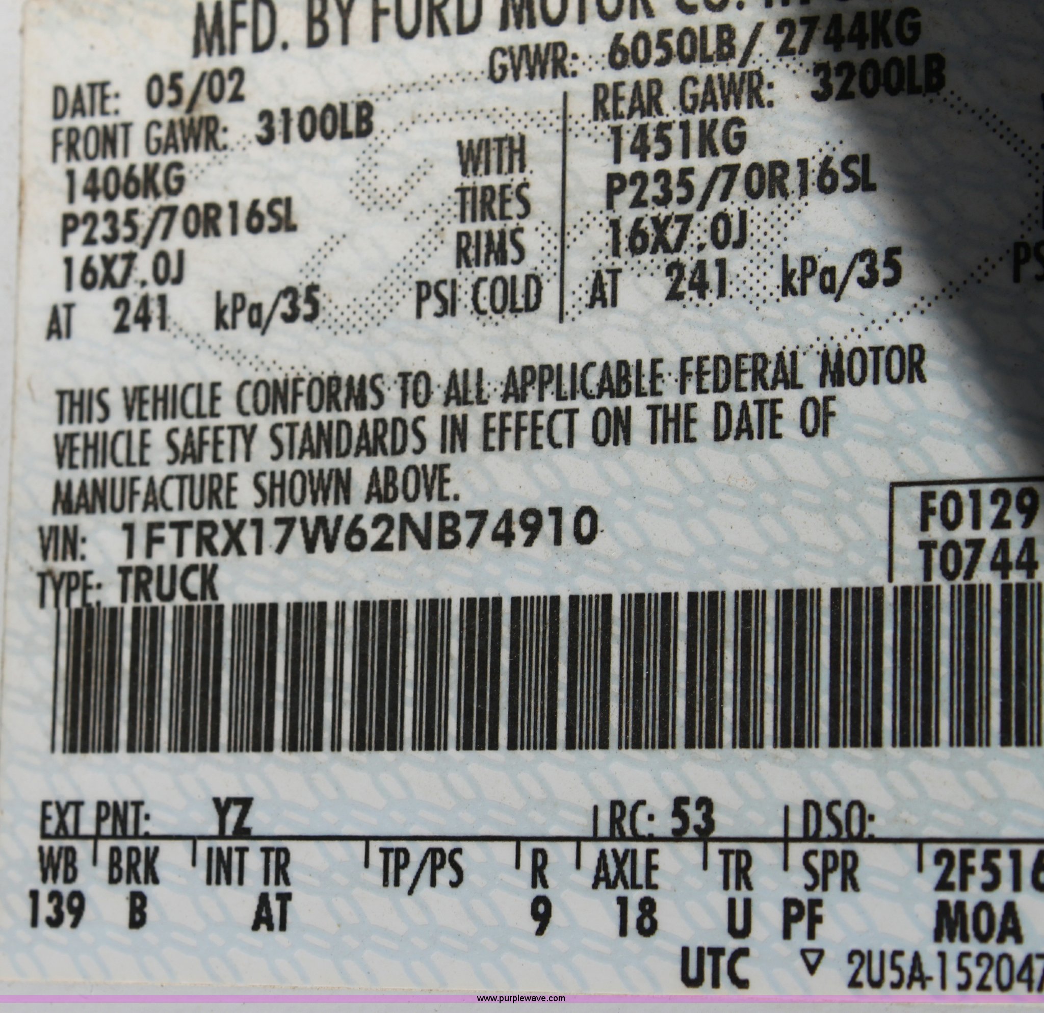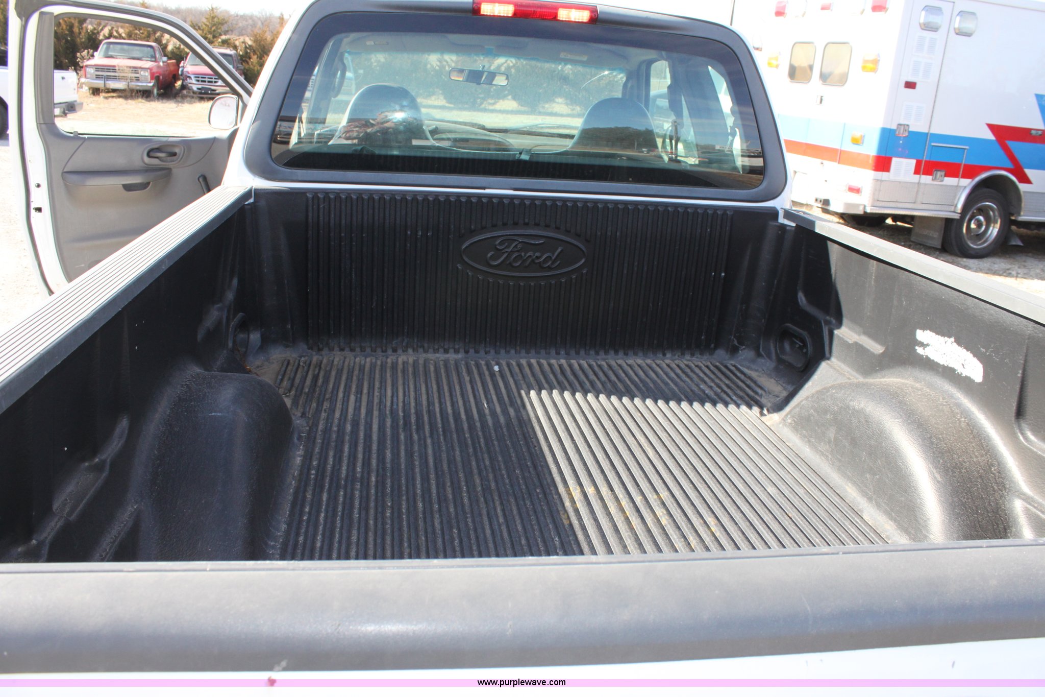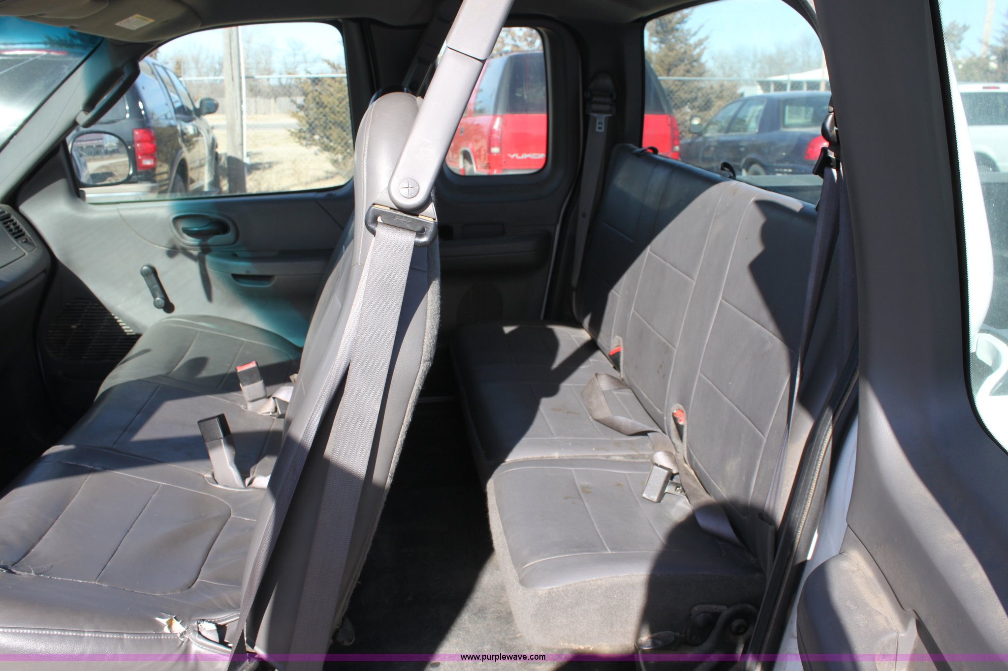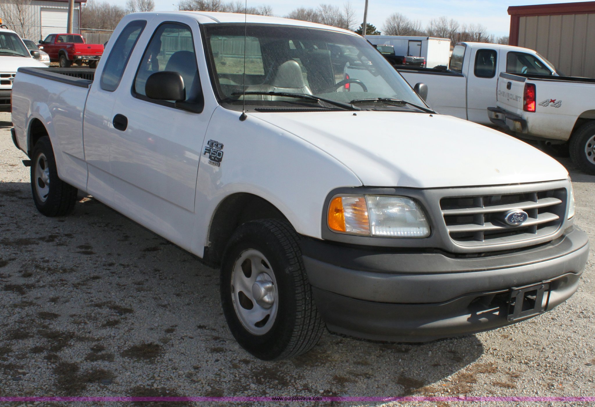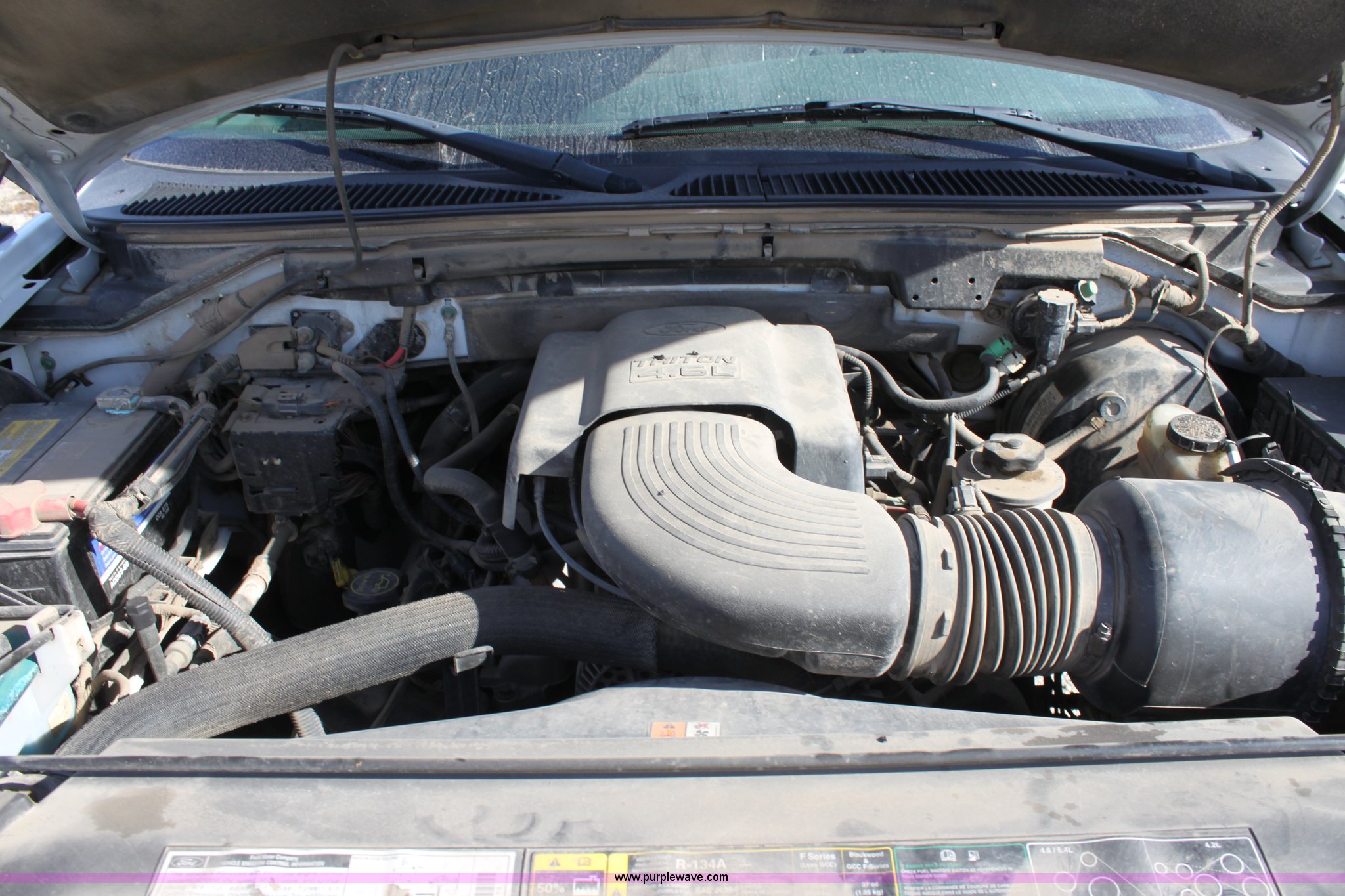 Purple Wave is selling a used Passenger Vehicle in Kansas. This item is a 2002 Ford F150 XL Supercab pickup truck with the following: 87,448 miles on odometer, 4.6L V8 EFI engine, Automatic transmission, AC and heat, Tilt, Cruise, AM/FM/Cassette, Manual windows and locks, Vinyl interior, Bed liner, Receiver hitch, Trailer wiring, 235/70R16 tires, Damage to seat, Cracked windshield, Hail damage, Equip# 6501