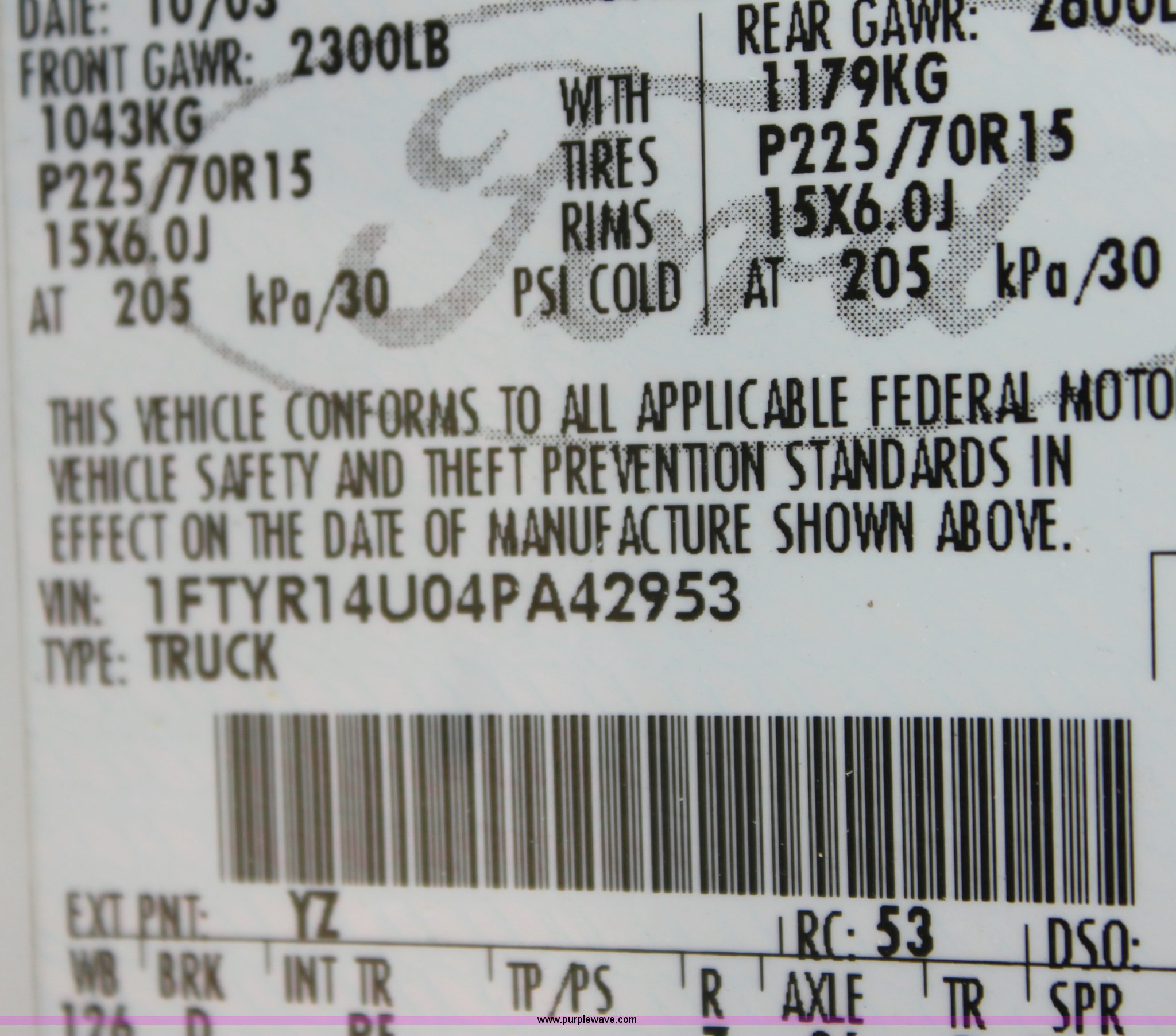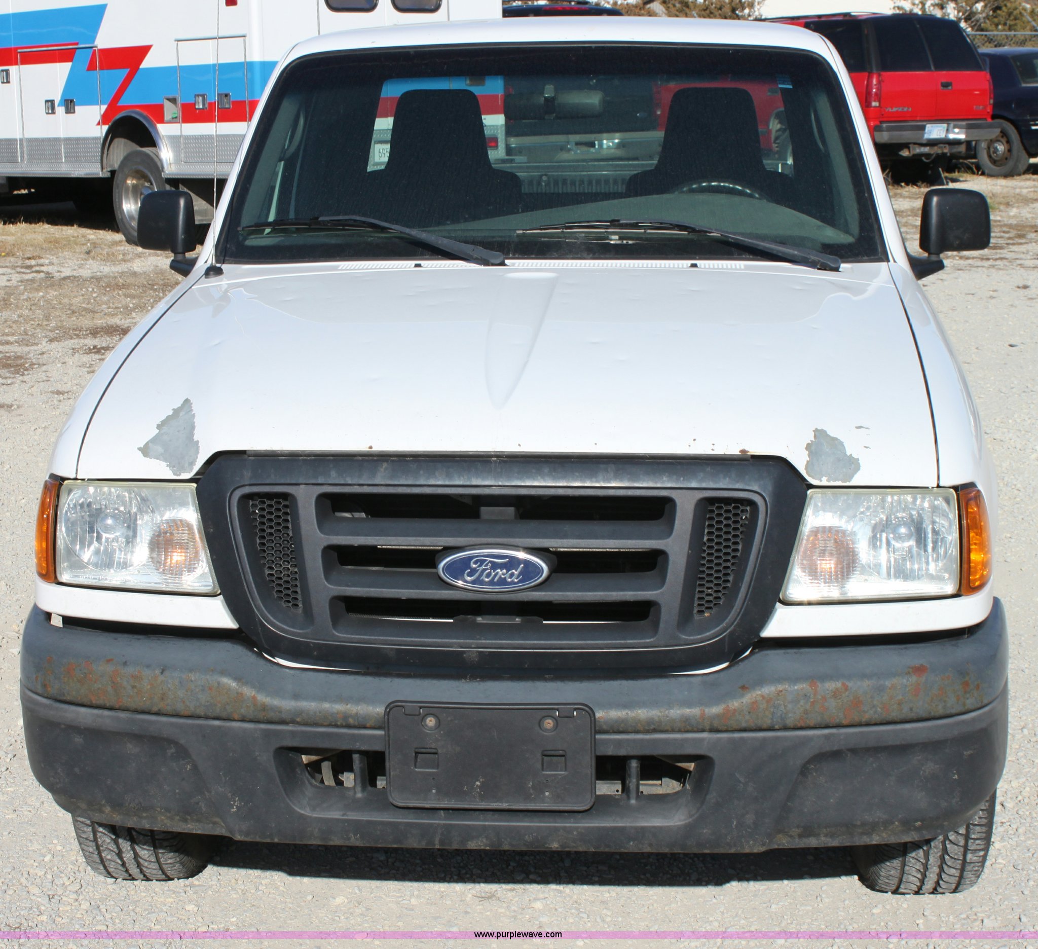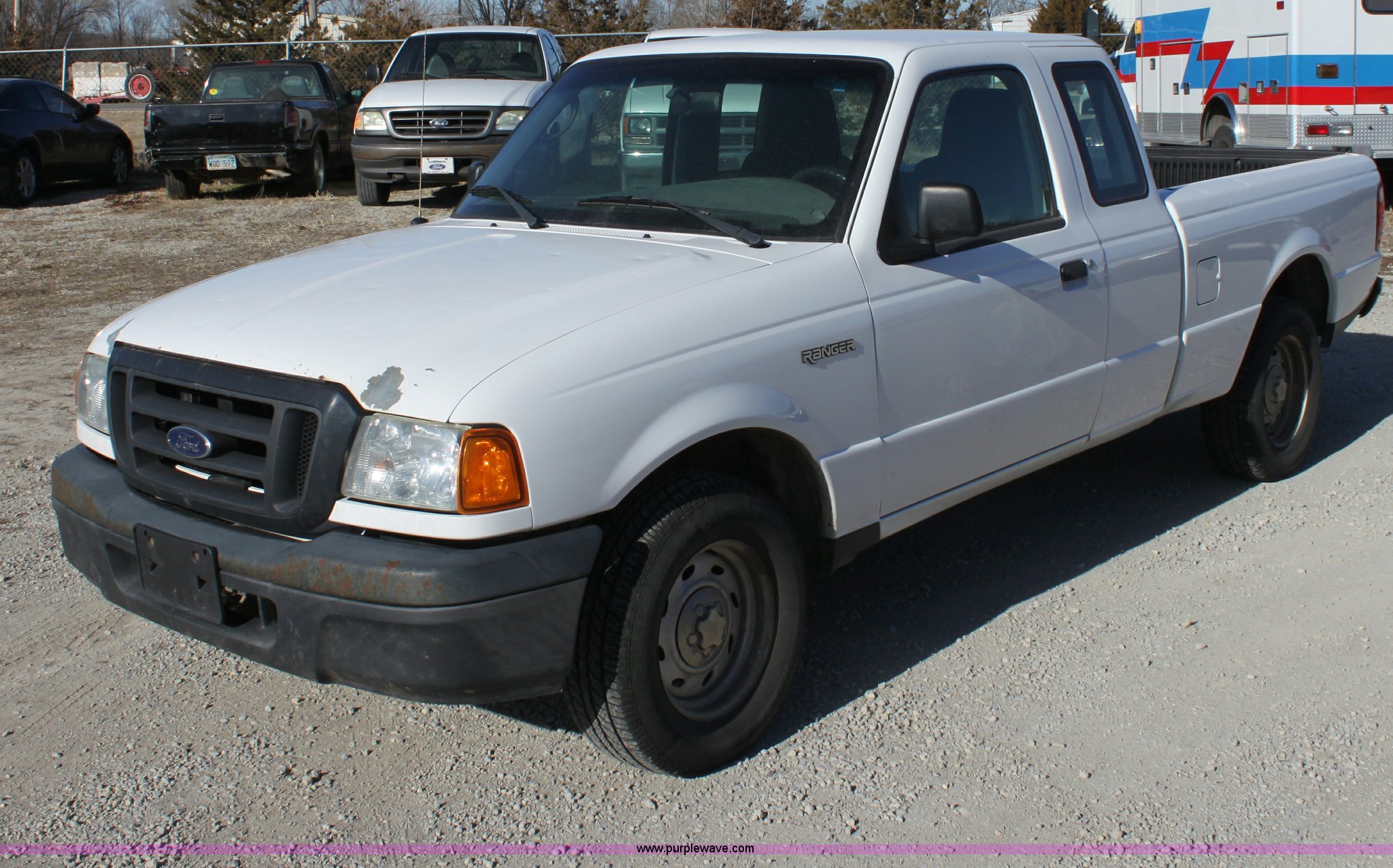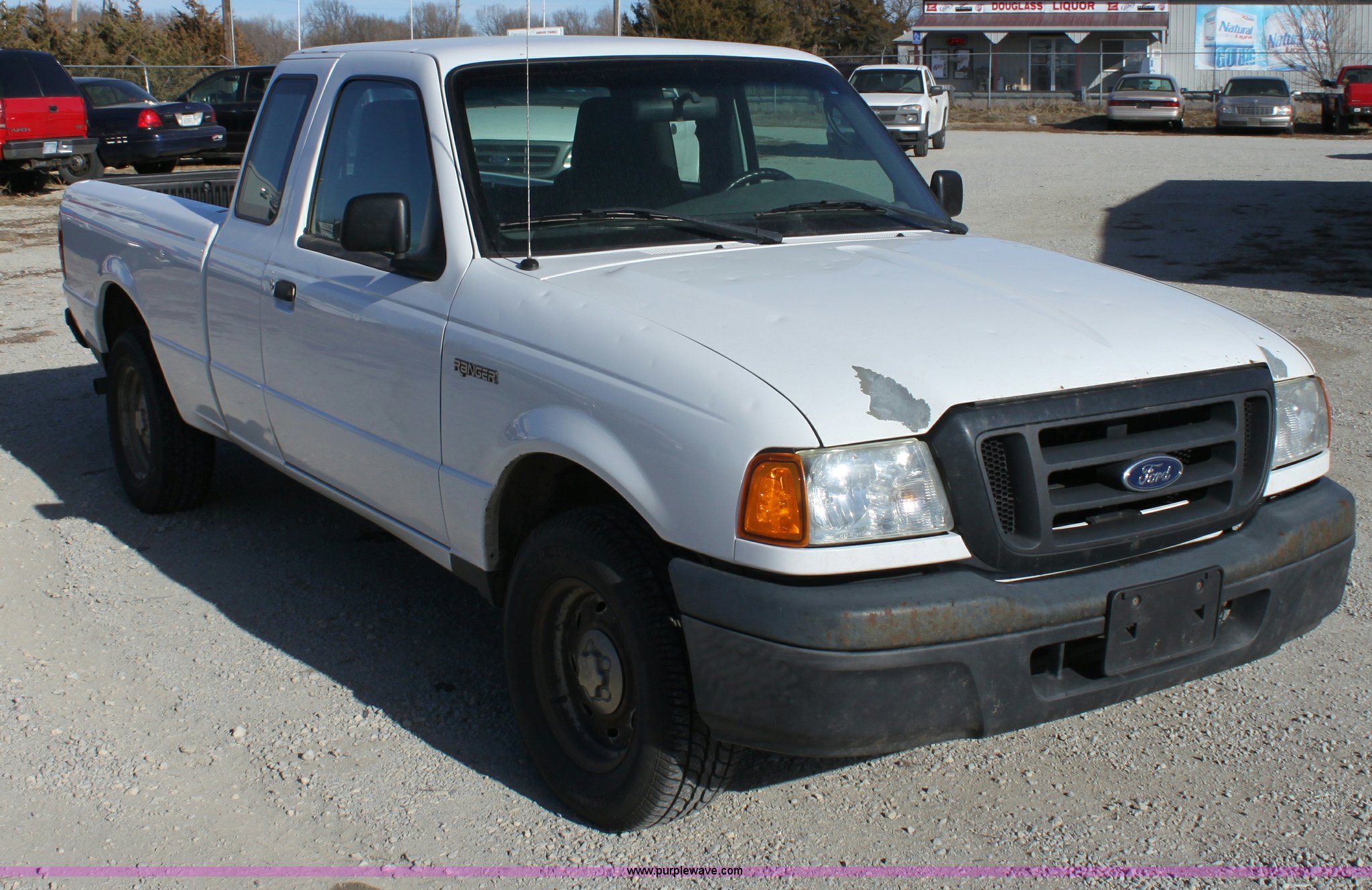 Purple Wave is selling a used Passenger Vehicle in Kansas. This item is a 2004 Ford Ranger Supercab pickup truck with the following: 114,562 miles on odometer, 3.0L V6 EFI engine, Automatic transmission, AC and heat, Tilt, Cruise, AM/FM/CD, Manual windows and locks, Vinyl interior, Bed liner, 225/70R15 tires, Hail damage, Paint peeling on hood, Cracked windshield, Equip# 0657