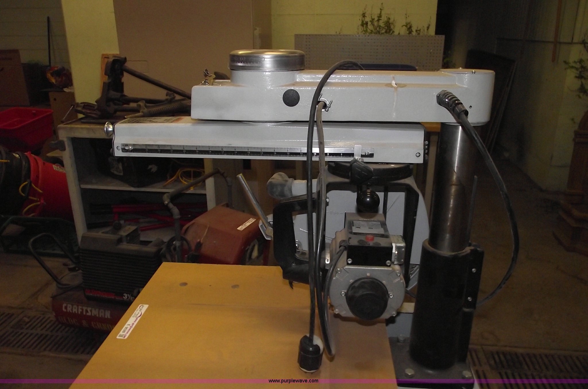 Purple Wave is selling a used Tools in Missouri. This item is a Delta industrial radial arm saw and assorted tools with the following: 12" blade, 9.6 amps, On table, 110 volt