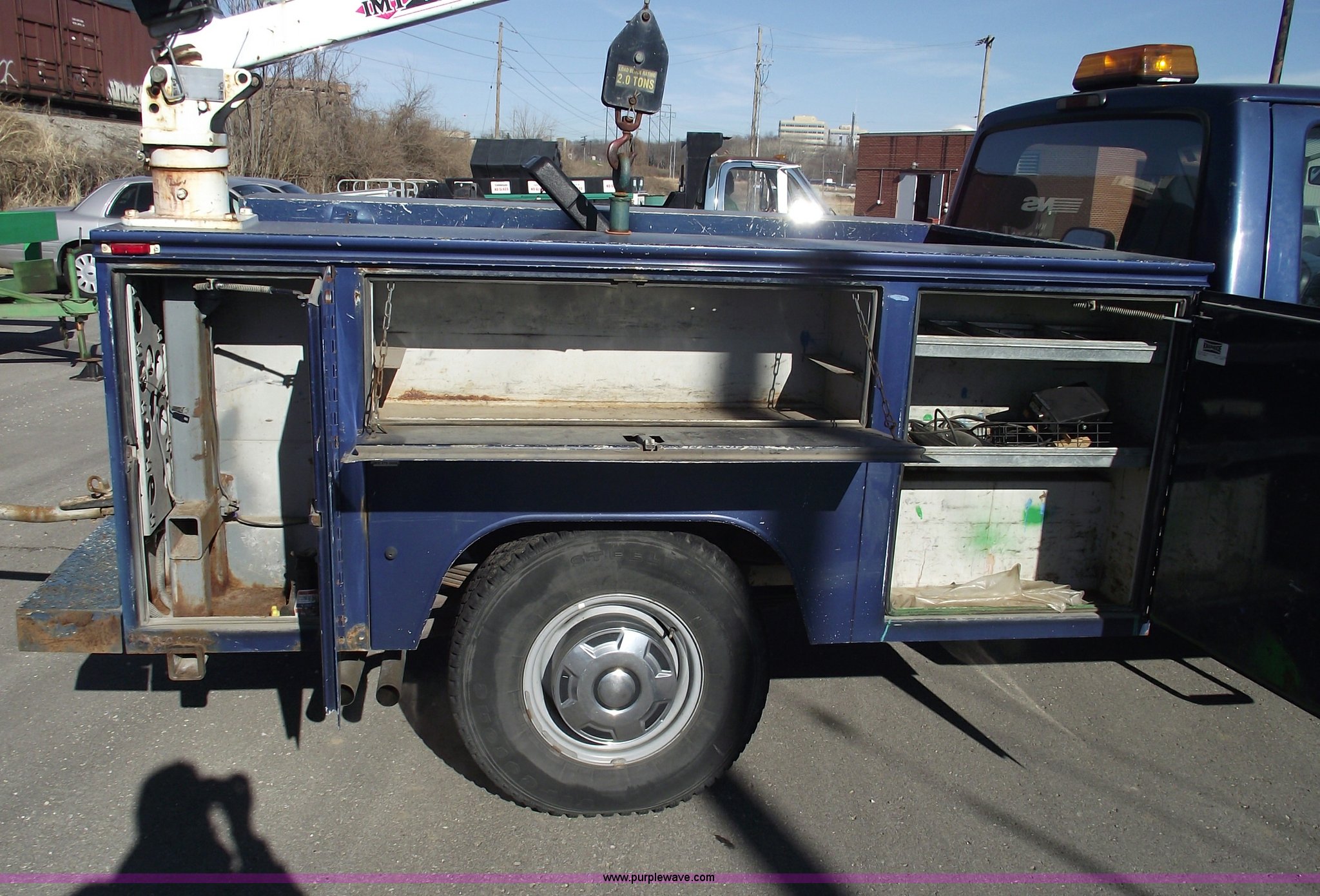1995 Ford F250 XL/XLT service truck. 74,858 miles on odometer, 5.8L V8 EFI gas engine, Automatic transmission with over drive, AC and heat, Tilt, AM/FM, Manual windows and locks, Vinyl interior, Flashing beaken , Utility bed, Pintle hitch, Knapheide service bed Model 65CLPE, Serial 748557-765736, Six bing doors, IMT work server crane Model WS65, Two ton, 235-85-16 tires. 2FTHF25H9SCA39225. City of North Kansas City. 2010 Howell. North Kansas City, MO 64116