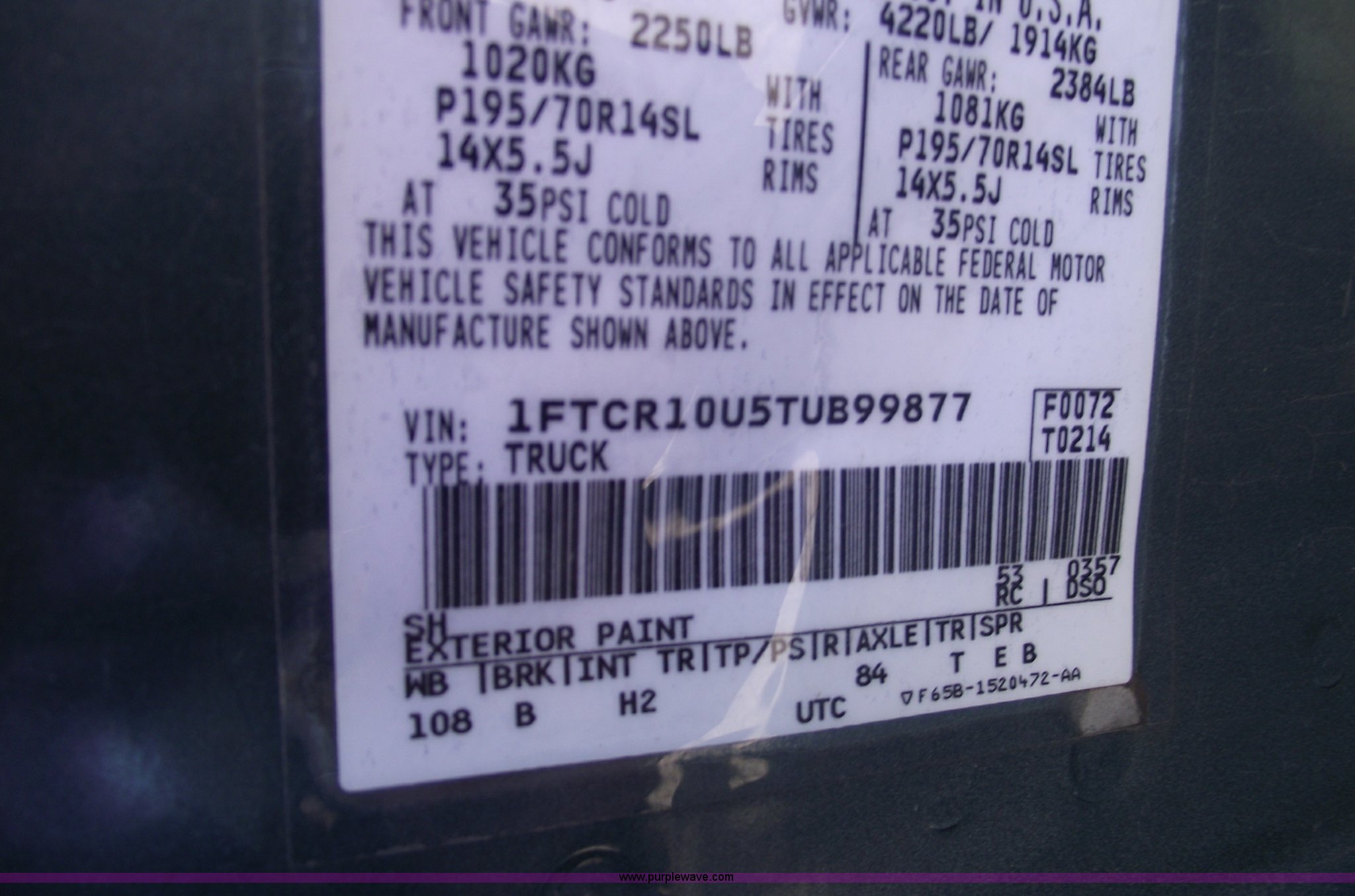 Purple Wave is selling a used Compact Pickup or Van in Missouri. This item is a 1996 Ford Ranger Splash/XL pickup truck with the following: 55,624 miles on odometer, 3.0L V6 EFI gas engine, Automatic transmission with over drive, AC and heat, AM/FM, Power windows, Manual locks, Vinyl interior, No head liner, Pickup bed, Weather Guard tool box, 195-70-14 tires