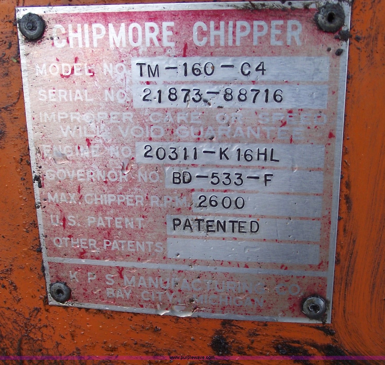 Purple Wave is selling a used Wood Chipper or Stump Grinder in Missouri. This item is a Chipmore TM 16-C4 wood chipper with the following: 145 hours on meter, Ford V8 330 CI engine, Pintle hitch/tongue jack, 700-15 tires, Needs new battery, One previous owner - City of North Kansas City, Serial 21873-88716