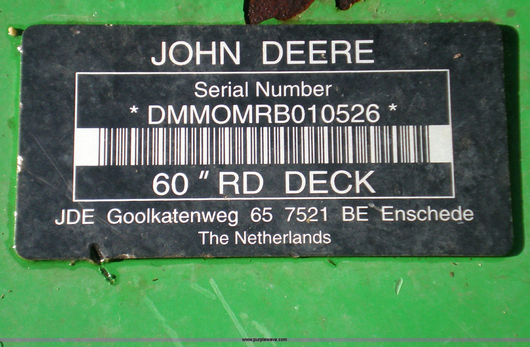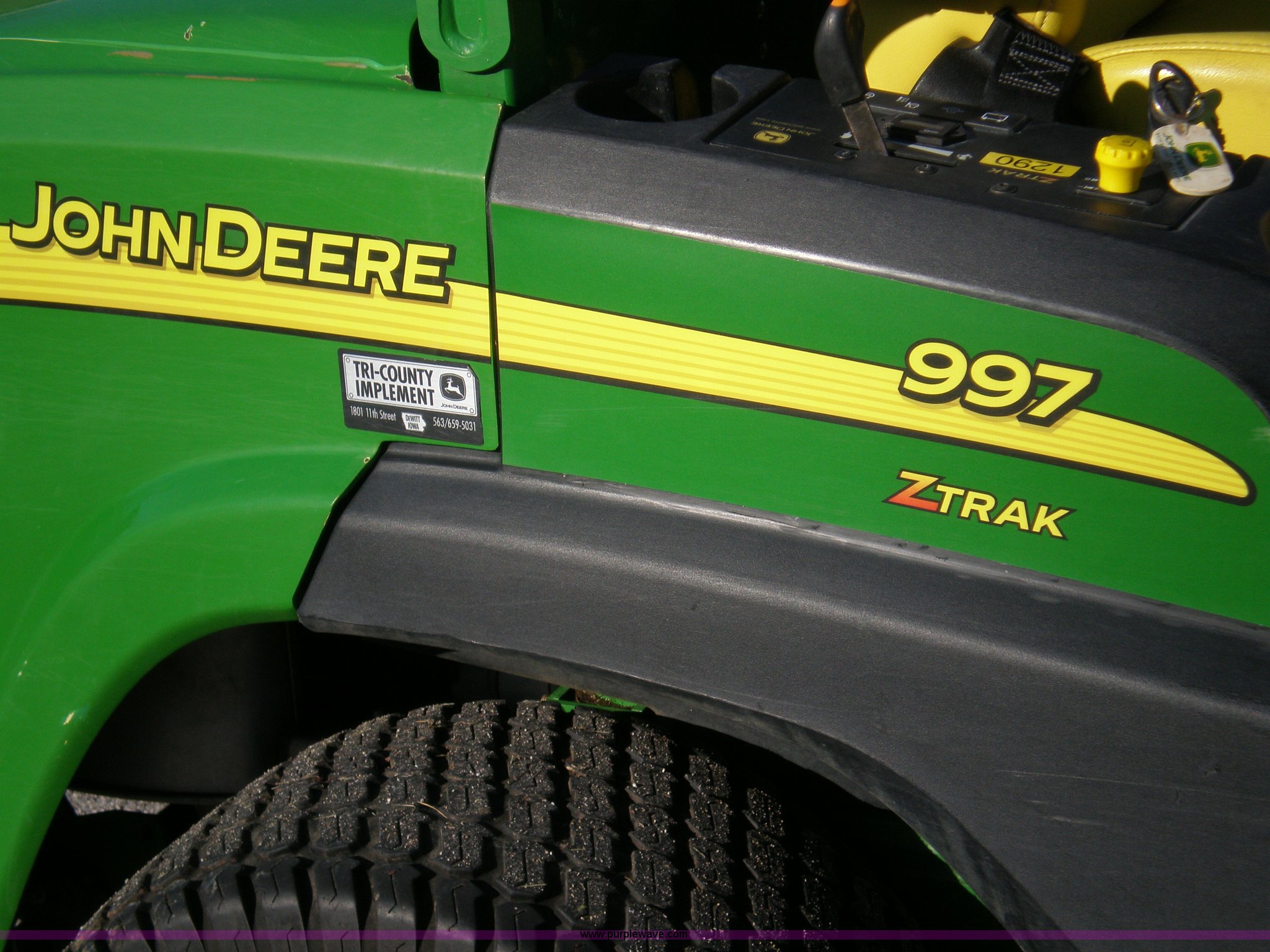 Purple Wave is selling a used Commercial Turf Mower in Iowa. This item is a 2007 John Deere 997 mower with the following: 1,248 hours on meter, Yanmar diesel engine, 5' deck, Rear discharge, Hydraulic deck lift, Tires 50%, Serial DM997RB020111