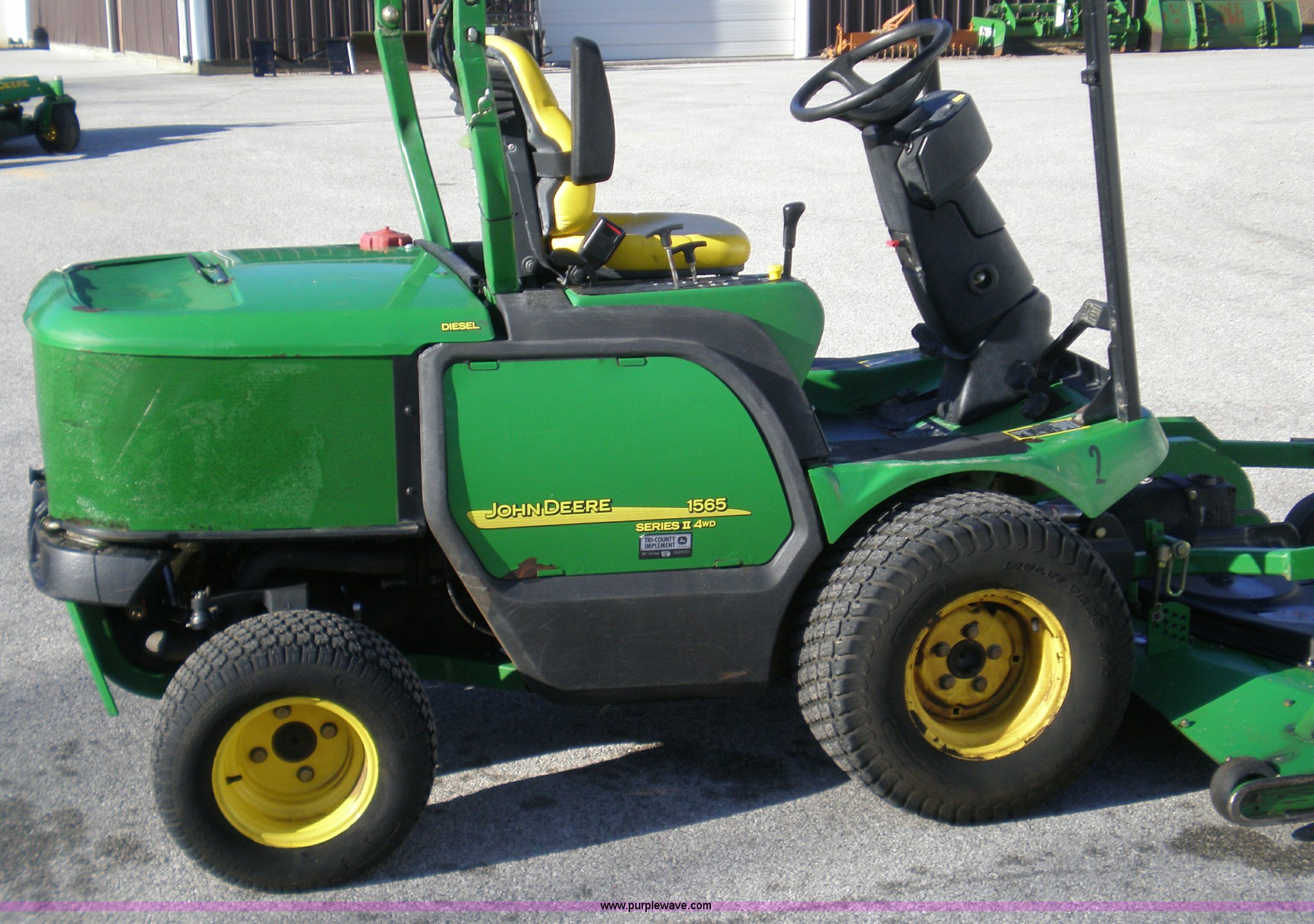 Purple Wave is selling a used Commercial Turf Mower in Iowa. This item is a 2005 John Deere 1565 mower with the following: 2,117 hours on meter, 6' deck, rear discharge, Yanmar diesel engine, Hi and Low speed transmission, Four wheel drive, Canopy, Extra hydraulics for snow blower attachment, Tires 50%, Serial TC1565D040204