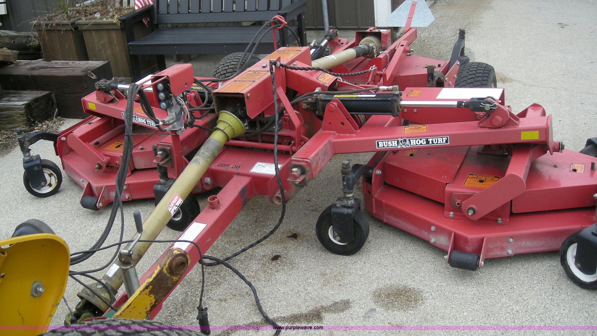 Purple Wave is selling a used Commercial Turf Mower in Iowa. This item is a 2000 Bush Hog TDM11 turf mower with the following: 11' cut, 540 PTO, 40 HP recommended, 1/2" to 4" height range, 78" transport width, 10 degree deck flex, front/back and side, Mulch kits, Parts, service, and operator manuals included, Serial 12-00455
