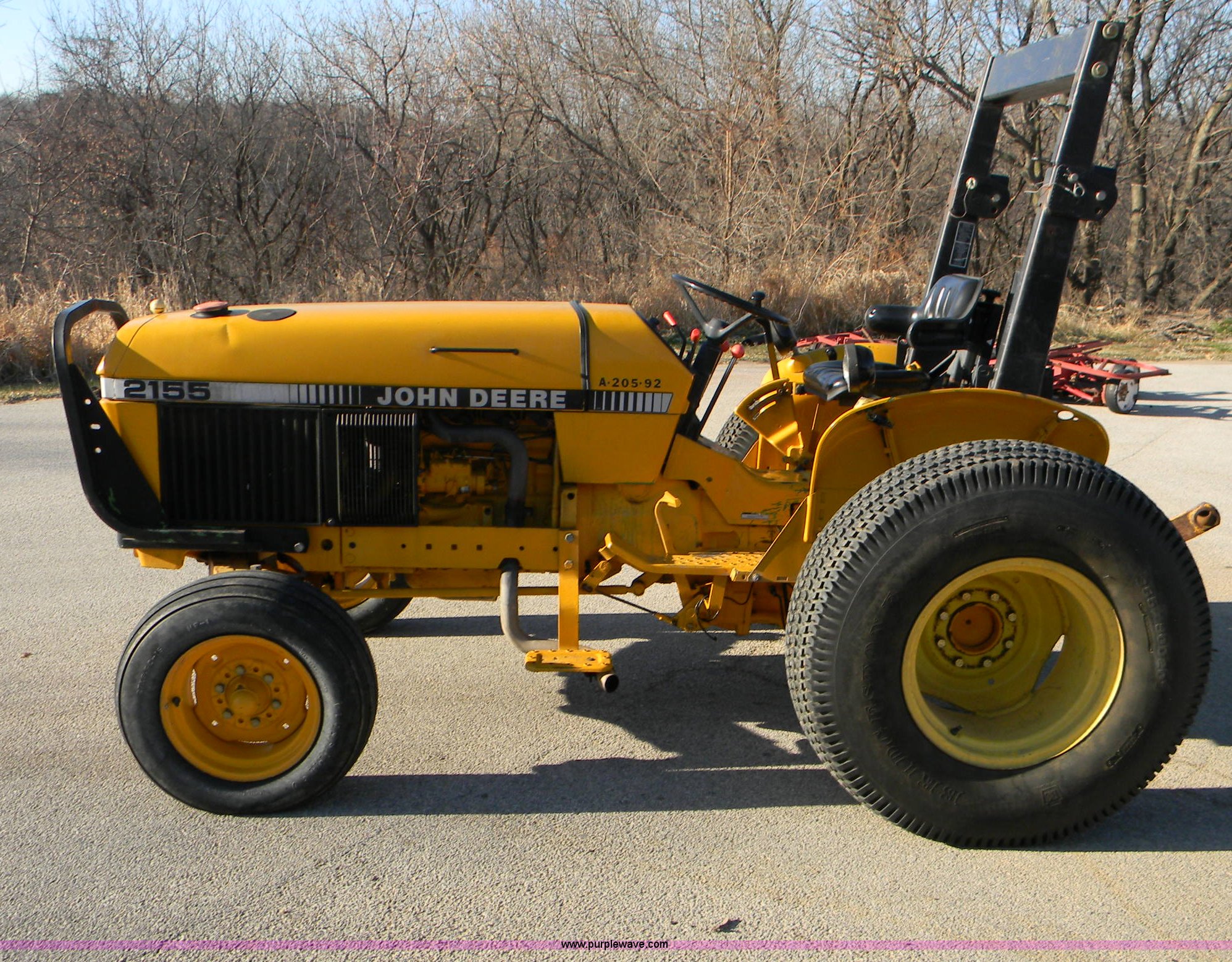 Purple Wave is selling a used Tractor in Iowa. This item is a John Deere 2155 tractor with the following: 9,460 hours on meter, Four speed hi/low transmission with reverse, ROPS bar, PTO, Three point, Missing top link, Rear hydraulic remote set, Serial CD3179D966904