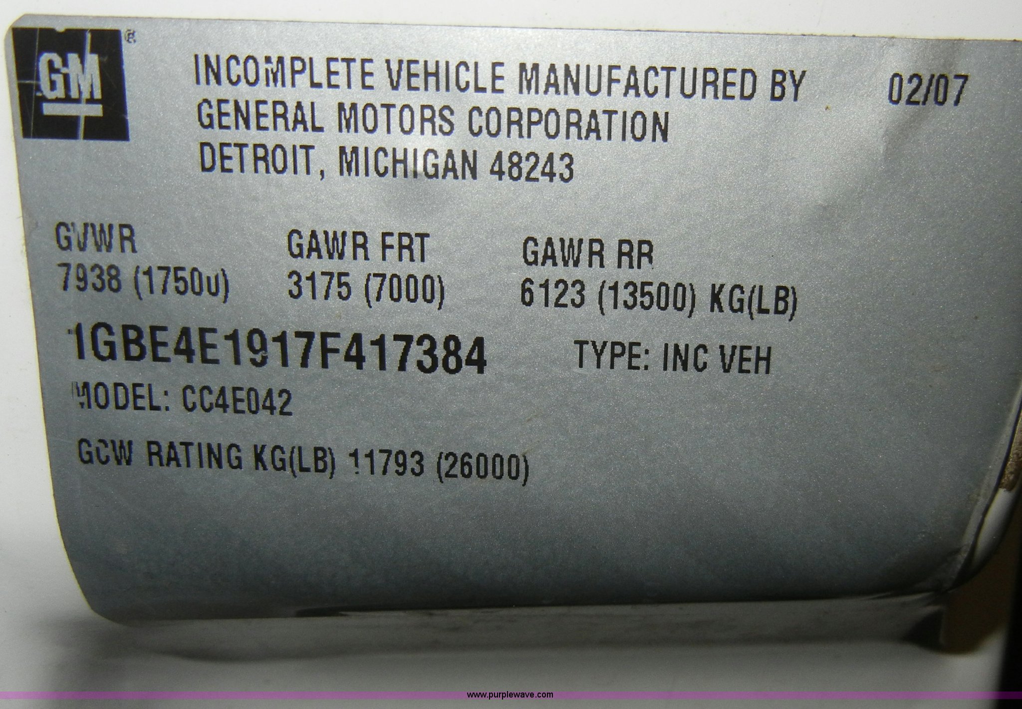 Take a look at this used 2007 Chevrolet Kodiak C4500 four door truck cab and chassis being sold on February 8th, 2012 in the SOLD! February 8 Kansas Highway Patrol Seizure Auction made by Chevrolet. Take a look at all of the item information below or take a look at similar auctions for Trucks.