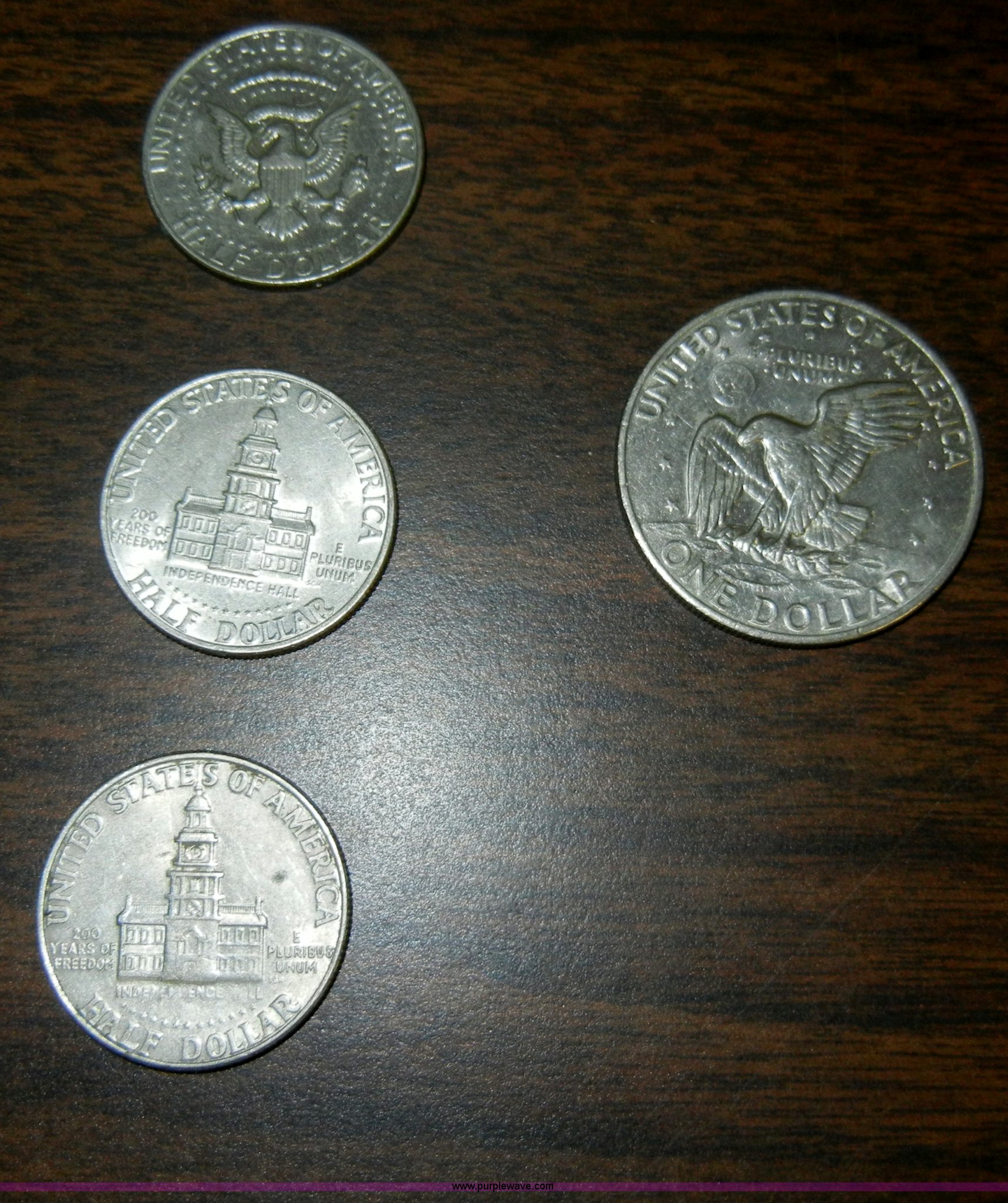 (4) assorted U.S. coins. Eisenhower 1972 $1, (3) Kennedy half dollars 1972, (2) bicentennial. Shipping quotes available. 3501 NW Hwy 24. Topeka, KS 66618