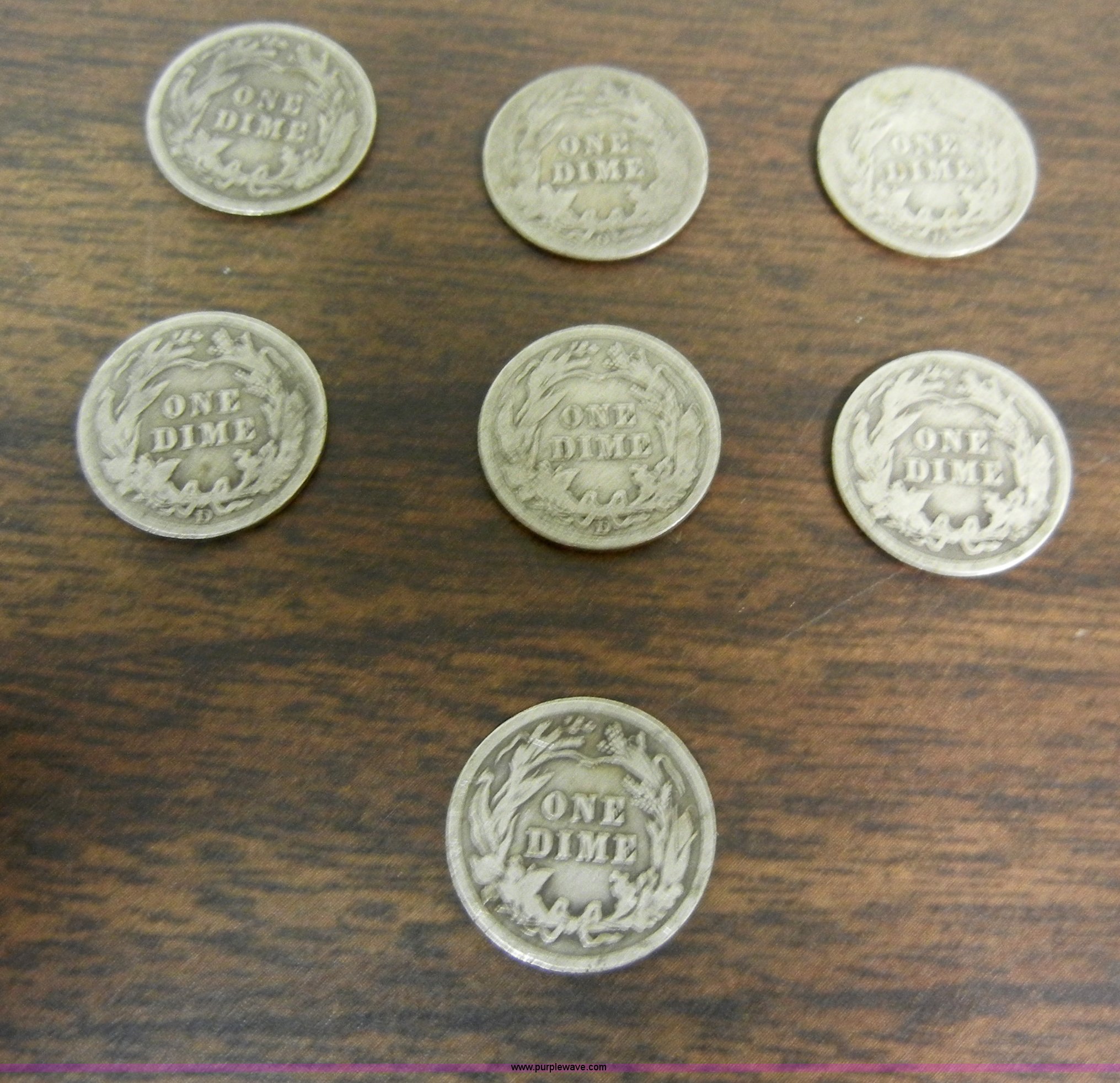 Purple Wave is selling a used All Other Household Items in Kansas. This item is a (9) assorted dimes with the following: 1923 Mercury, 1838 Liberty Seated half dime, (7) 1906 to 1916 Barbers