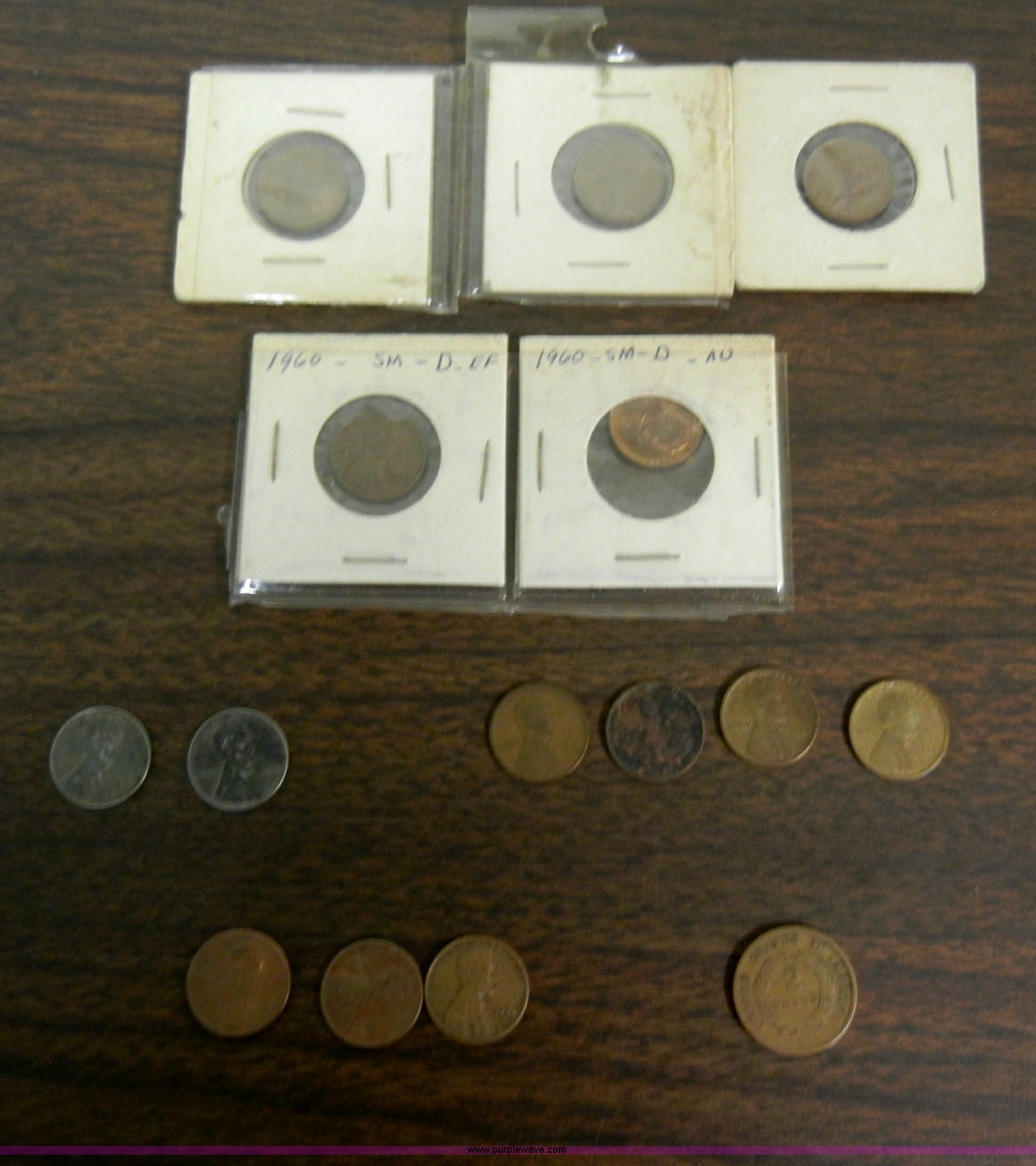 Purple Wave is selling a used All Other Household Items in Kansas. This item is a (15) assorted pennies with the following: (2) 1943 steel, (9) 1919D to 1960D Wheats, 1973 penny, 1990D penny, 1982D penny