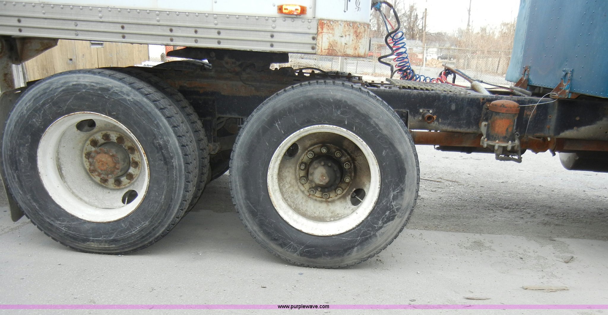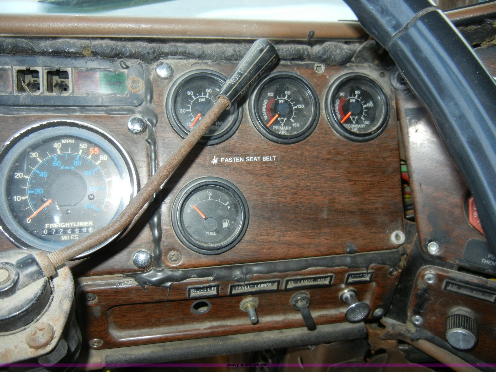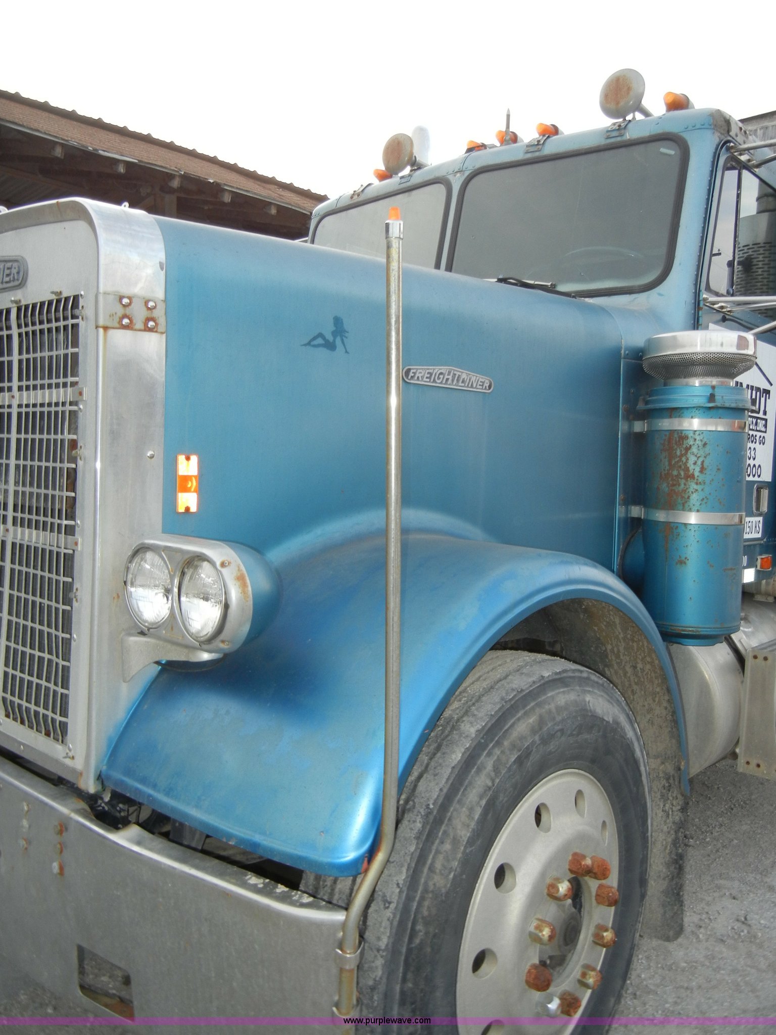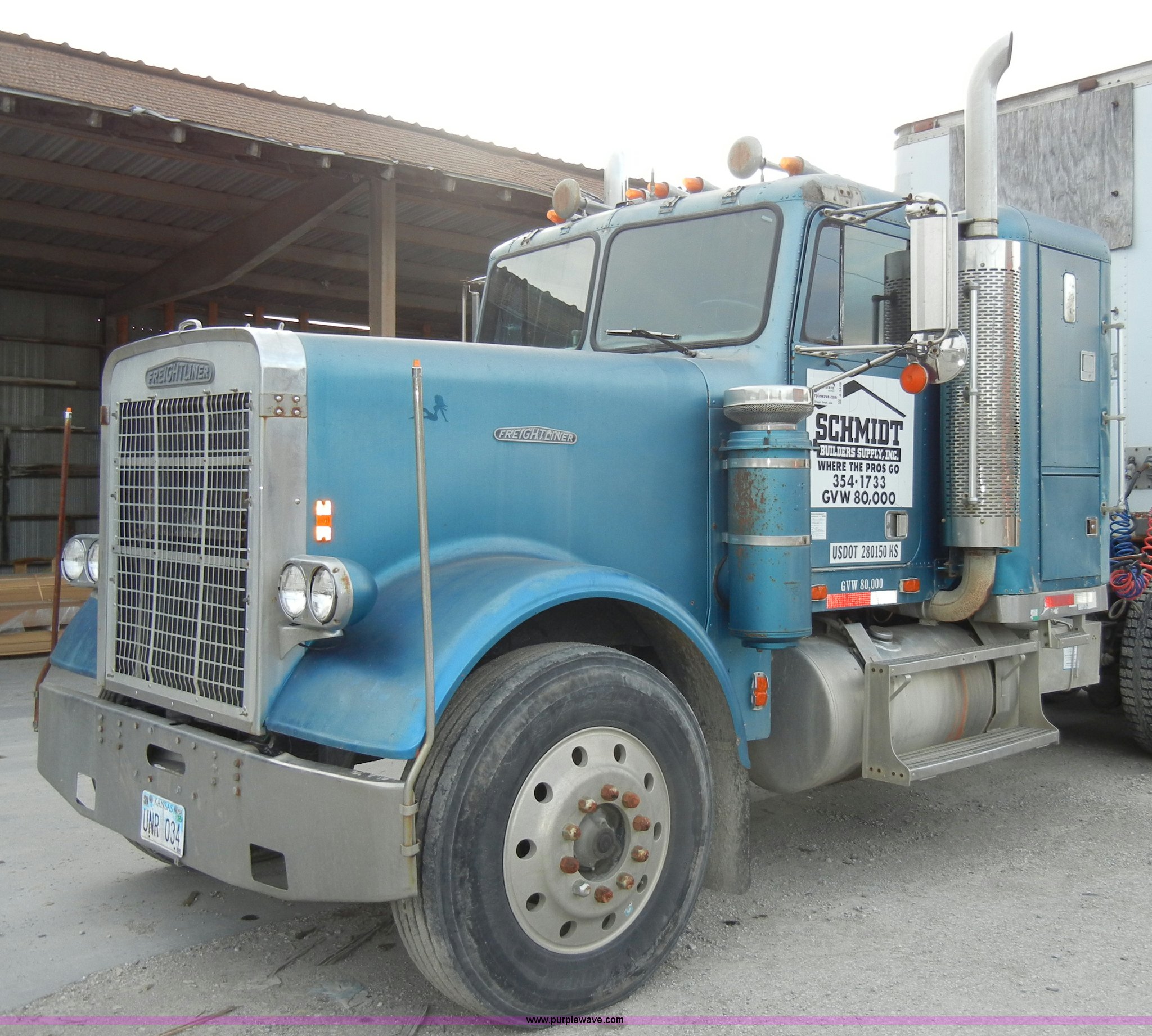 Purple Wave is selling a used Truck Tractor in Kansas. This item is a 1983 Freightliner FLC 64T semi truck with the following: 72,468 miles on odometer, Cummins NTC 14.0L diesel engine, Fuller Roadranger 13 speed manual transmission, Differential lock, AC and heat, Heated mirrors, Air ride cab, 7' x 3' sleeper, No mattress, Fifth wheel lock/unlock, Block heater, Dual 95 gallon fuel tanks, Front dual exhaust stacks, Front side markers, Air suspension, Wheel nut covers, 11R24.5 tires, GVWR 50,000 lbs, FAWR 12,000 lbs, IAWR 19,000 lbs, RAWR 19,000 lbs, Stereo missing, Interior/exterior cosmetic damage