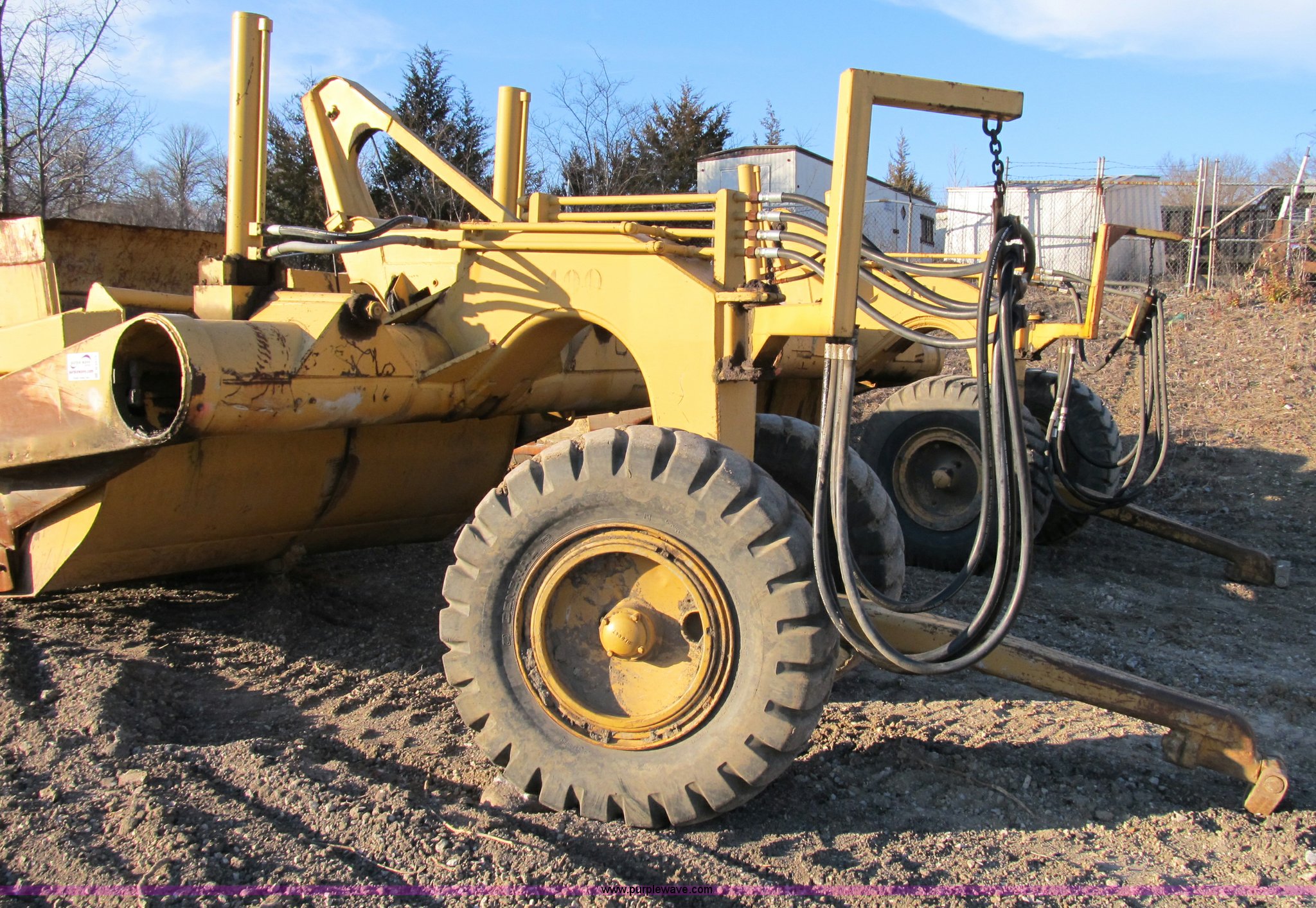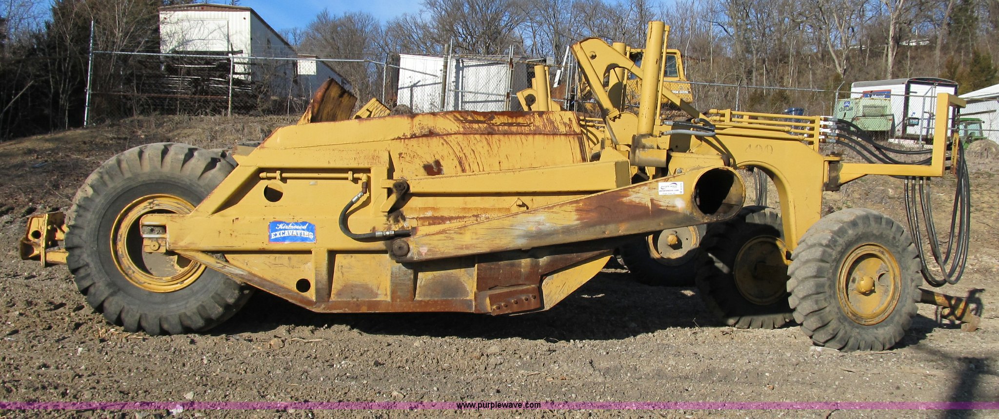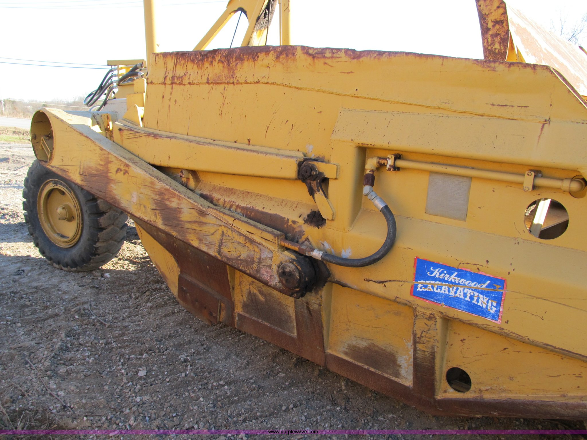 Purple Wave is selling a used Conventional Scraper in Missouri. This item is a Caterpillar 70 hydraulic scraper with the following: Flat bottom, Series 3W, Tow bar hitch, 10 cu. yd. struck, 13.9 cu. yd. heap, 17.5-25 front tires, 23.5-25 rear tires