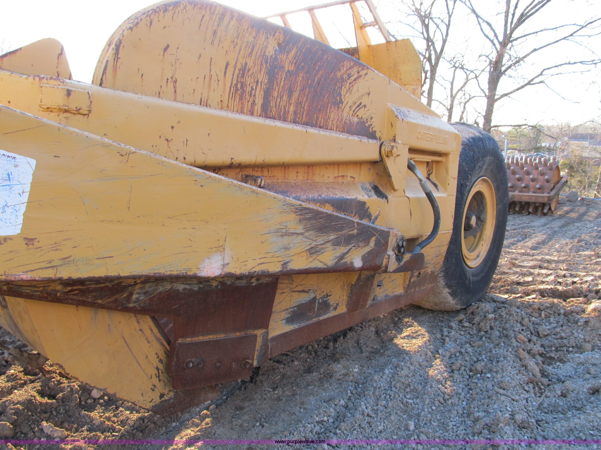 Purple Wave is selling a used Pull Type Scraper in Missouri. This item is a Caterpillar 70 hydraulic scraper with the following: Round bottom, Series 3W, Tow bar hitch, 10 cu. yd. struck, 13.9 cu. yd. heap, 16-24 front tires, 21-24 rear tires