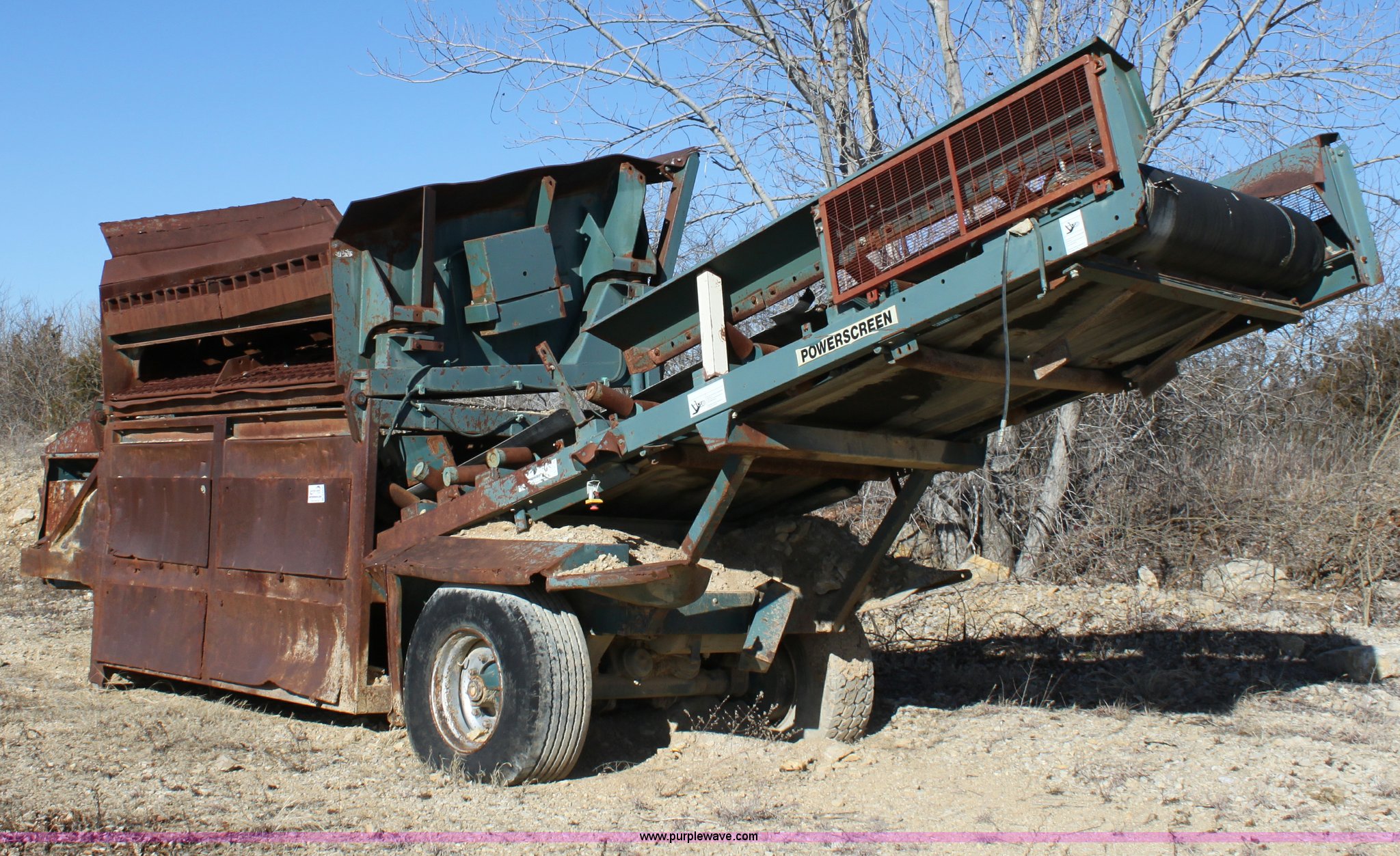 Purple Wave is selling a used Pug Mill in Kansas. This item is a Power screen with the following: 4,618 hours on meter, Deutz four cylinder diesel engine, Hydraulic screen box height adjustment, 10' x 7' grizzly upper screen, 10' x 4' x 4" lower screen, 16' x 60" conveyor, 21" rollers, Fifth wheel hitch, 425/65R22.5 tires, Rack is stuck, engine not supplied with diesel
