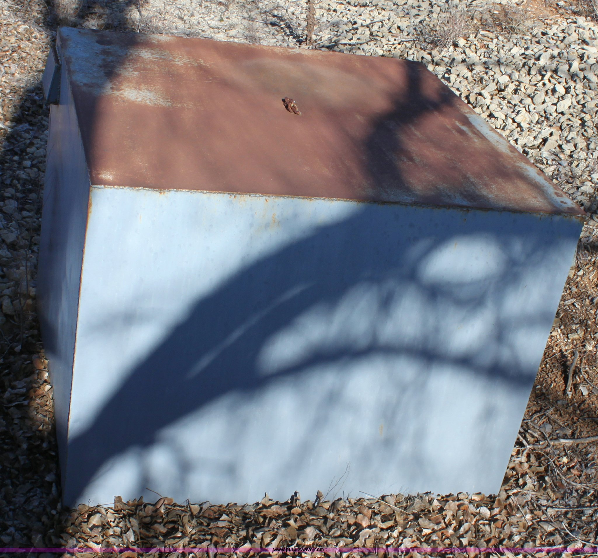 Explosives container. 6' x 6' x 60.5", 3/16" steel construction, Lined with 4" green oak. Shipping quotes available. Central Quarry Inc. 9689 SW 30th. Towanda, KS 67144