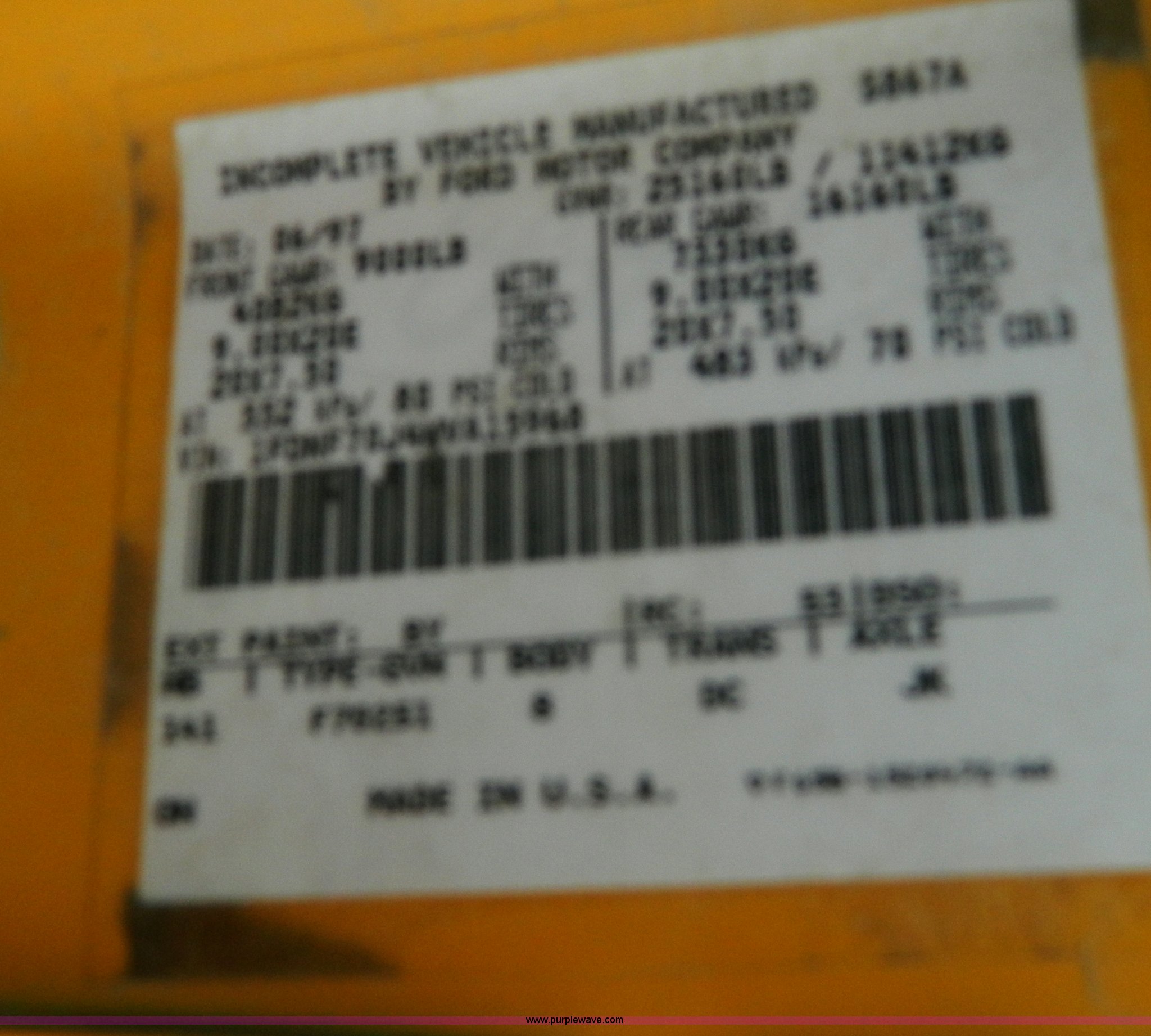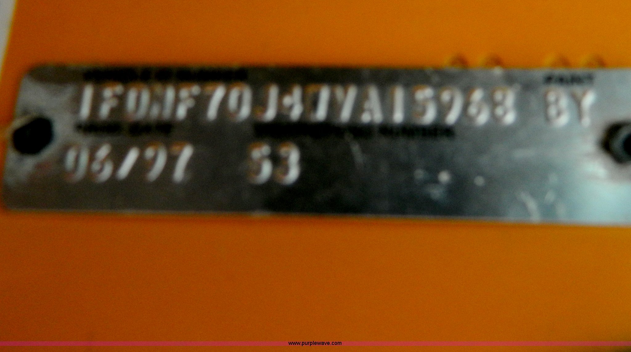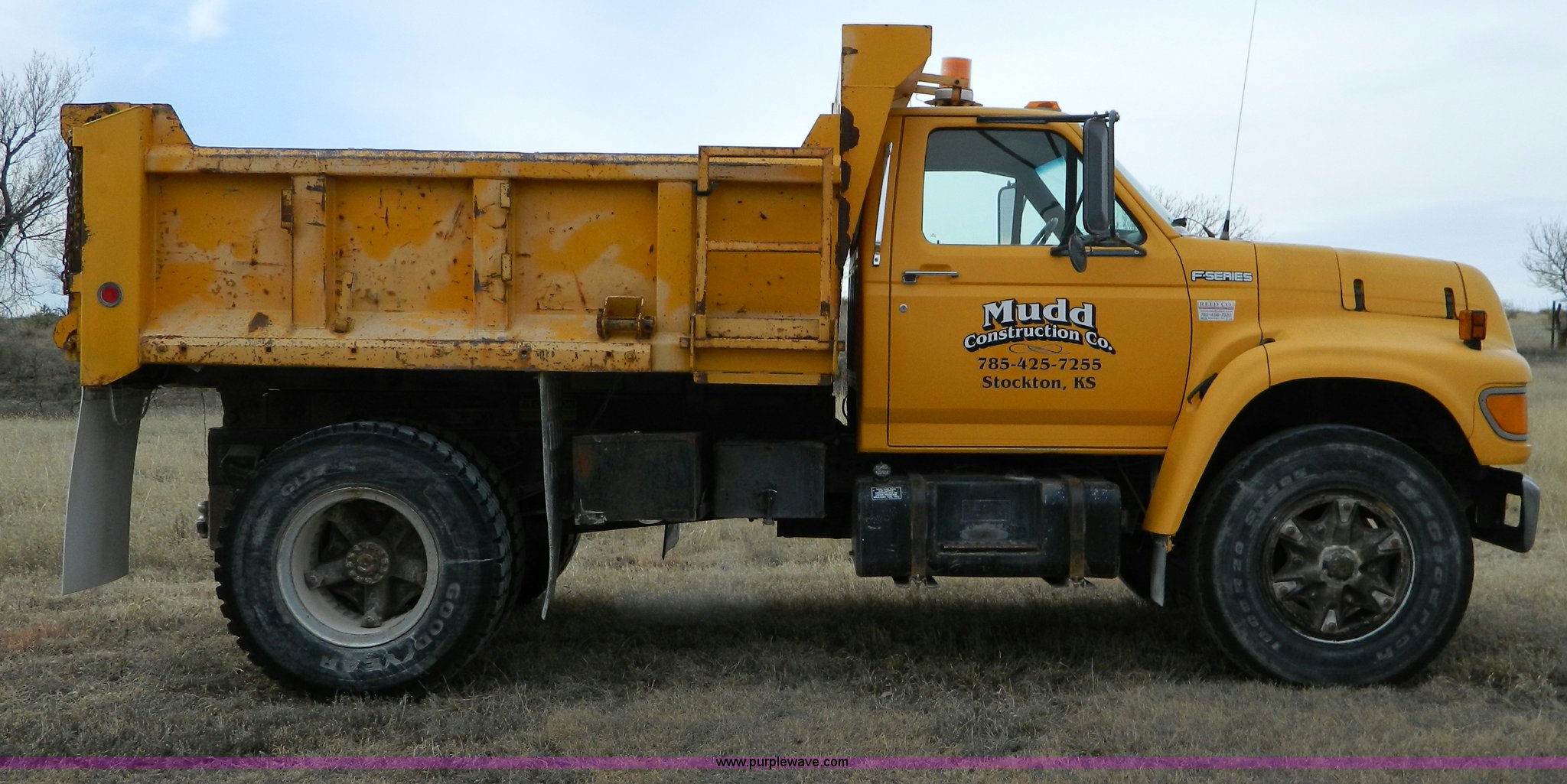Purple Wave is selling a used Construction Dump Truck in Kansas. This item is a 1998 Ford F700 dump truck with the following: 73,674 miles on odometer, 7.0L V8 gas engine, Five speed split axle manual transmission, Heil 5 cu. yd. dump bed, Model SL5YD9, Serial 9703197, Dual 50 gallon fuel tanks, Reverse alarm, Heater, Power hydraulic brakes, GVWR 25,160 lbs, 10.00-20 tires