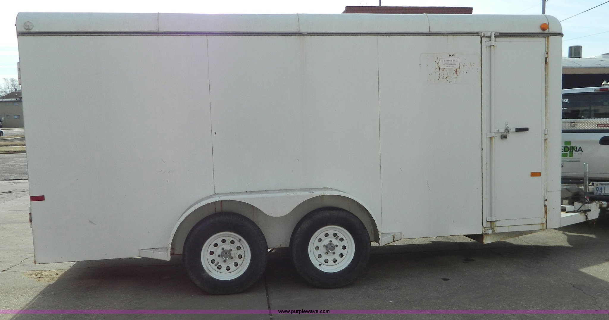 Purple Wave is selling a used Enclosed Cargo Trailer in Kansas. This item is a 1997 W-W enclosed trailer with the following: 16' x 6', GVWR 7,000 lbs, 2" bullnose hitch, ST225/75R15 tires, Contents pictured included, Rear doors close hard, Unknown working condition of electrical components