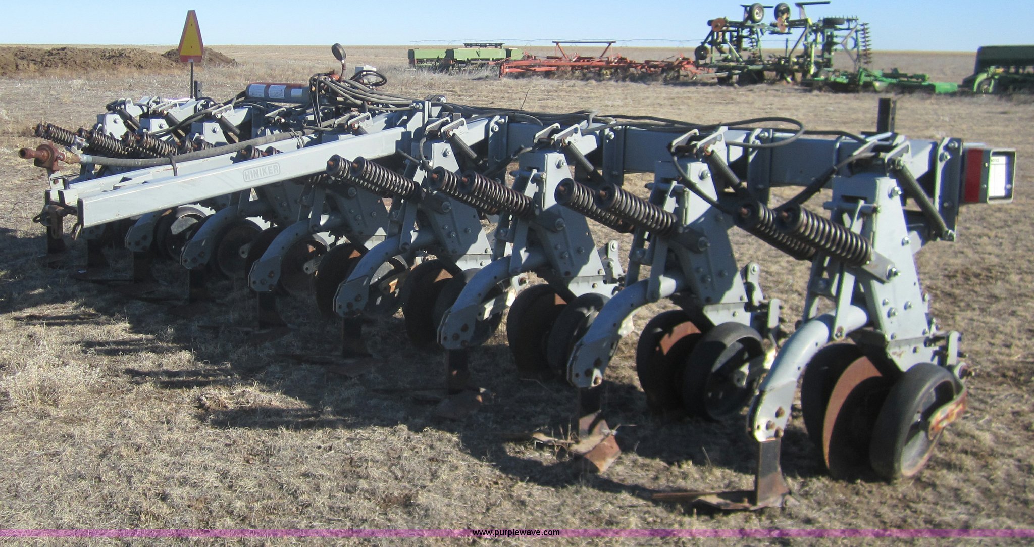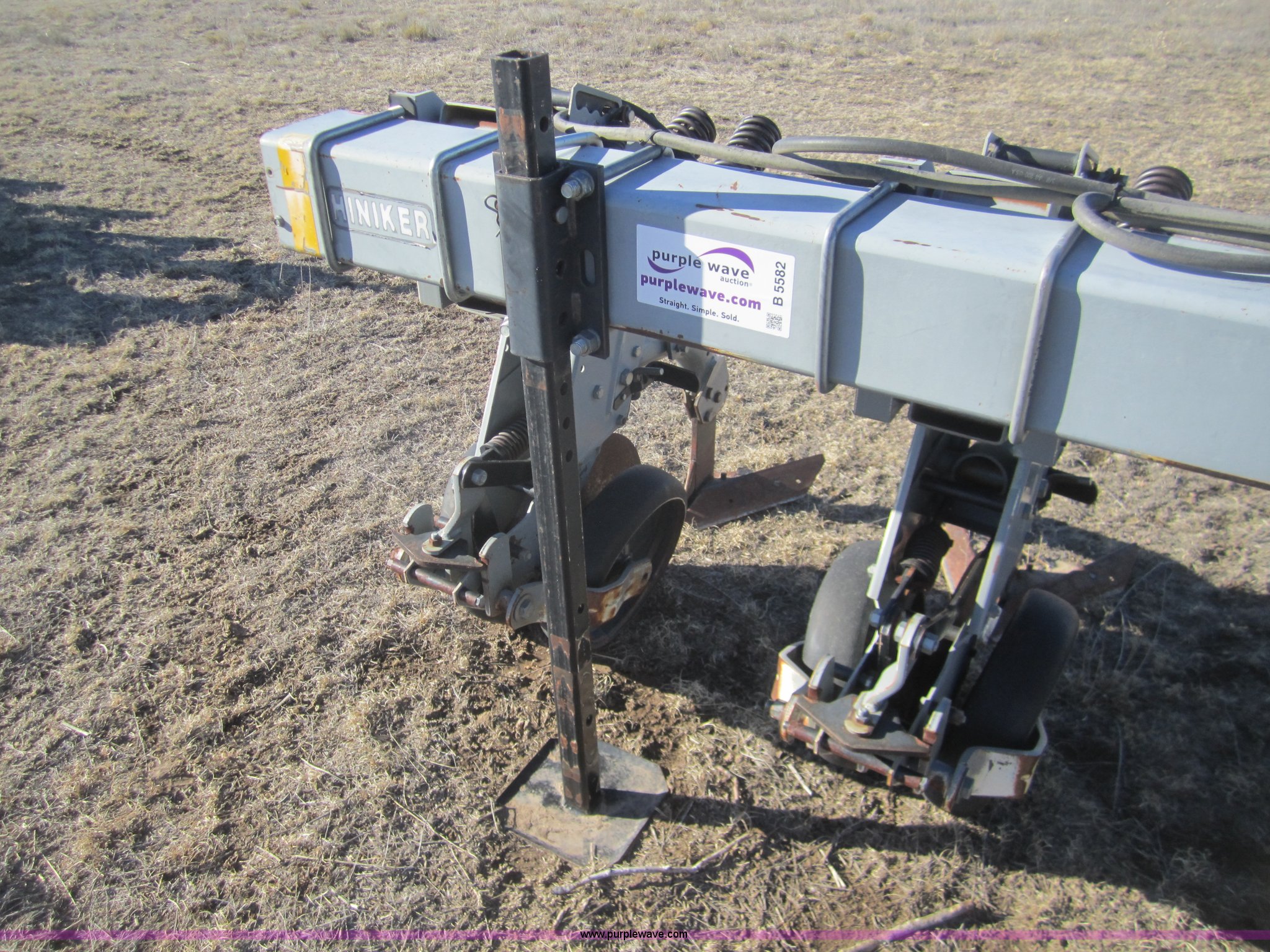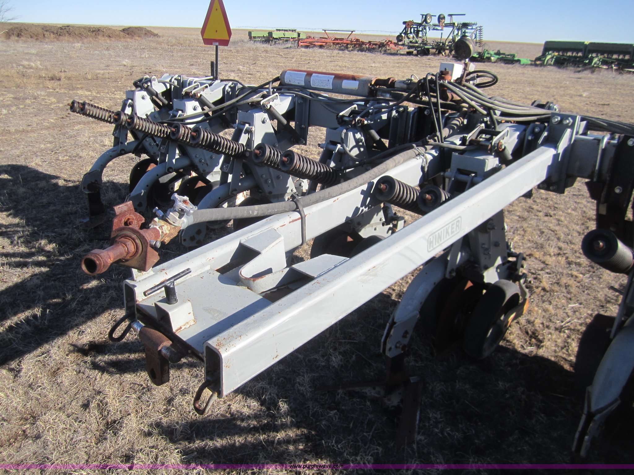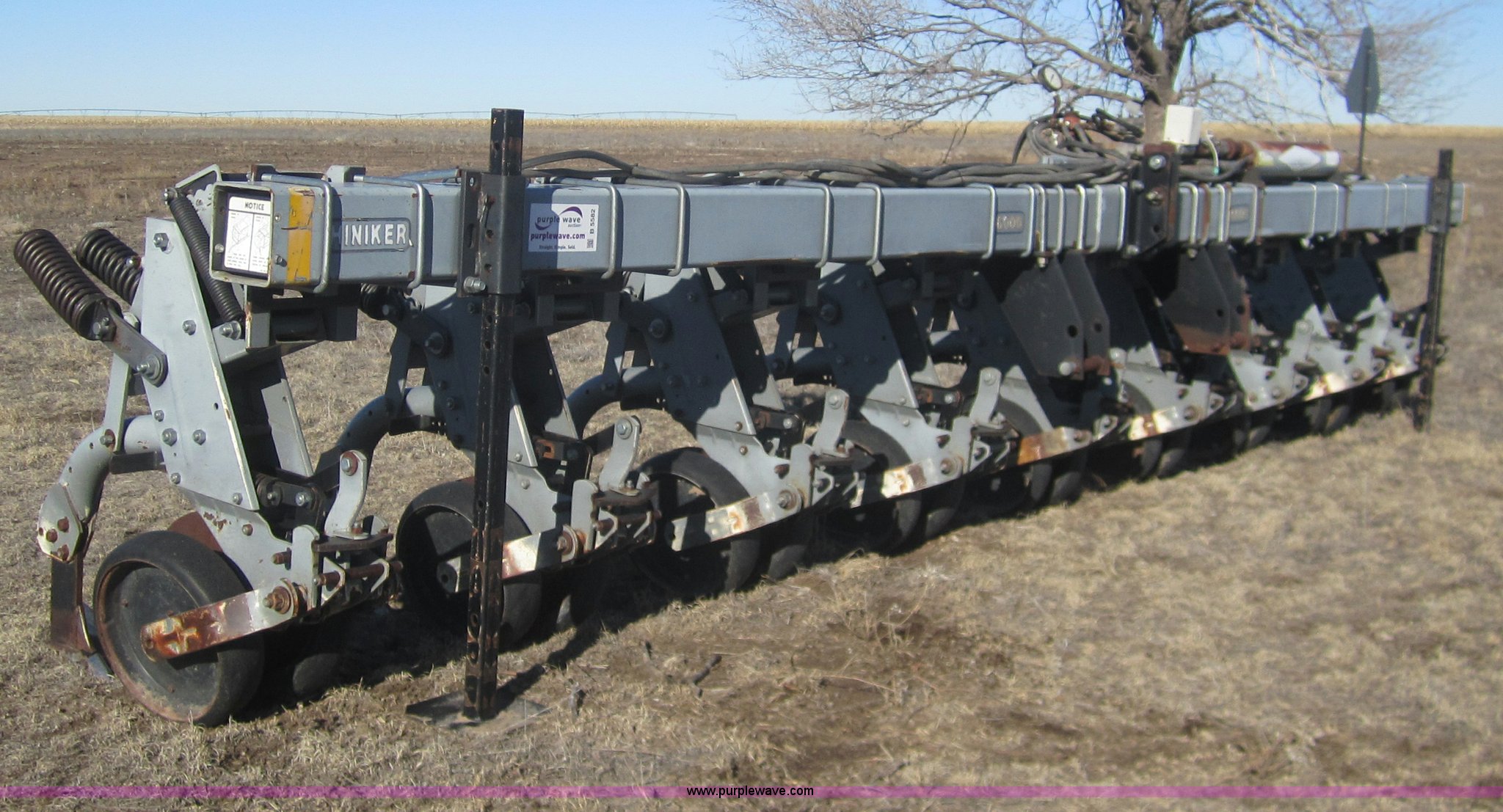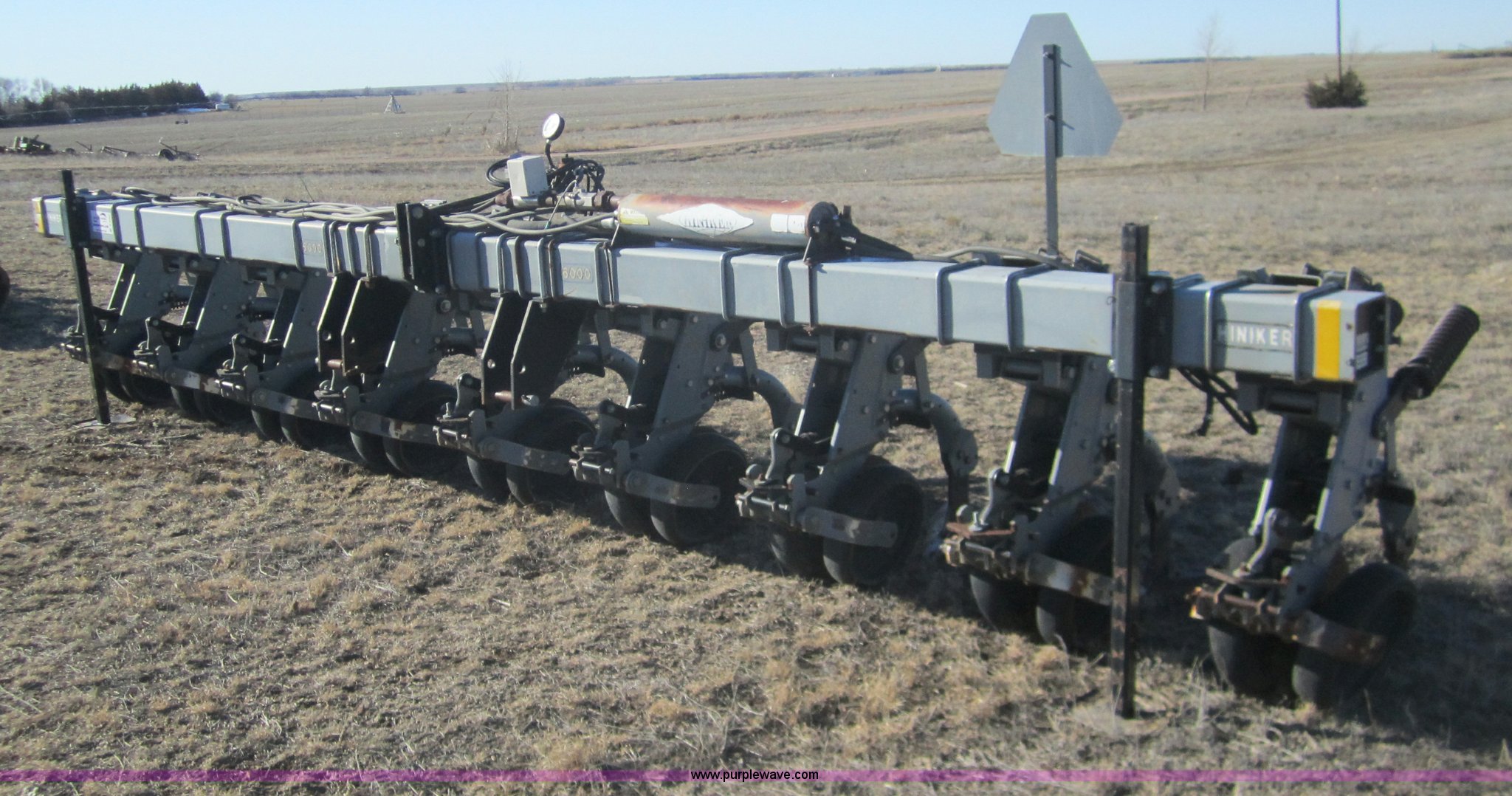 Purple Wave is selling a used Row Crop Cultivator in Kansas. This item is a Hiniker 6000 eight row cultivator with the following: 30" spacings, Three point, Hiniker anhydrous flow control with 8150 monitor, Anhydrous hitch, Currently has 18" sweep attachements, Includes set of wing furrowers and new set of coulters, Serial 6000-2832-101