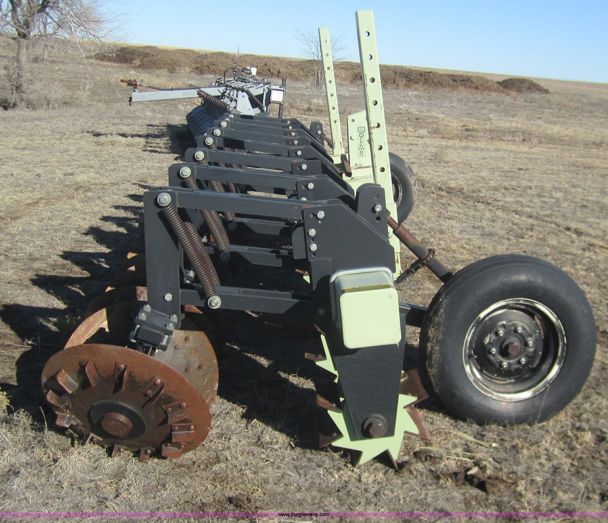 Purple Wave is selling a used Tillage Other in Kansas. This item is a Orthman Row Stalker 600 eight row stalk chopper with the following: 30" spacings, Three point, Gauge wheels, 12" chopper blades, Cutting disks, 7.60-15SL tires, Model 645604, Serial 440110