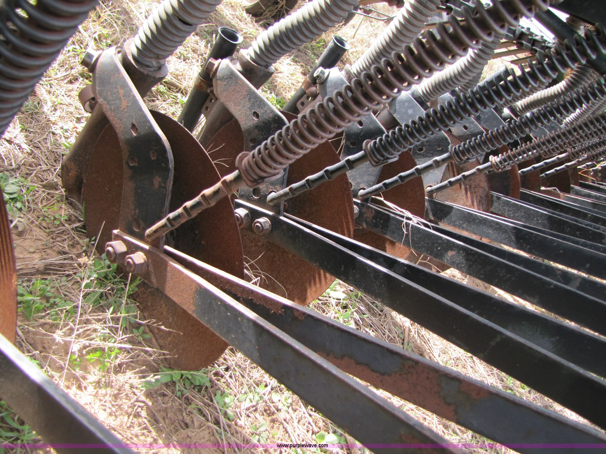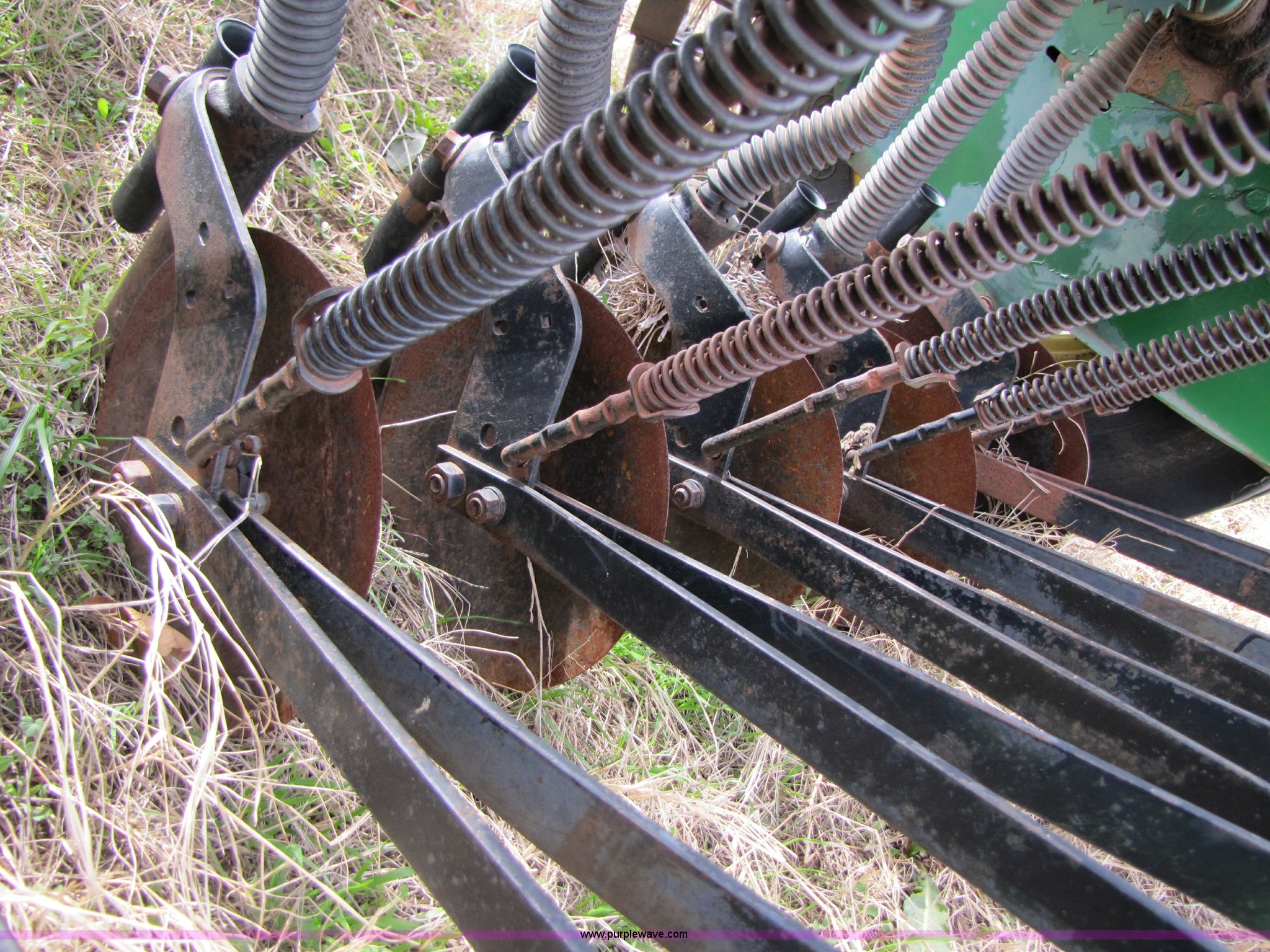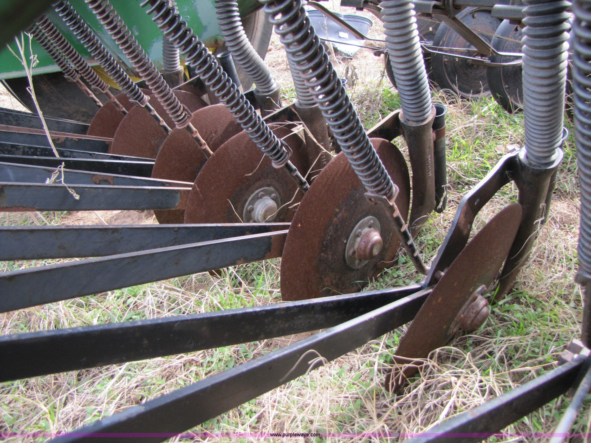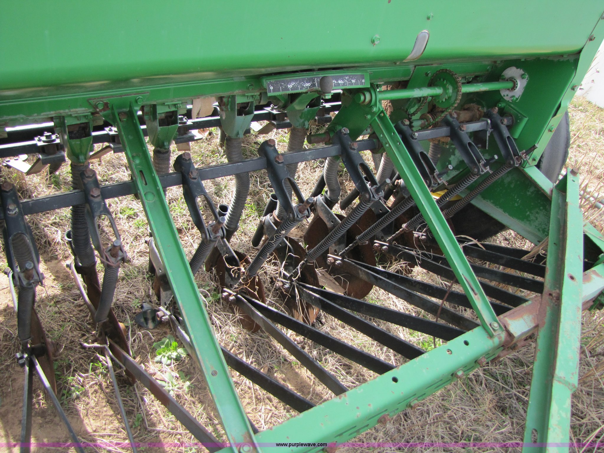 Purple Wave is selling a used Grain Drill or Seeder in Oklahoma. This item is a (2) John Deere 8350 16 row drills with tandem hitch with the following: 10.5'W each, 8" row spacing, Press wheels, Single disk openers, Setup for dry fertilizer, Needs repair, Hydraulic height adjust, Hydraulic folding tandem drill hitch, 15" tires, Hiniker three point track scratcher hitch, Pin hitch, 7.50-20 tires, Serial 003396N, 003261N