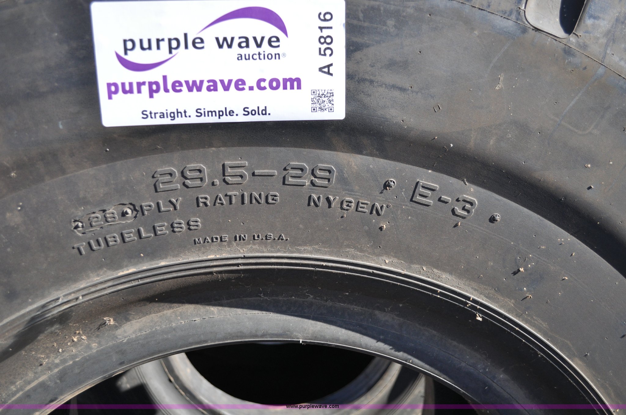 Purple Wave is selling a used Industrial Tires or Tracks in Colorado. This item is a (2) 29.5-29 General tires with the following: 28 ply, Tubeless, LCM, Logging Construction Mining, Non directional, New