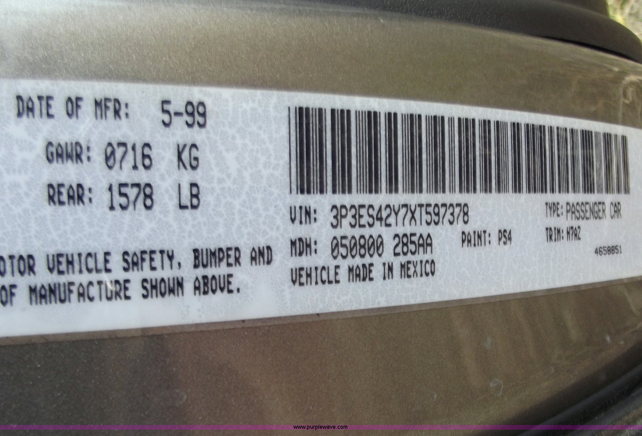 Purple Wave is selling a used Passenger Vehicle in Missouri. This item is a 1999 Plymouth Neon Highline with the following: 155,966 miles on odometer, 2.0L I4 SFI engine, Automatic transmission, AC and heat, Manual windows and locks, Cloth interior, 185/75R14 tires, Factory radio will be re-installed, Interior/exterior cosmetic damage