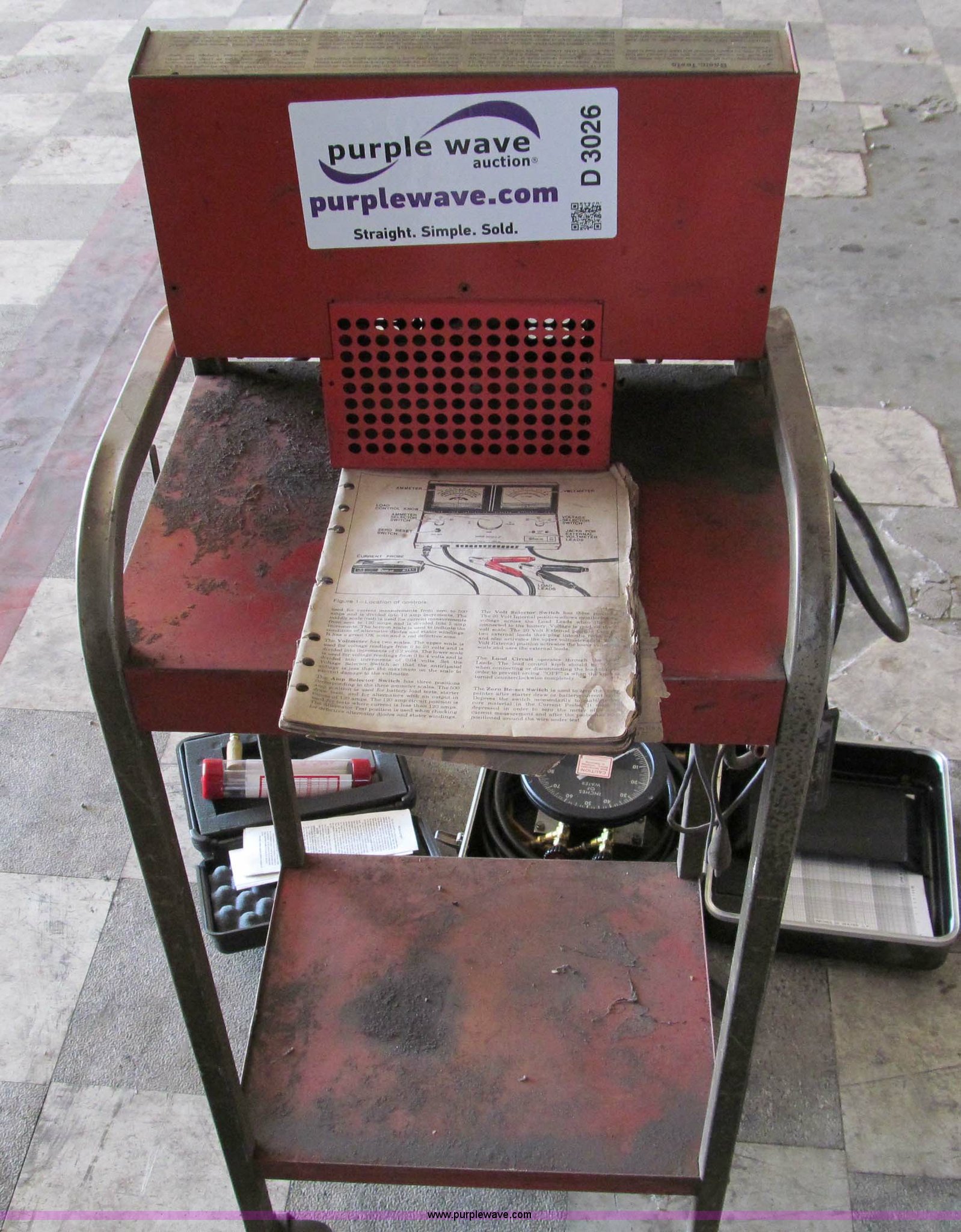 Purple Wave is selling a used Other Industrial or Business in Missouri. This item is a Snap-on battery and alternator load test with the following: Barco differential Pressure gauge, Vac-U-Ator tester kit, HVAC test equipment