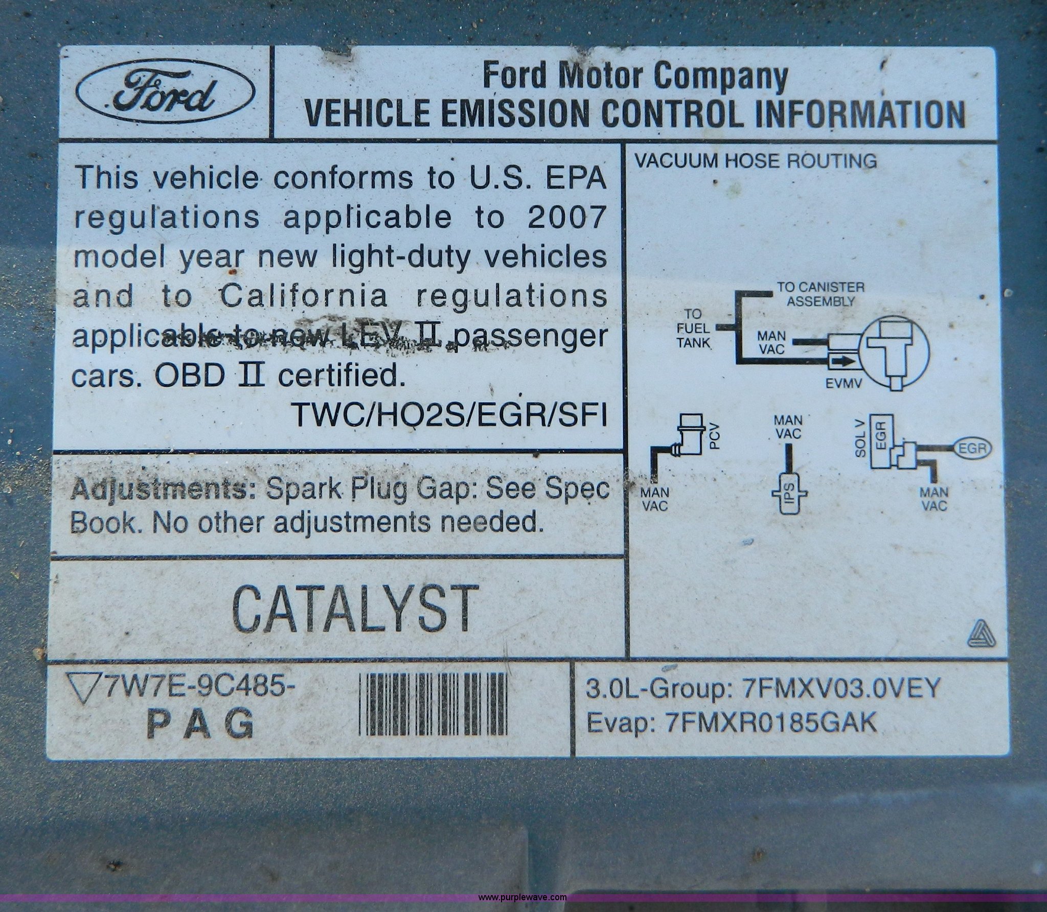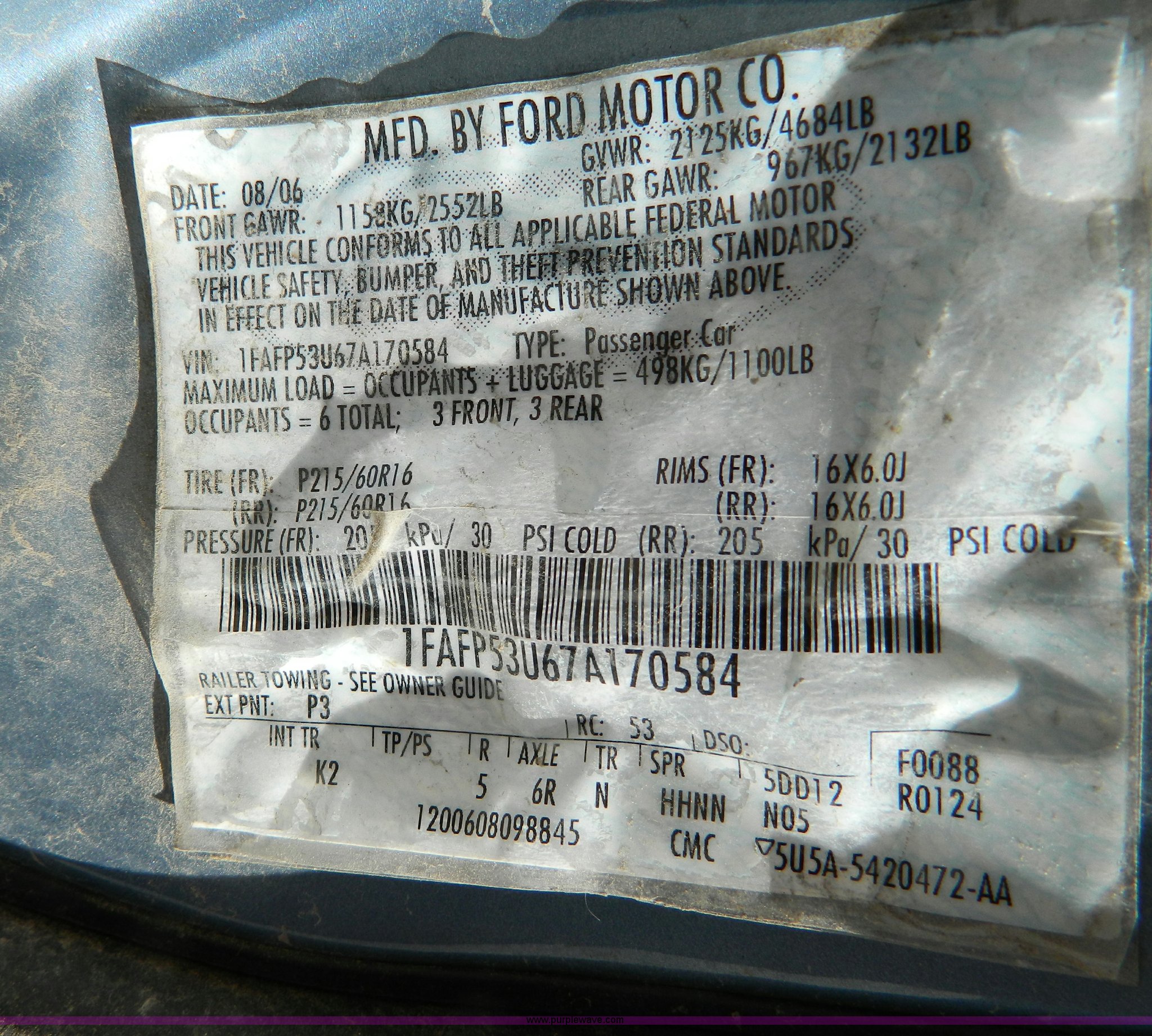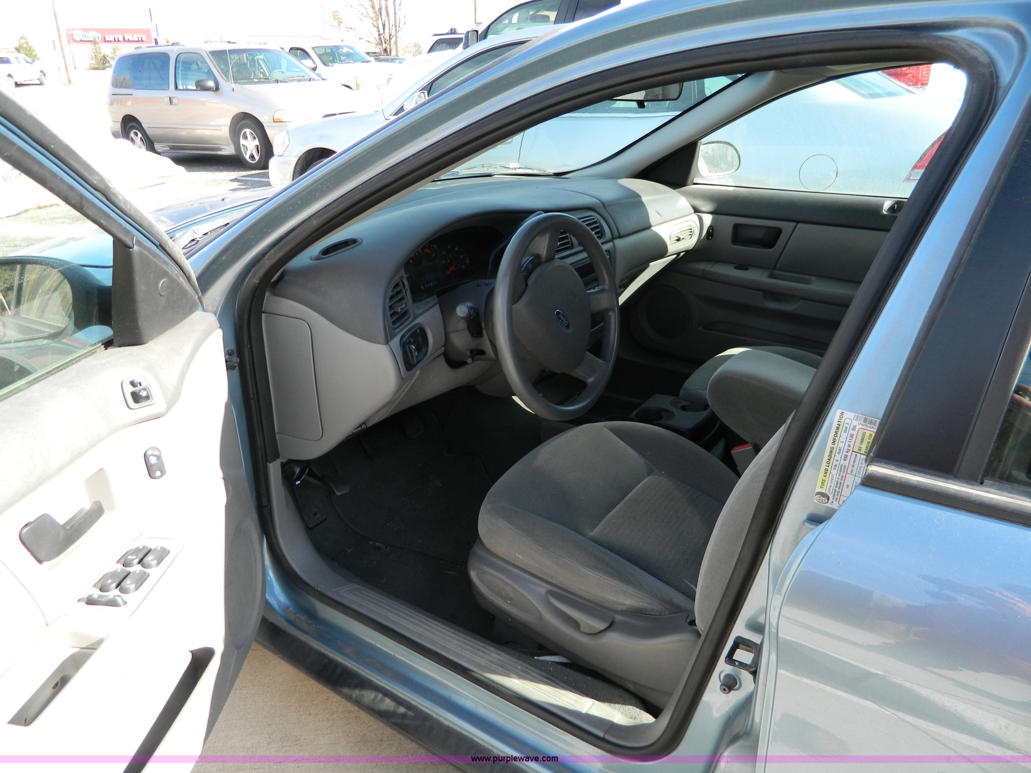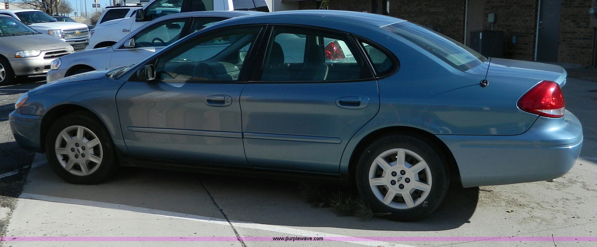 Purple Wave is selling a used Passenger Vehicle in Kansas. This item is a 2007 Ford Taurus SE with the following: 193,278 miles on odometer, 3.0L V6 SFI engine, Automatic transmission, AC and heat, Tilt, Cruise, AM/FM/CD, Power windows, locks, and mirrors, Cloth interior, 215/60R16 tires, Front end collision damage, Cosmetic damage, Weak battery