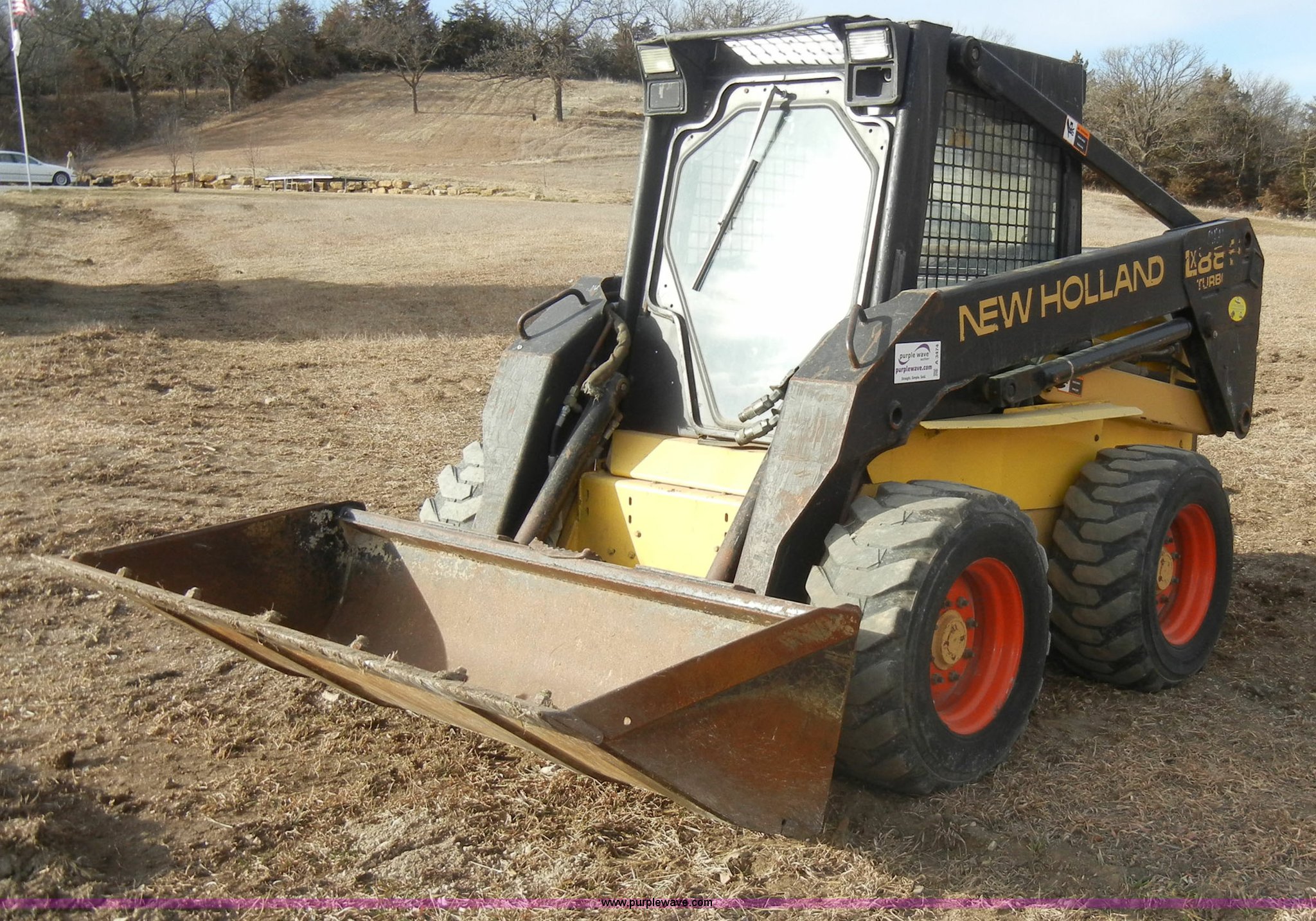 Purple Wave is selling a used Skid Steer Loader in Kansas. This item is a 1997 New Holland LX885 Turbo skid steer with the following: 1,225 hours on meter, New Holland diesel engine, 63 HP, Two speed transmission, Enclosed cab, Foot and hand controls, Hydraulic front hookups, 70" bucket, Bolt-on edge, 2,200 lb lift capacity, Lights, 12-16.5 tires, extra-wall, 7,004 lbs. base operating weight, Serial 112155