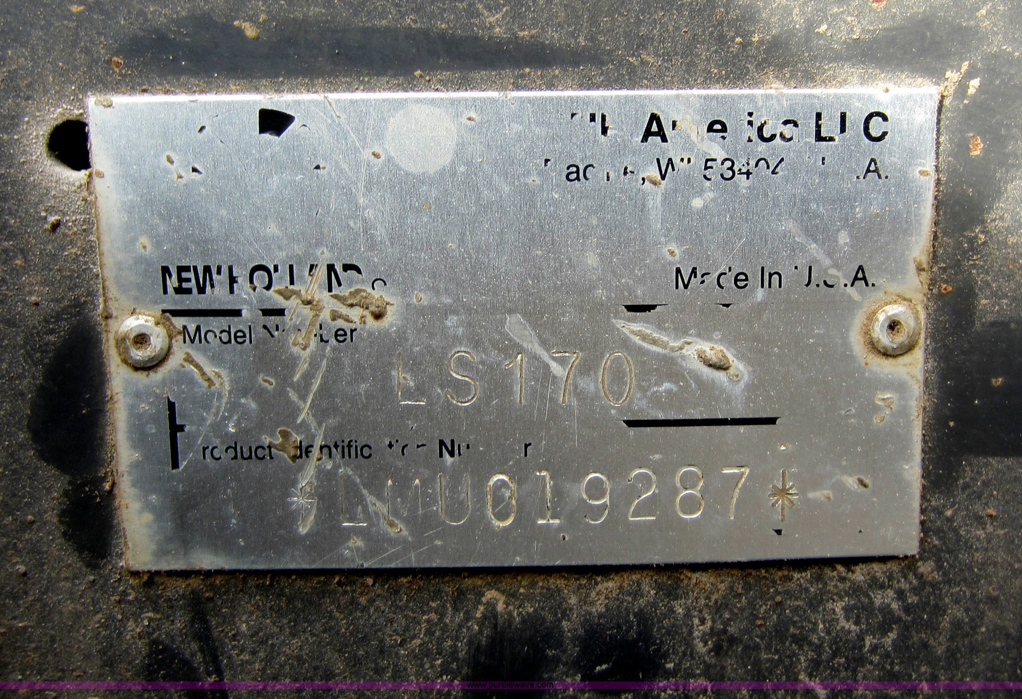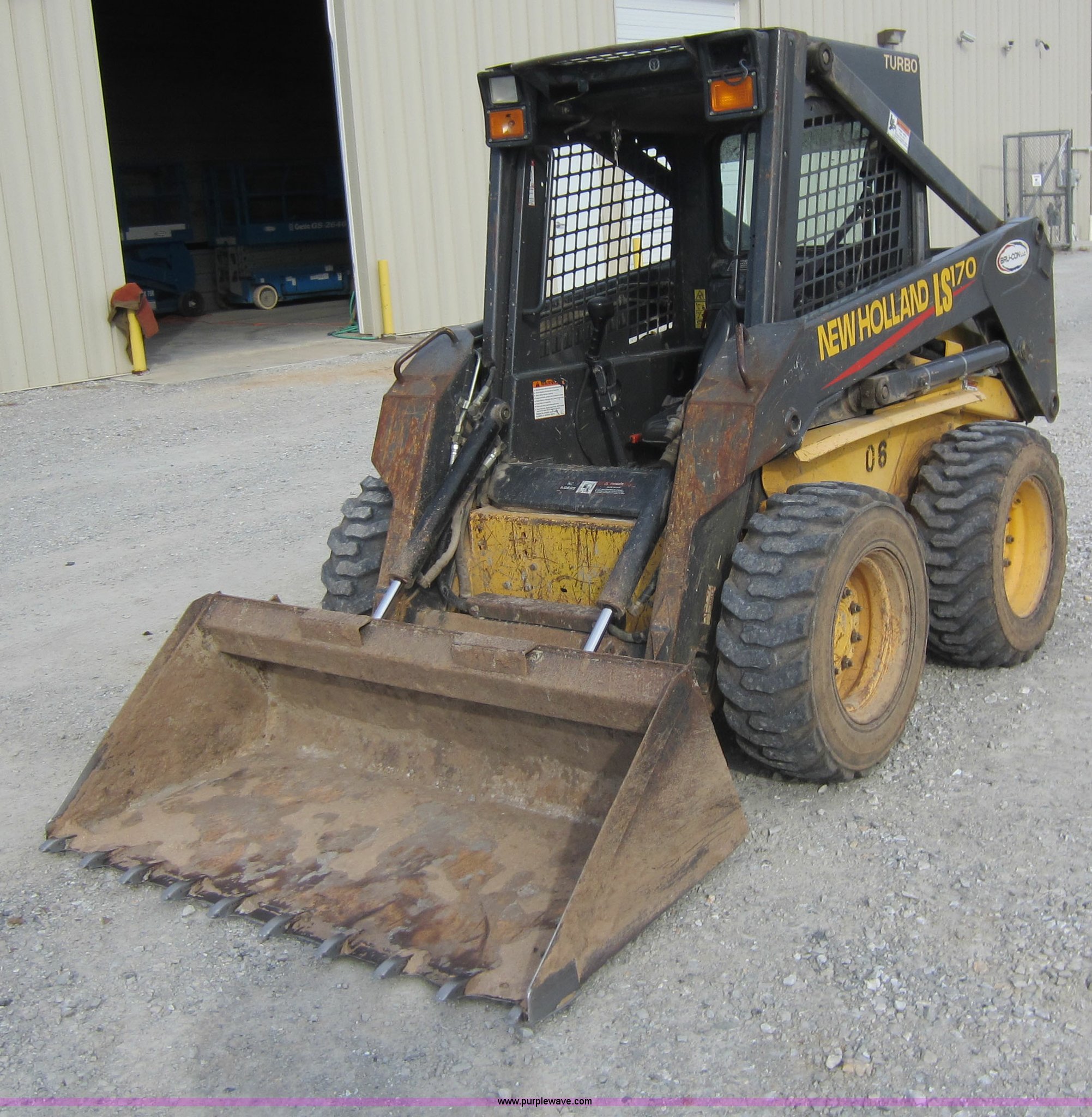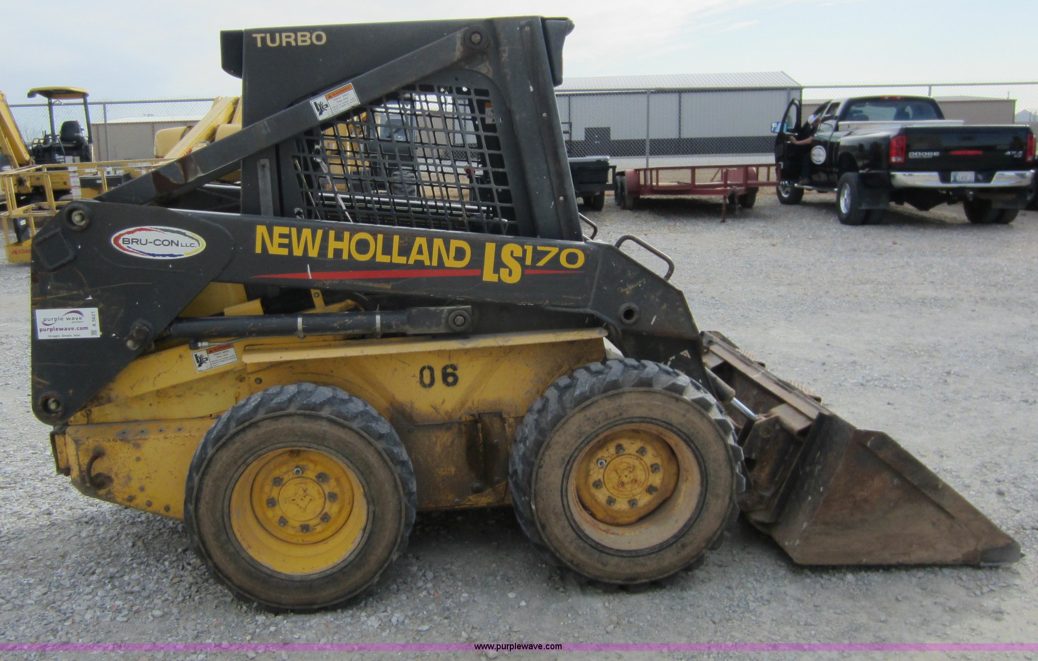 Purple Wave is selling a used Skid Steer Loader in Oklahoma. This item is a 2004 New Holland LS170 skid steer with the following: 2,016 hours on meter, Hours may vary, New Holland N844T 2.0L diesel engine, 52 HP, Open ROPS, Hand and foot controls, 1,700 lb lift capacity, 5' bucket with teeth, Quick attach bucket, Auxiliary hydraulics, 10-16.5 tires, 5,540 lbs. base operating weight, Parking brake inoperable, Serial LMU019287