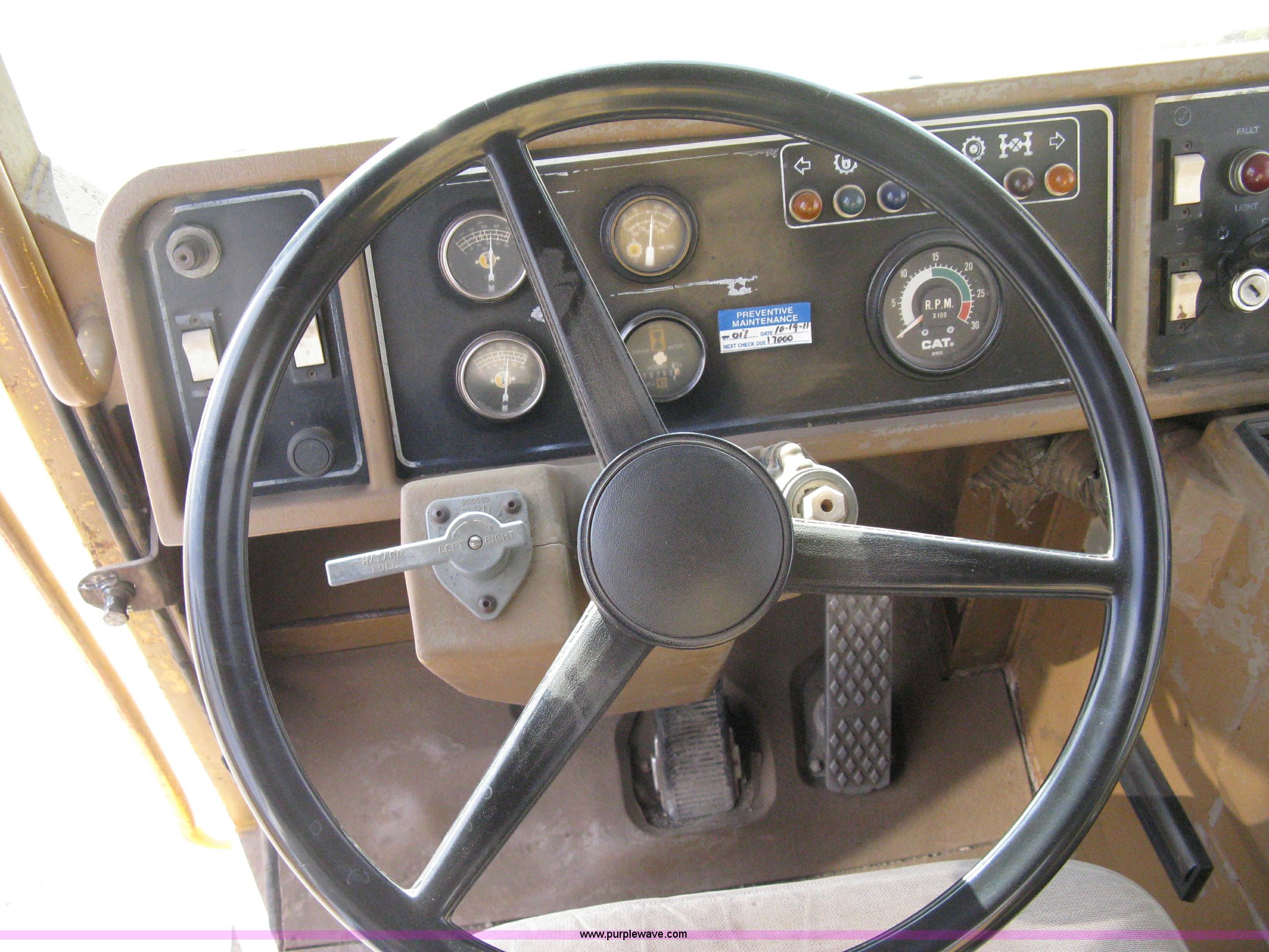 Purple Wave is selling a used Articulated Haul Truck in Kansas. This item is a 1989 Caterpillar D30D articulated haul truck with the following: 16,760 hours on meter, Six cylinder diesel engine, Enclosed cab, Heater, Sliding windows, AM/FM, Work lights, Dump body nose extension, Rear pin hitch, 29.5R25 tires, Dump body ID#'s 5U-9750, 05-4136, Missing glass panel on door, Serial 3AJ00054-7U4530
