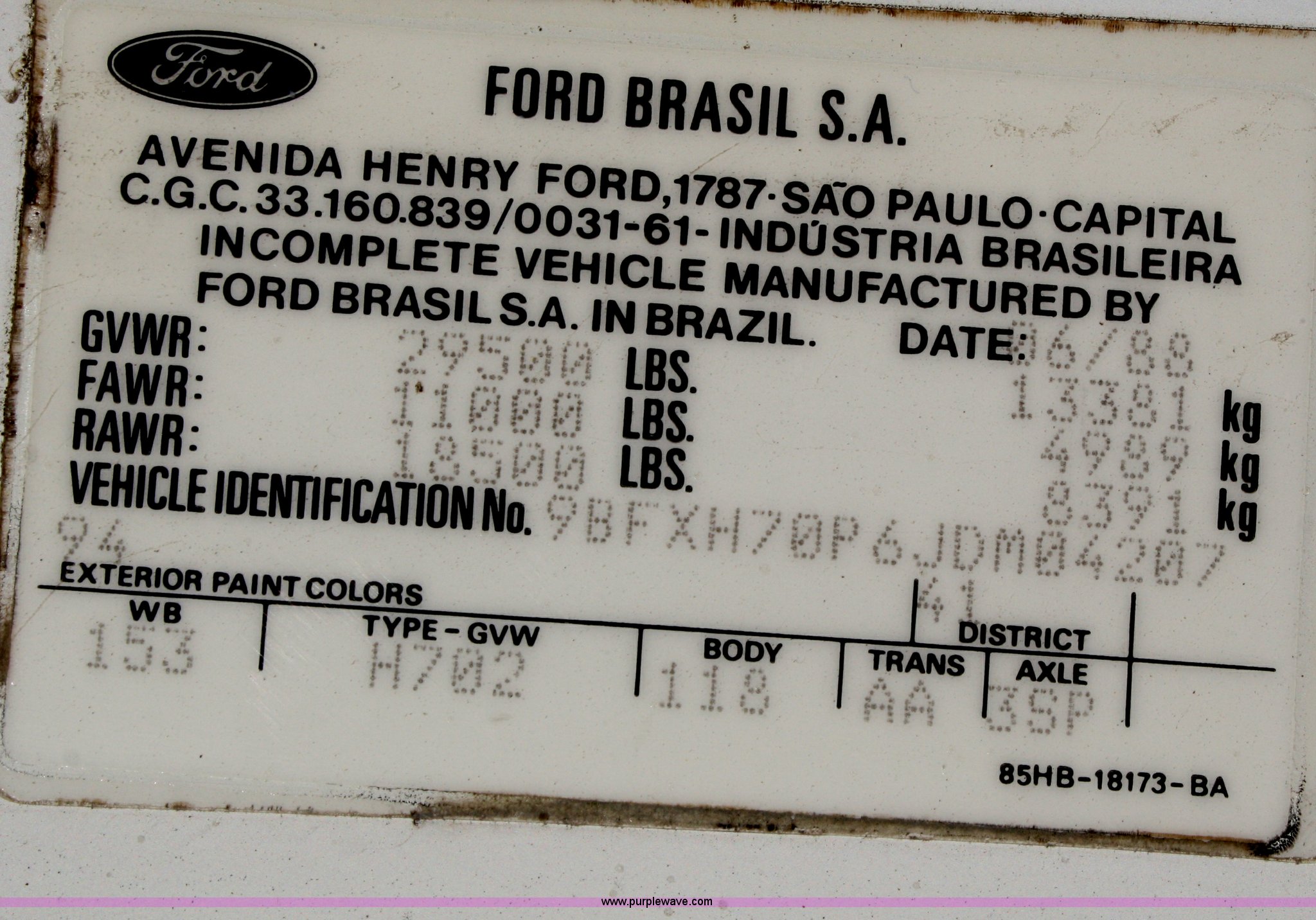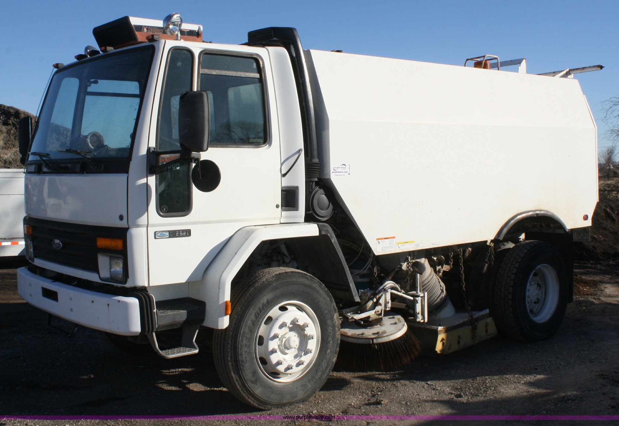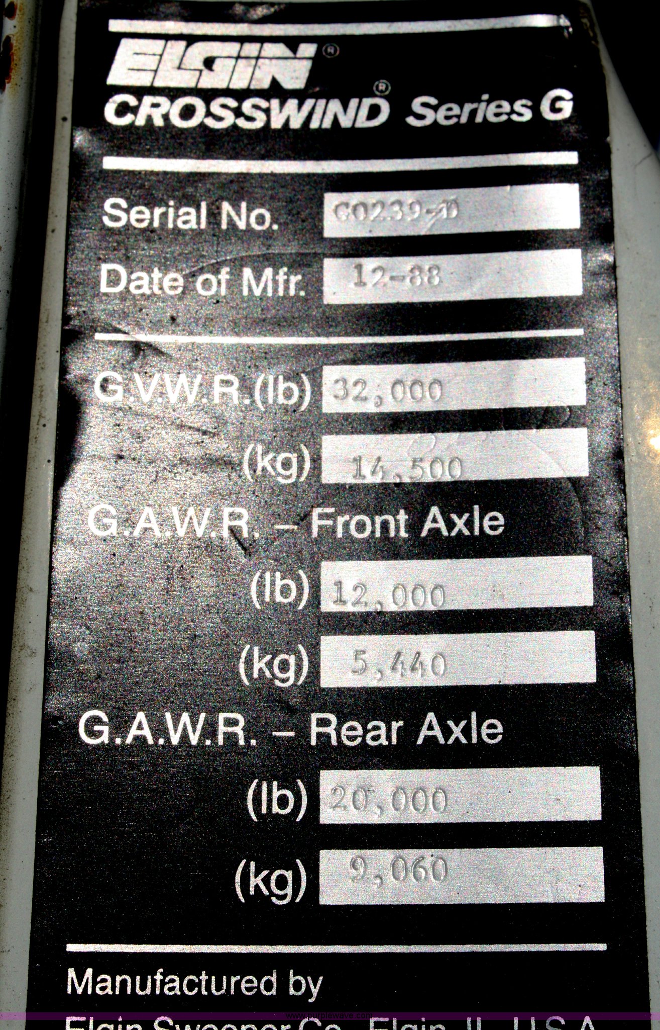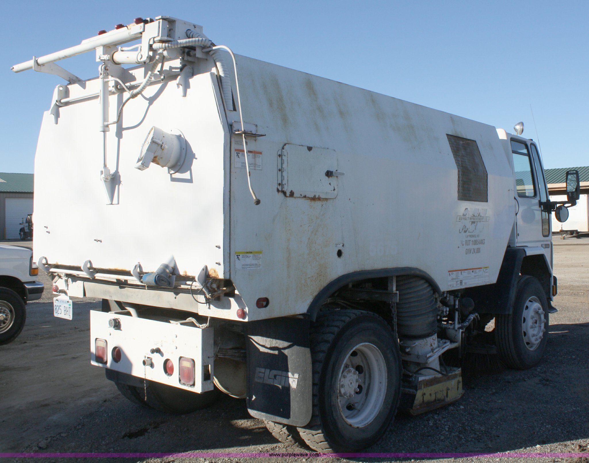 Purple Wave is selling a used Street Sweeper Truck in Kansas. This item is a 1989 Ford Elgin Crosswind Series G street sweeper with the following: 9,745 miles on odometer, 1,373 engine hours on meter, 411 sweeper hours on meter, Six cylinder diesel engine, Automatic transmission, AC and heat, AM/FM, 90"W pickup head, 11x27.5 tires, GVWR 32,000 lbs, Serial C0239D