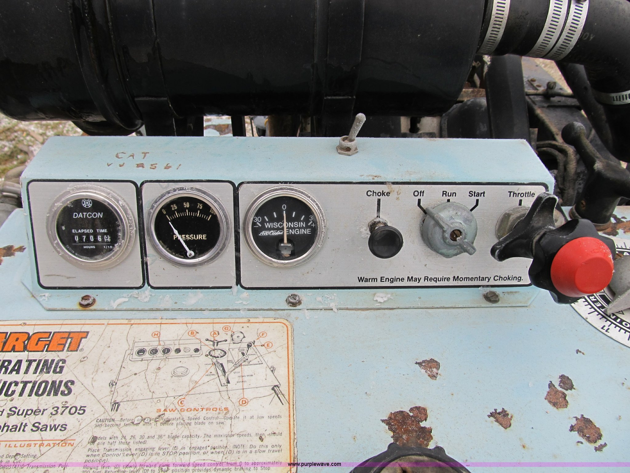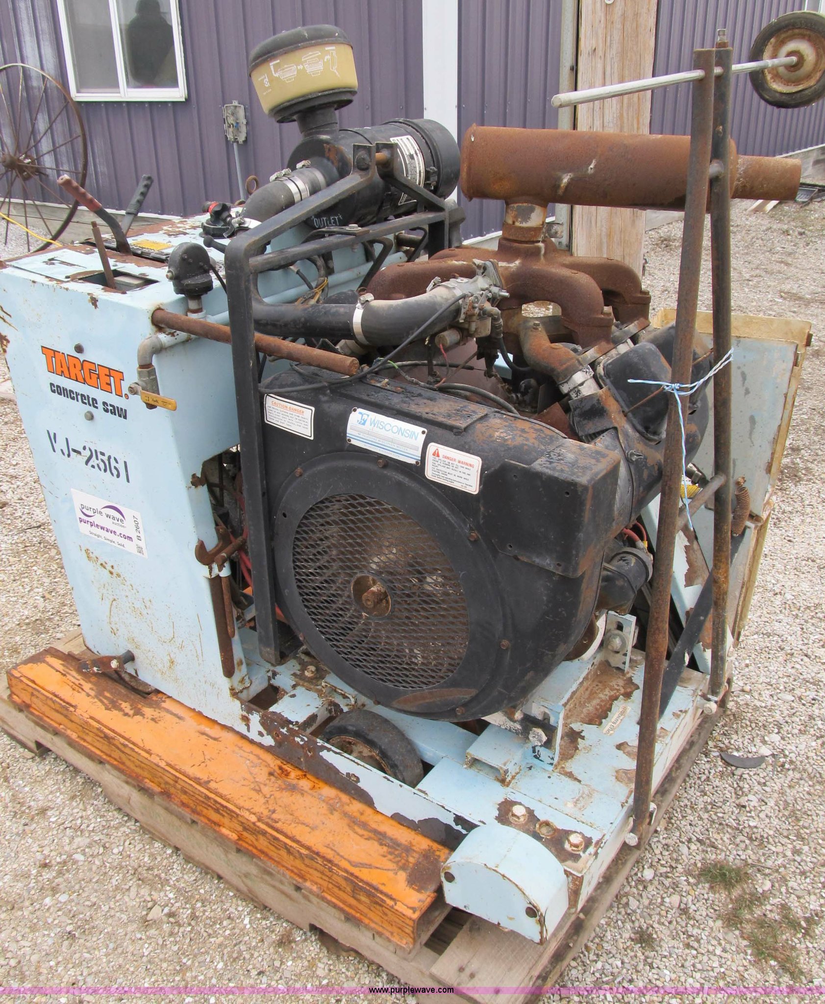Purple Wave is selling a used Tools in Illinois. This item is a Target 6505 concrete saw with the following: 706 hours on meter, Wisconsin V465D four cylinder gas engine, 65 HP, Serial 6233964, New 26 3/4" core cut diamond tip blade, Serial 045455