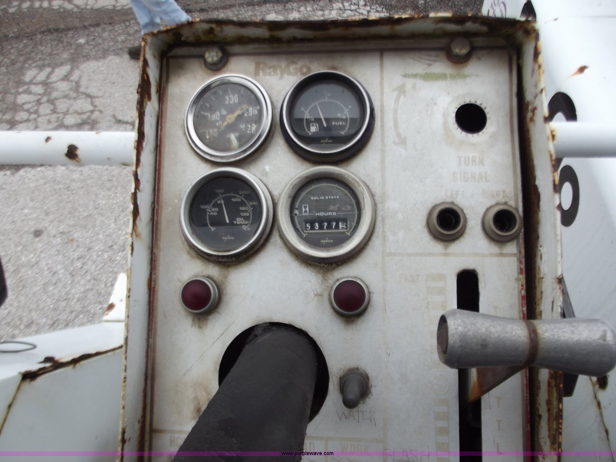 Purple Wave is selling a used Planer or Milling Machine in Missouri. This item is a Raygo 100B ride-on milling machine with the following: 5377 hours on meter, John Deere four cylinder diesel engine, Hydrostatic drive, Four wheel drive, Four wheel steering, ROPS with canopy, 28x10x22 tires, 18"W milling head up to 6" deep, Includes manual, Serial W010930545