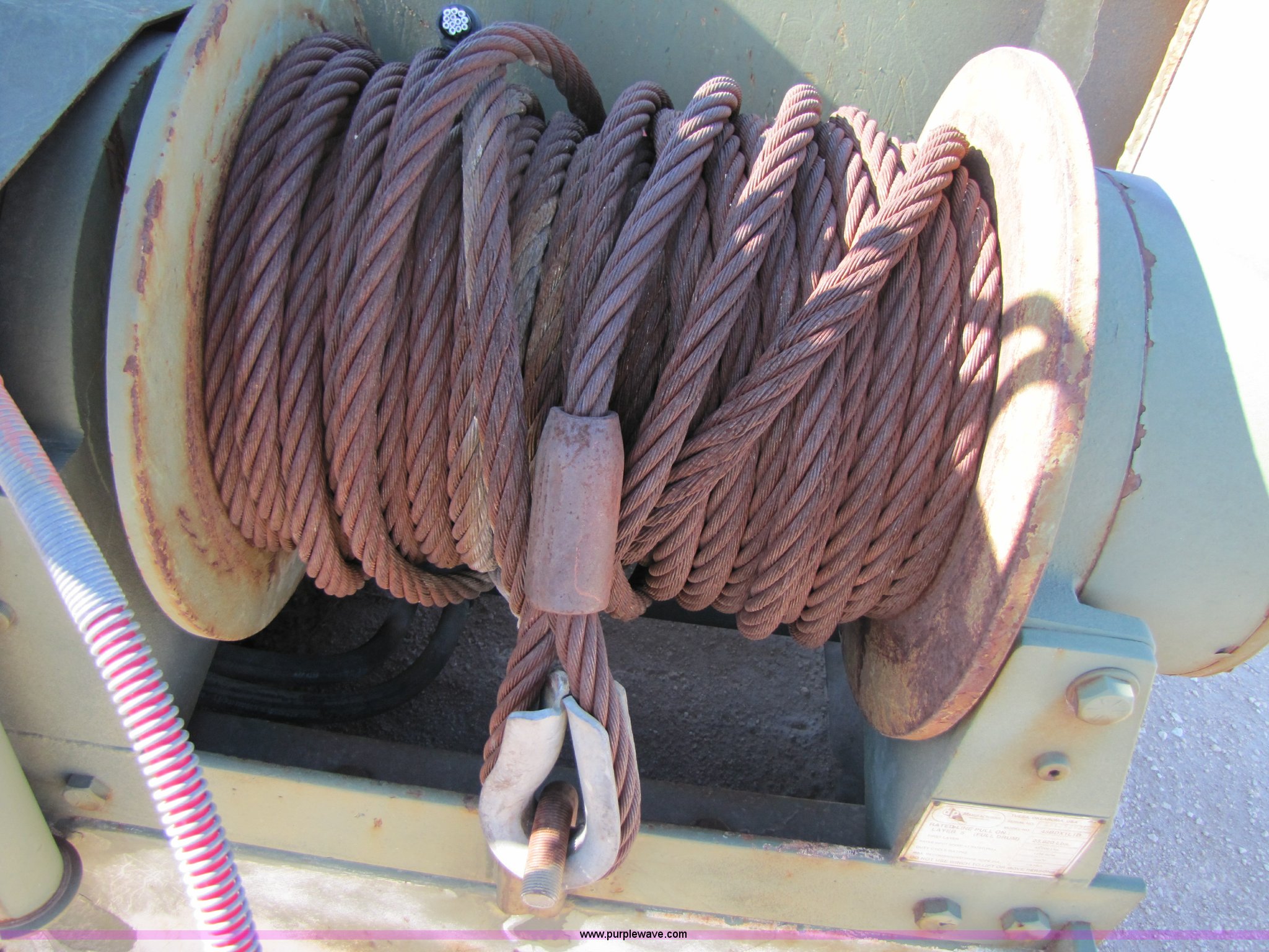 Purple Wave is selling a used Tools in Oklahoma. This item is a DP Manufacturing HD winch with the following: Model 51822, 45,000 lbs capacity, 150' x 7/8" winch line, Made for military trucks, Serial 11247792