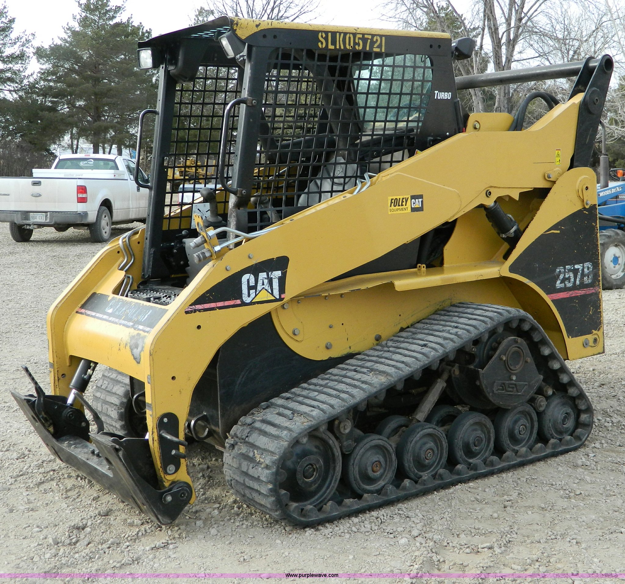 Purple Wave is selling a used Tracked Skid Steer Loader in Kansas. This item is a 2007 Caterpillar 257B skid steer with the following: 2,046 hours on meter, 25 hours on recent service, Caterpillar 3024C diesel engine, 57 HP, Joystick hand controls, Recently replaced seat, 14" rubber tracks, 1,615 lb lift capacity, Flat tip front hydraulics, 7,559 lbs. base operating weight, No bucket included, Serial CAT0257BTSLK05721
