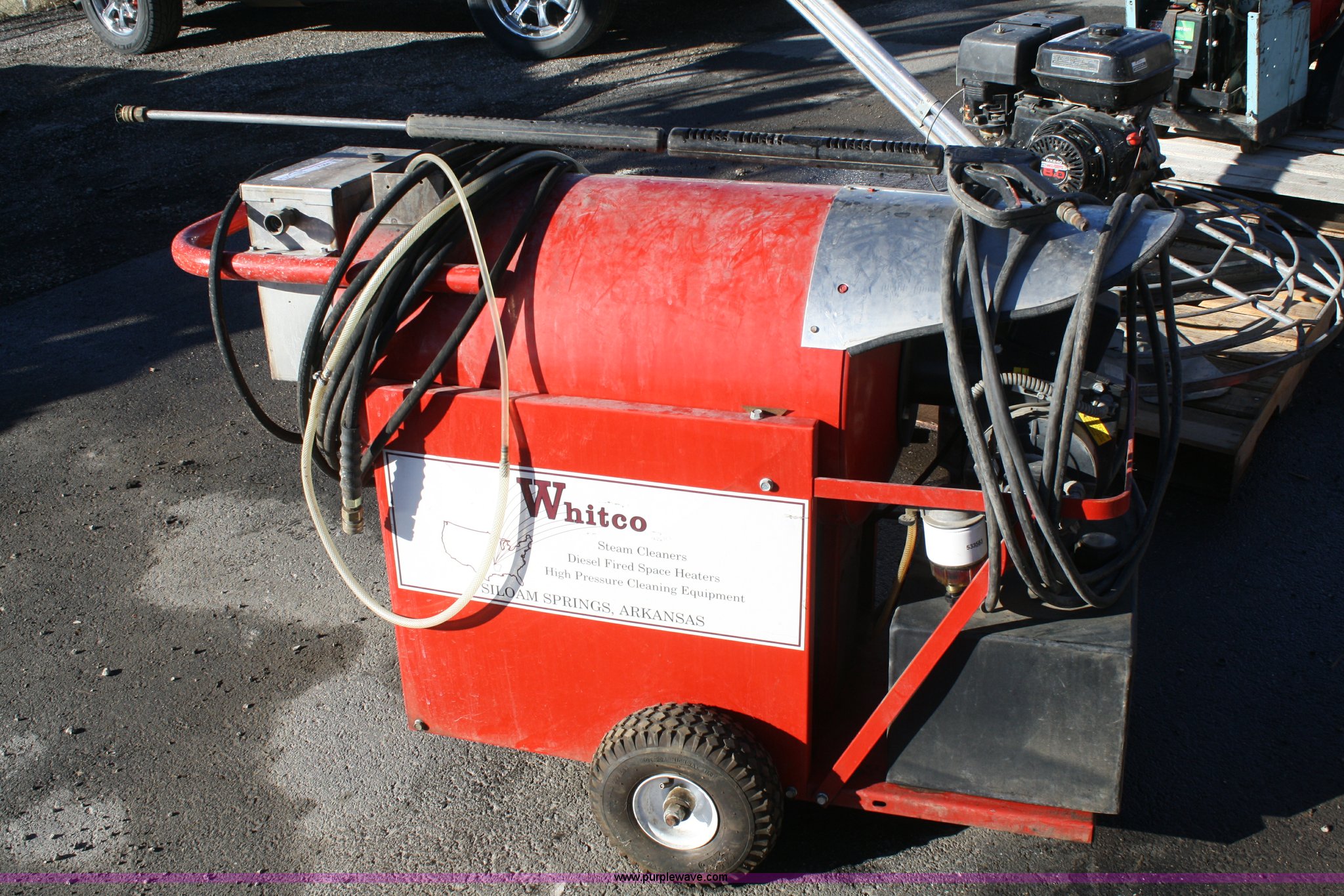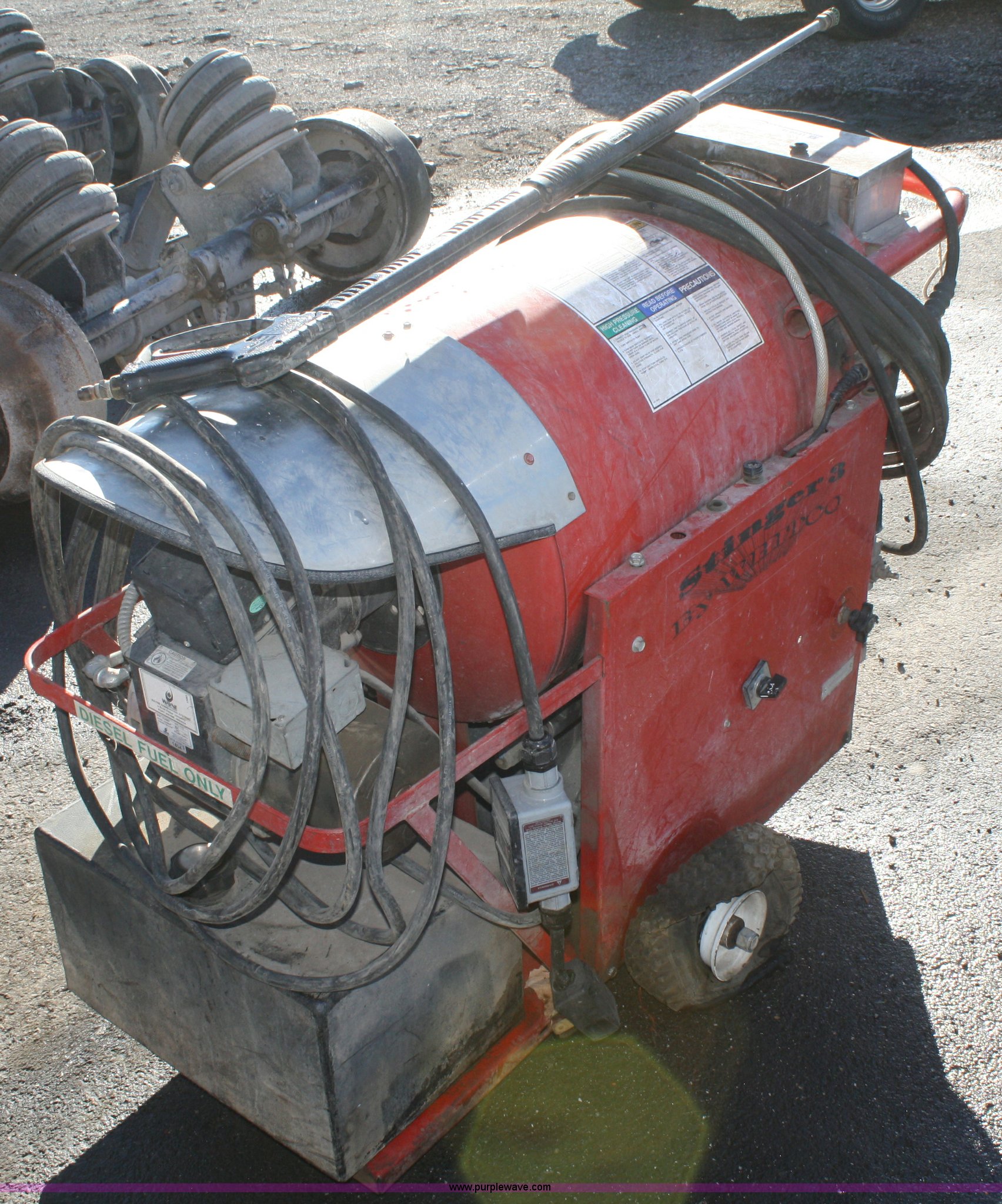 Purple Wave is selling a used Tools in Kansas. This item is a Whiteco Stinger 3 power washer with the following: 220V, Bad tire