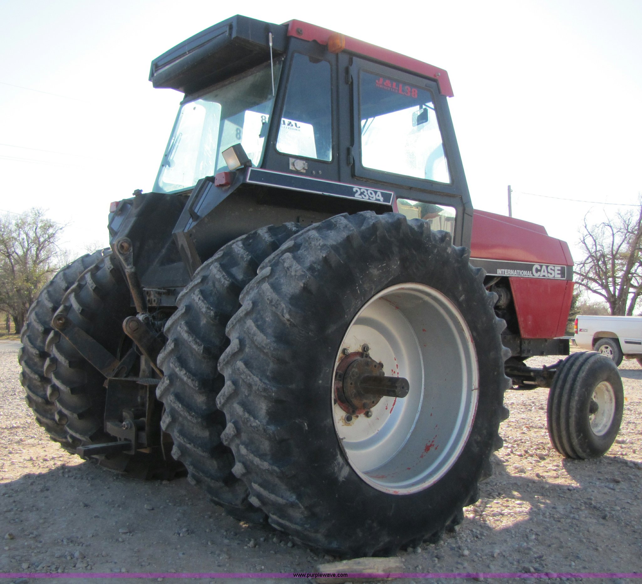 Purple Wave is selling a used Tractor in Oklahoma. This item is a 1984 Case IH 2394 tractor with the following: 7,373 hours on meter, Case 8.3L six cylinder diesel engine, 162 PTO HP, Powershift transmission, 24F-3R gears, AC and heat, Tilt, AM/FM/CD, Three point, Draw bar, 1000 PTO, (2) rear hydraulic remote sets, 85 gallon fuel tank, 11.00-16 front tires, 18.4-38 rear duals, Rear wheel weights, New inside rear tires, Fluid lead on right side of tractor where tractor splits, Serial 9934936