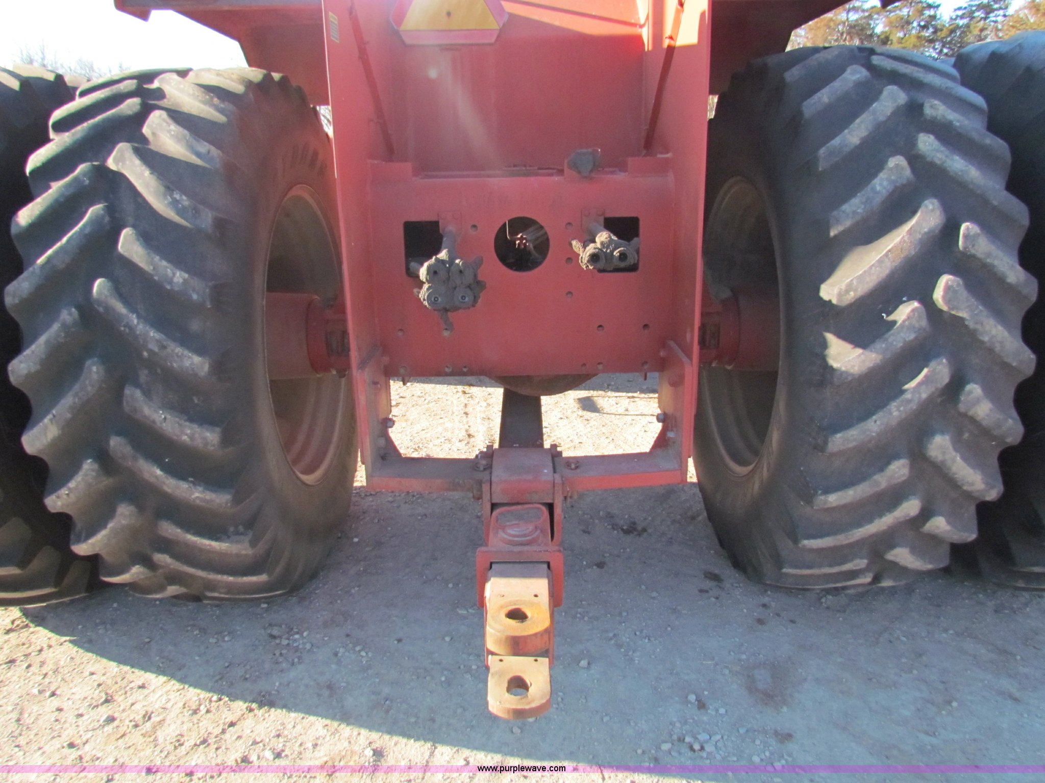 Purple Wave is selling a used Articulated 4-Wheel Drive Tractor in Kansas. This item is a 1989 Case IH 9150 4WD tractor with the following: 5,731 hours on meter, Cummins L10 diesel engine, 280 HP, 230 draw bar HP, 246 PTO HP, 12 speed Powershift transmission, AC, AM/FM, Suspension seat, Foot pedal throttle control, (3) hydraulic remote sets, One new rear tire, 20.8R38 tires, 130" wheelbase, 23,000 lbs. base operating weight, Left side dual is flat, Exhaust manifold gasket leaks, Brakes need repair, Serial JCB0003402