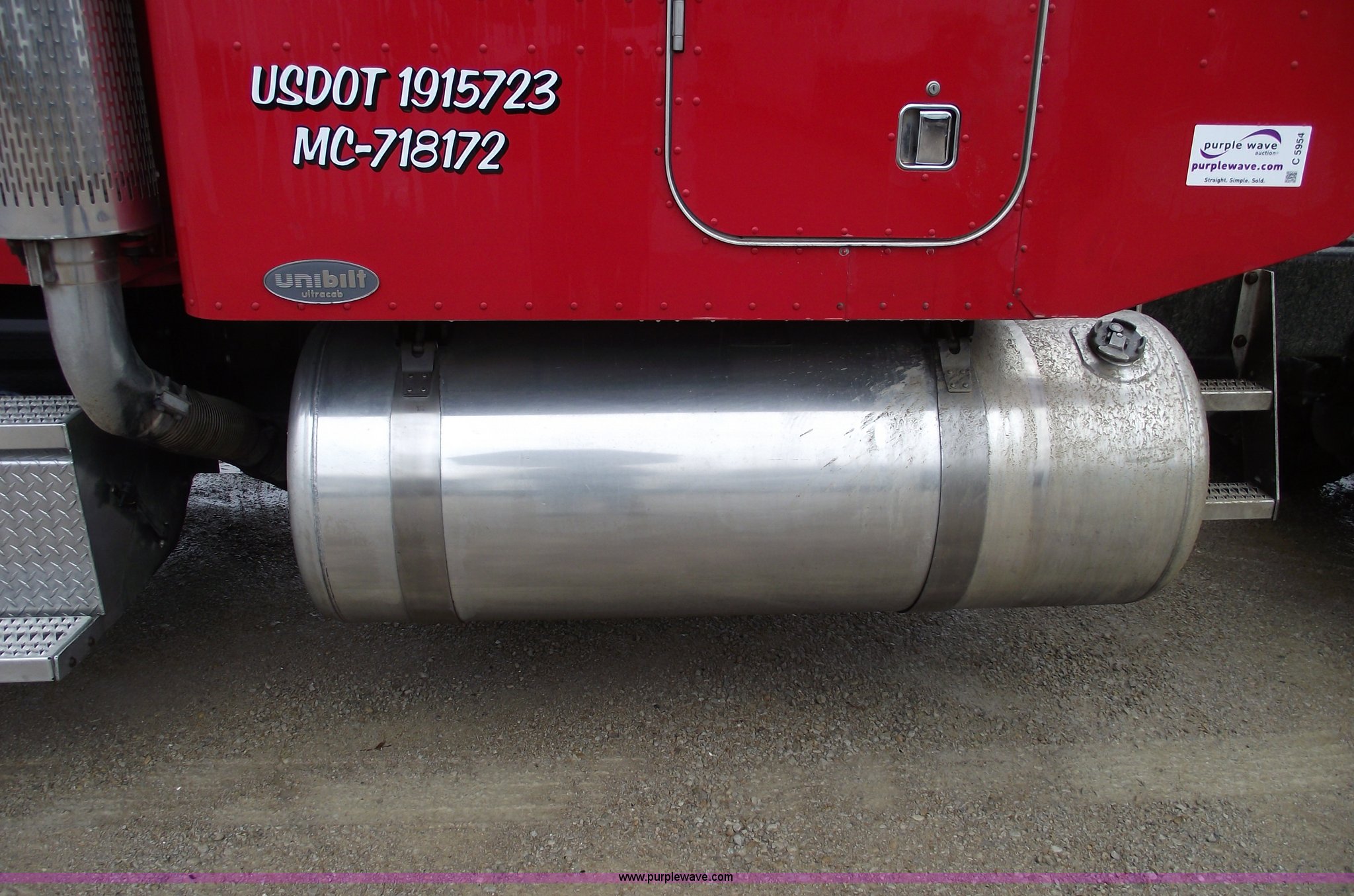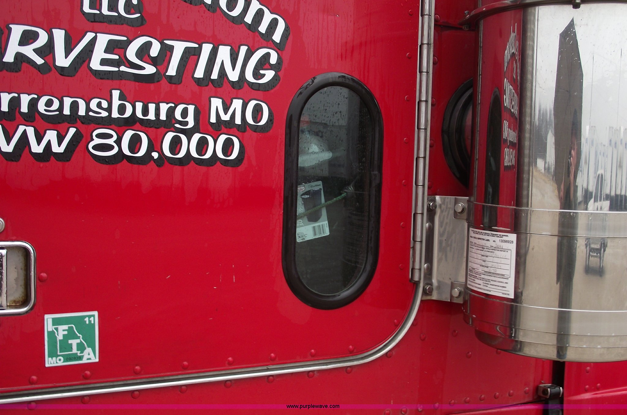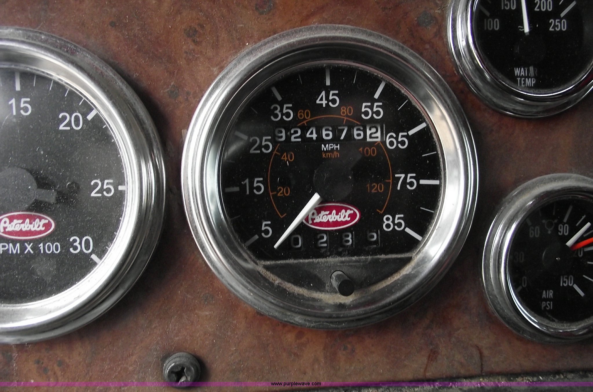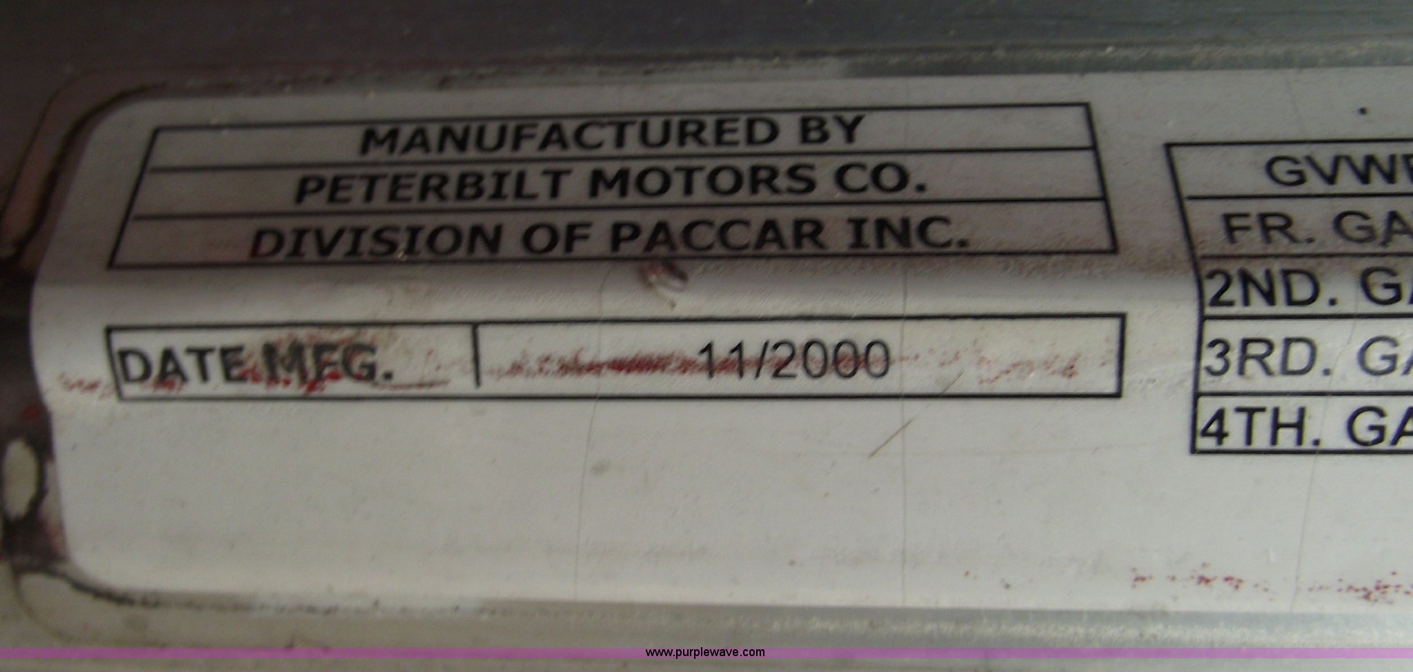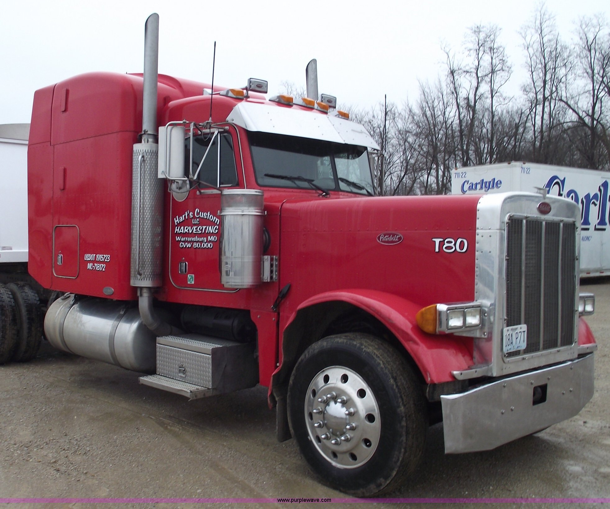 Purple Wave is selling a used Truck Tractor in Missouri. This item is a 2001 Peterbilt 379 semi truck with the following: 924,676 miles on odometer, Mileage will vary, Detroit Series 60 12.7L diesel engine, Eaton Fuller 13 speed manual transmission, Twin screw, AC and heat, Tilt, Cruise, AM/FM/Cassette, Passenger daylight door, Air ride seats, Power passenger window and mirror, Heated mirrors, Air ride cab, Unibilt Ultracab sleeper, Storage area, Exterior visor, Chrome bumper, Block heater, Cab extender, Dual 150 gallon fuel tanks, Dual exhaust stacks, Air suspension, Air brakes, Jake brake, Aluminum front wheels, 285/75-24.5 tires, GVWR 48,000 lbs, FAWR 12,000 lbs, IAWR 18,000 lbs, RAWR 18,000 lbs, 258" wheelbase, Unit# T80
