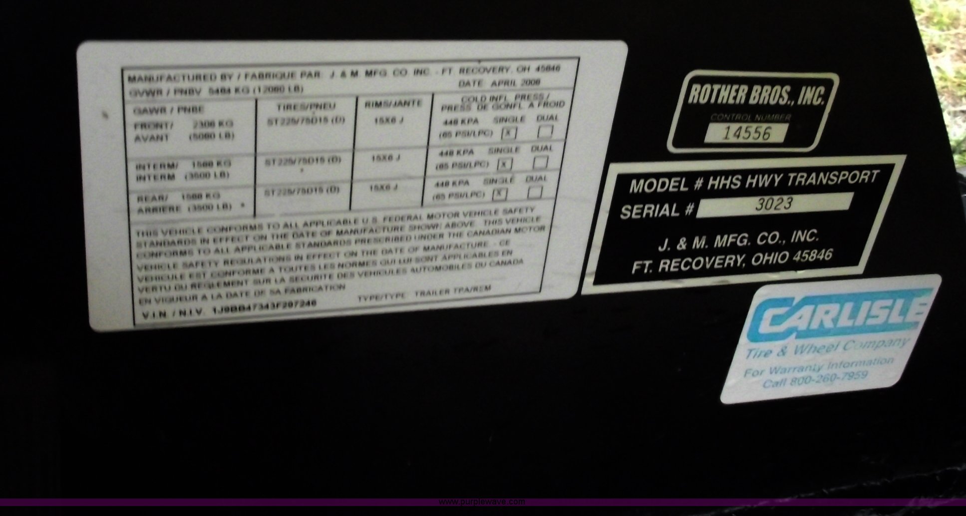 Purple Wave is selling a used Ag Equip. or Header Trailer in Missouri. This item is a 2010 J&M Trail Blazer header trailer with the following: Adjustable length tongue, Electric brakes with safety break-away system, Ratchet straps, Adjustable overall length, 2 5/16" ball, GVWR 12,080 lbs, DOT ready, Serial 2023