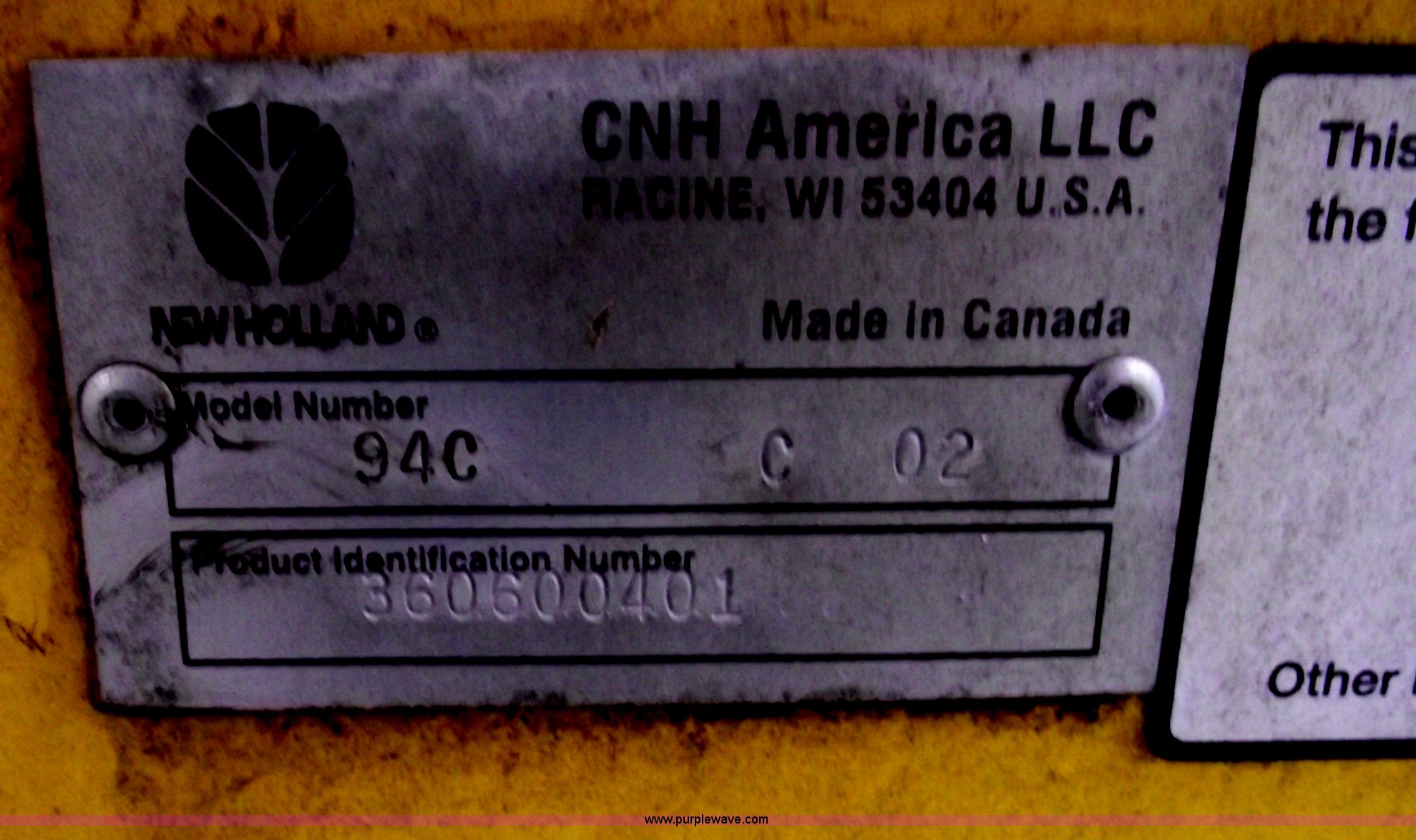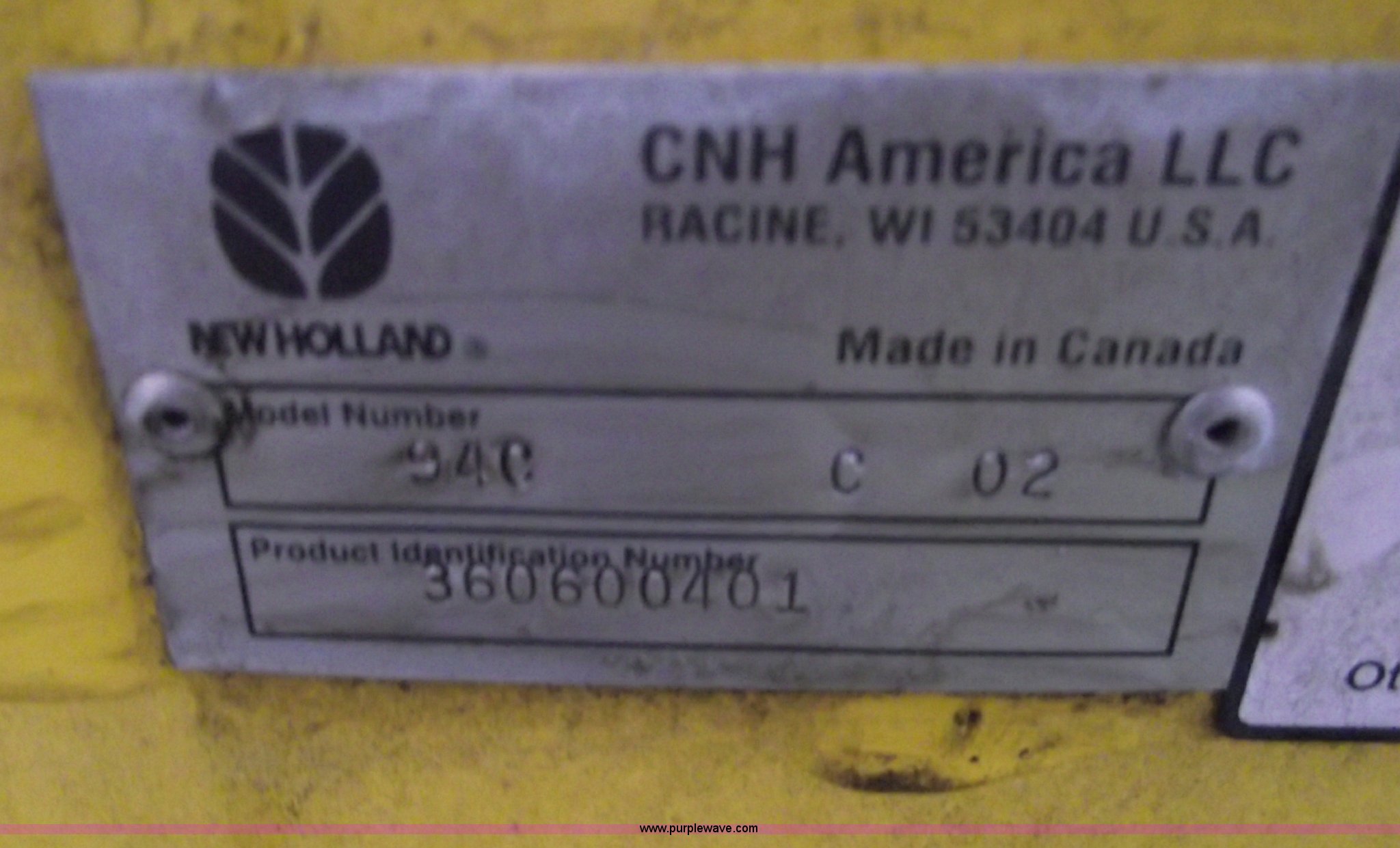 2002 New Holland 94C 36' draper head. Double knife drive, Fore and aft reel, Variable speed hydraulic reel, Has built-in transporter, Slide out tongue, 225-75-15 tires, Fits CR series combine, Serial 3606000401. Shipping quotes available. 33 NE 360. Warrensburg, MO 64093
