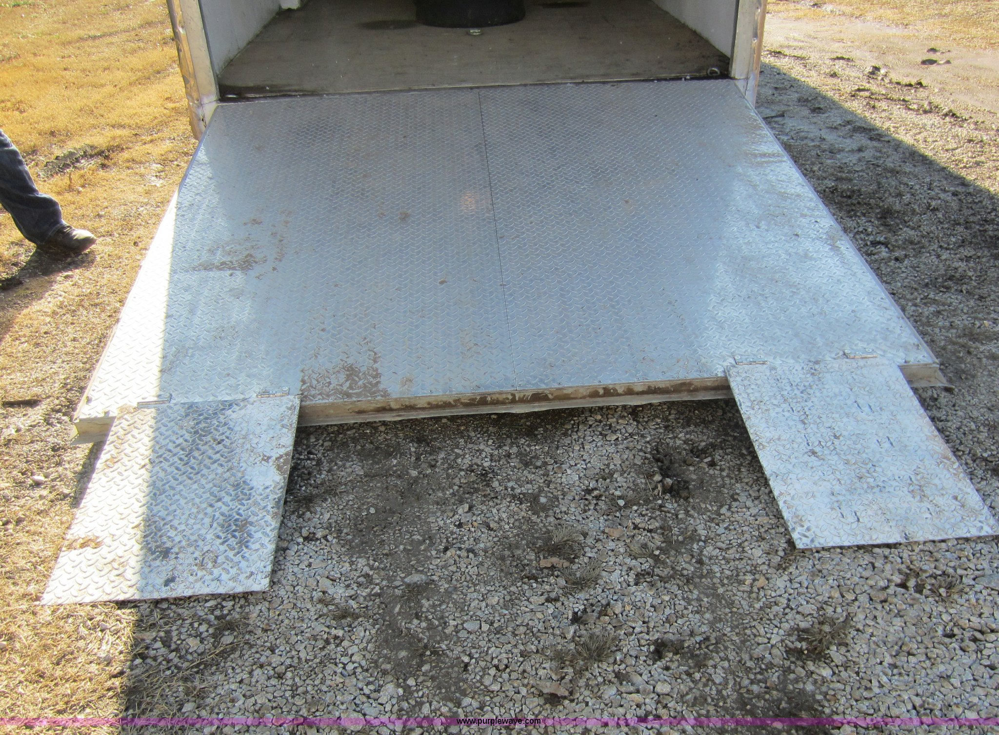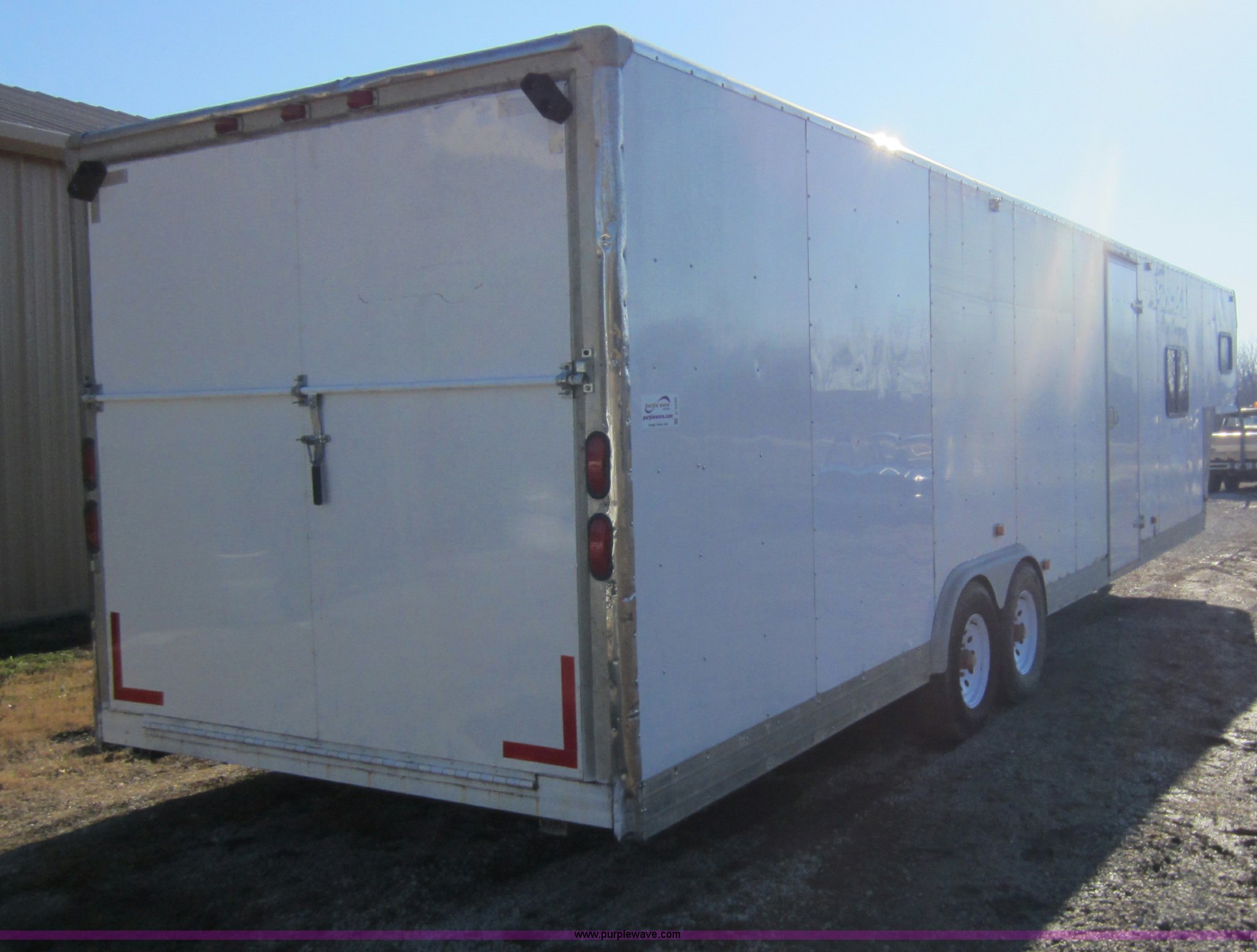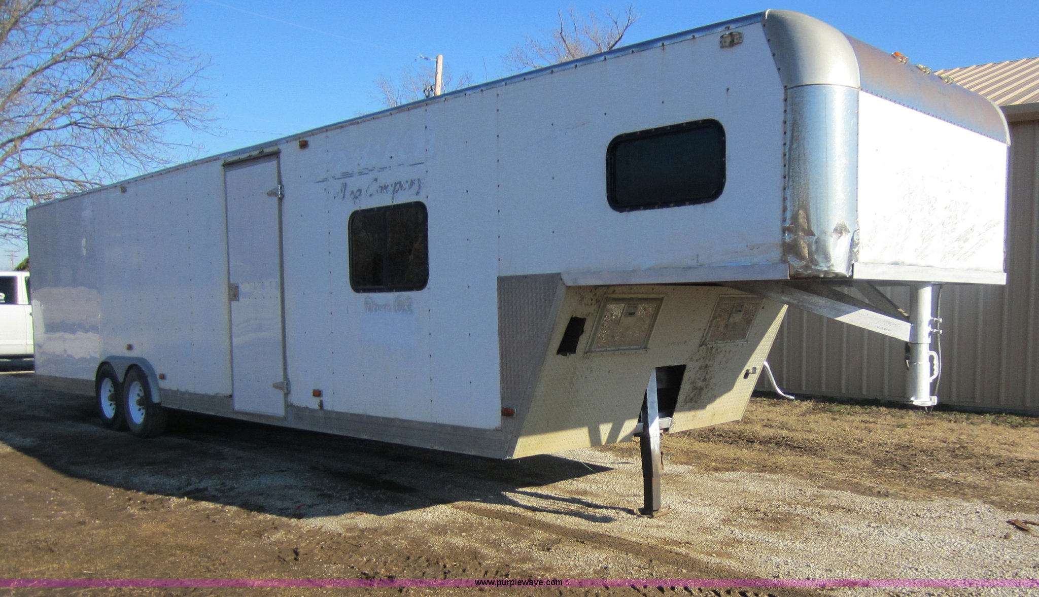 Purple Wave is selling a used Enclosed Cargo Trailer in Kansas. This item is a 1999 38' enclosed race trailer with the following: 102" wide, 15' living quarters, 22' cargo area, Side door entry, Rear folding ramp, Wood floor, AC and wiring, LT215/85R16 tires, Contents not included