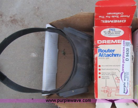 Purple Wave is selling a used Tools in Missouri. This item is a Assorted industrial tools with the following: Box of V-belt sheaves, Dremel router attachment, Cutting tools