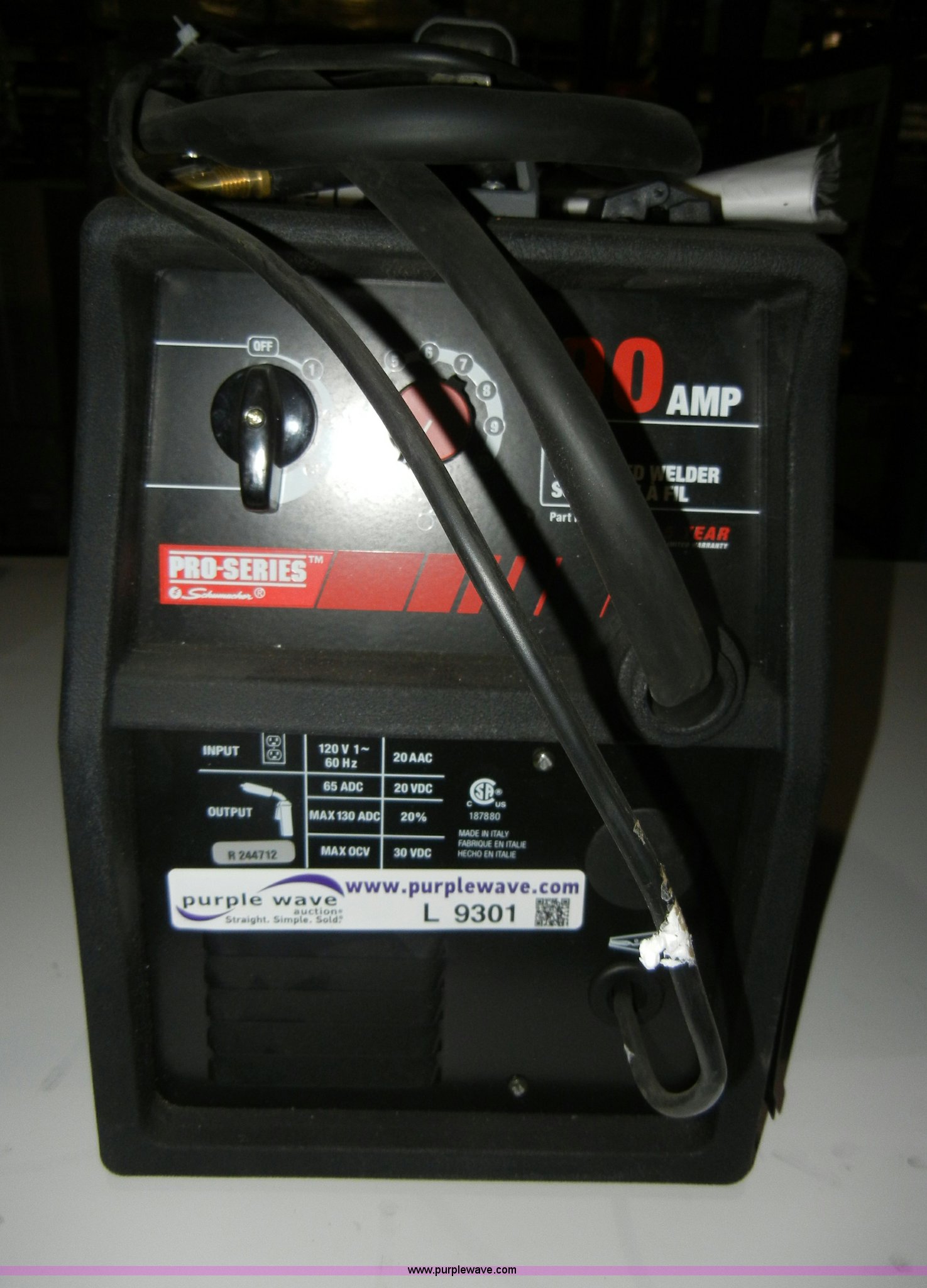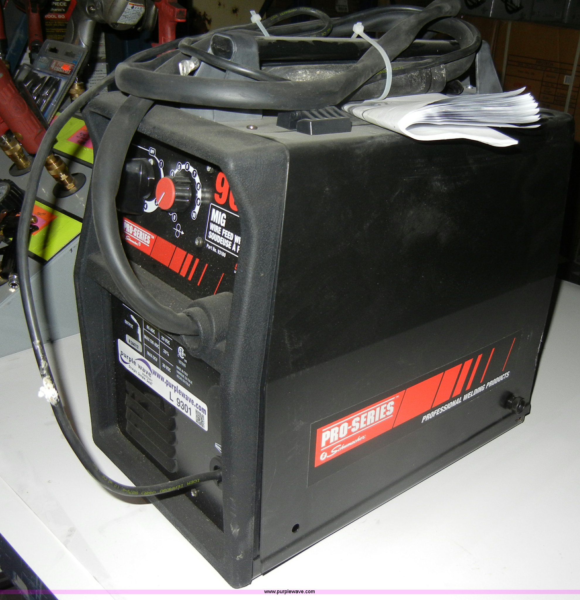 Purple Wave is selling a used Welder (Manual) in Kansas. This item is a Schumacher Pro mig welder with the following: 90 amp, Guide and cable, Model 93100
