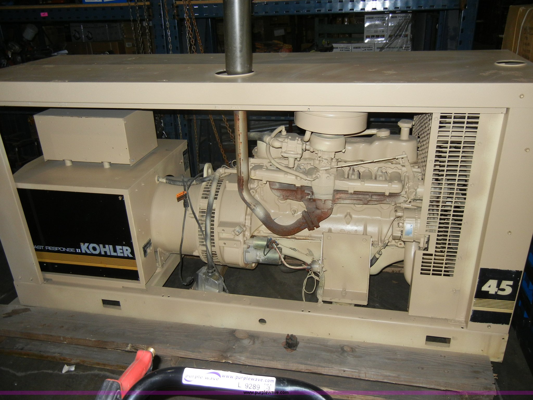 Take a look at this used Kohler 45RZ62 Fast Response II generator being sold on April 4th, 2012 in the SOLD! April 4 Midwest Auction made by Kohler. Take a look at all of the item information below or take a look at similar auctions for Generators and Light Plants.