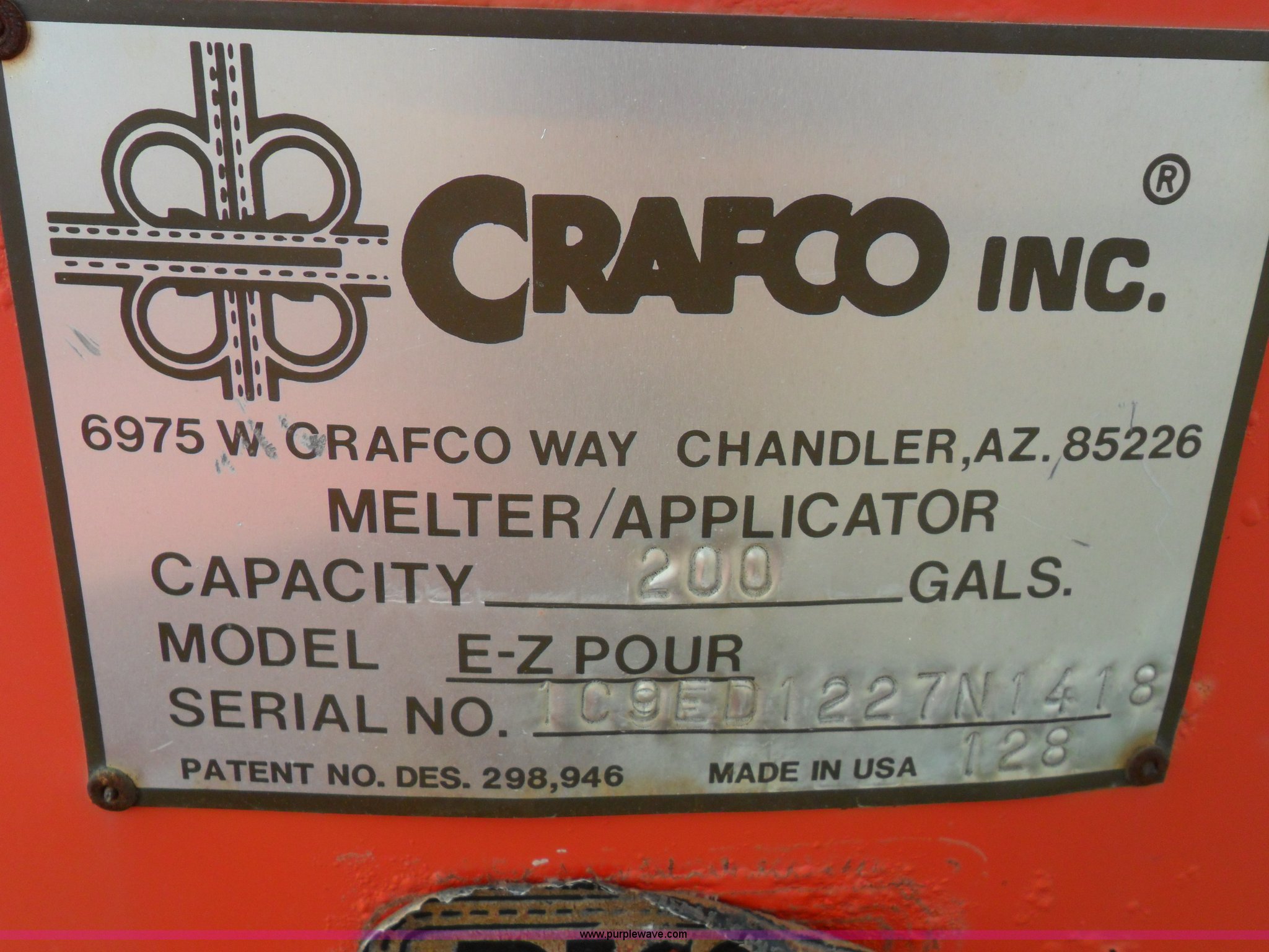 Crafco EZ Pour melter applicator has sold in Sterling, Kansas for $4070. Item A1968 sold on March 6th, 2012.