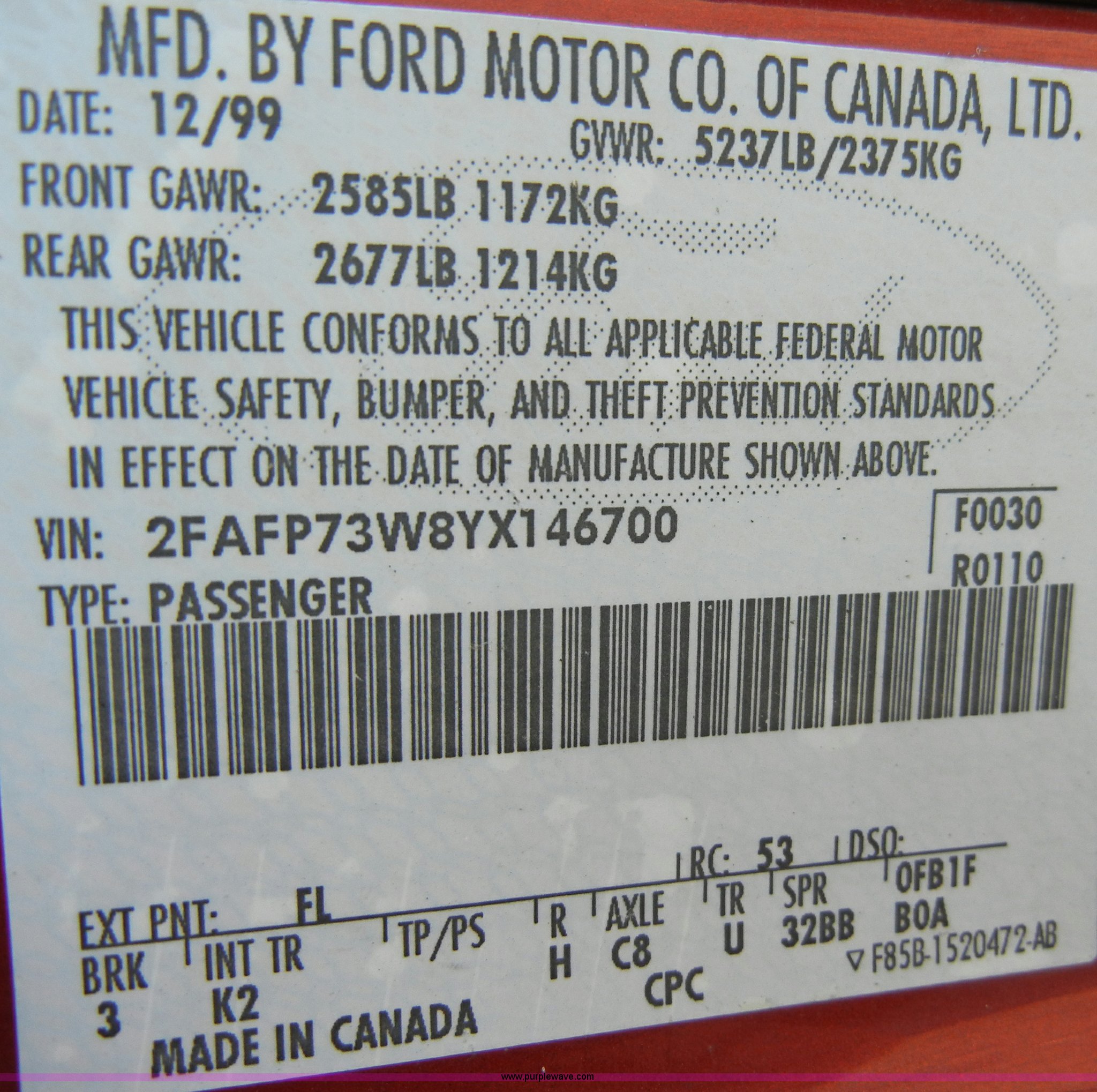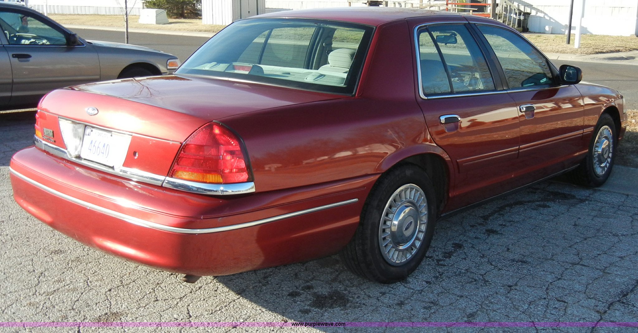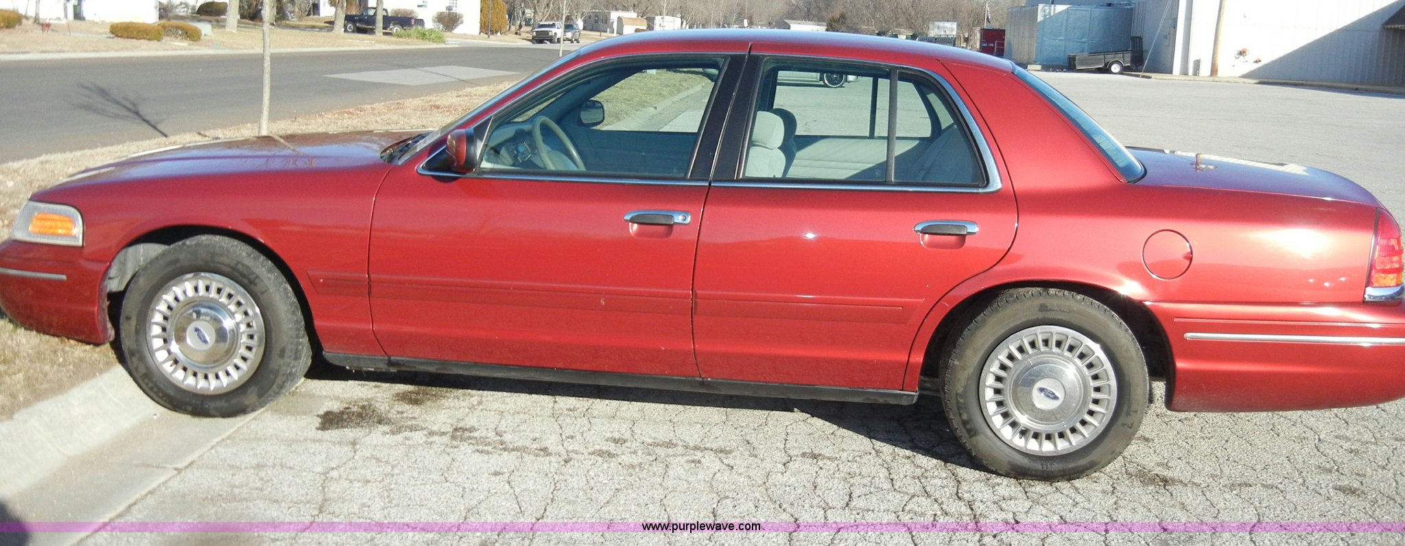 Purple Wave is selling a used Passenger Vehicle in Kansas. This item is a 2000 Ford Crown Victoria Police Interceptor with the following: 95,604 miles on odometer, 4.6L V8 EFI engine, Automatic transmission, AC and heat, Tilt, Cruise, AM/FM, Power windows, locks, mirrors, and seats, Cloth seats, 225/60R16 tires, Interior/exterior cosmetic damage, Scratches