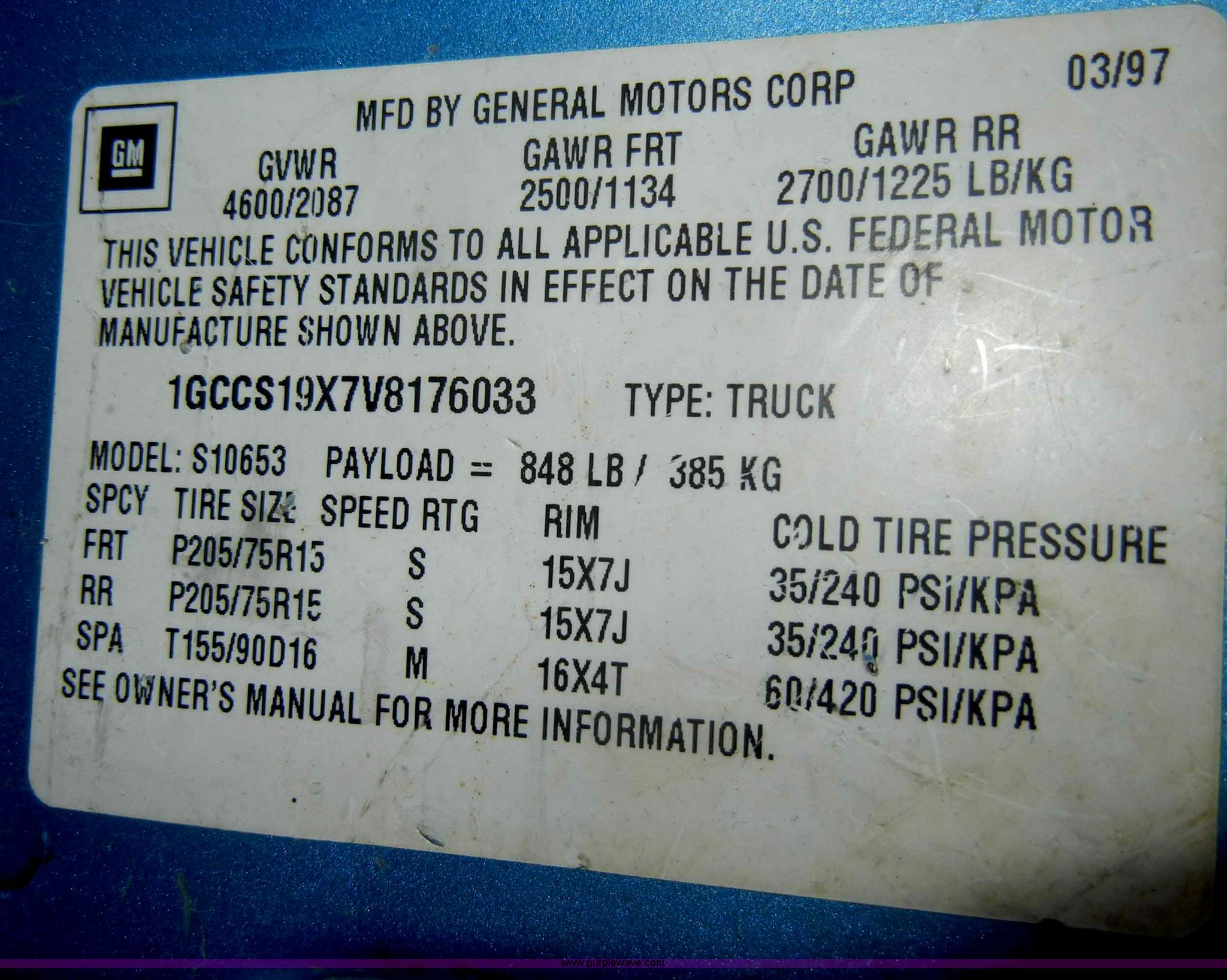 Take a look at this used 1997 Chevrolet S10 LS extended cab pickup truck being sold on March 6th, 2012 in the SOLD! March 6 Government Auction made by Chevrolet. Take a look at all of the item information below or take a look at similar auctions for Passenger Vehicles.